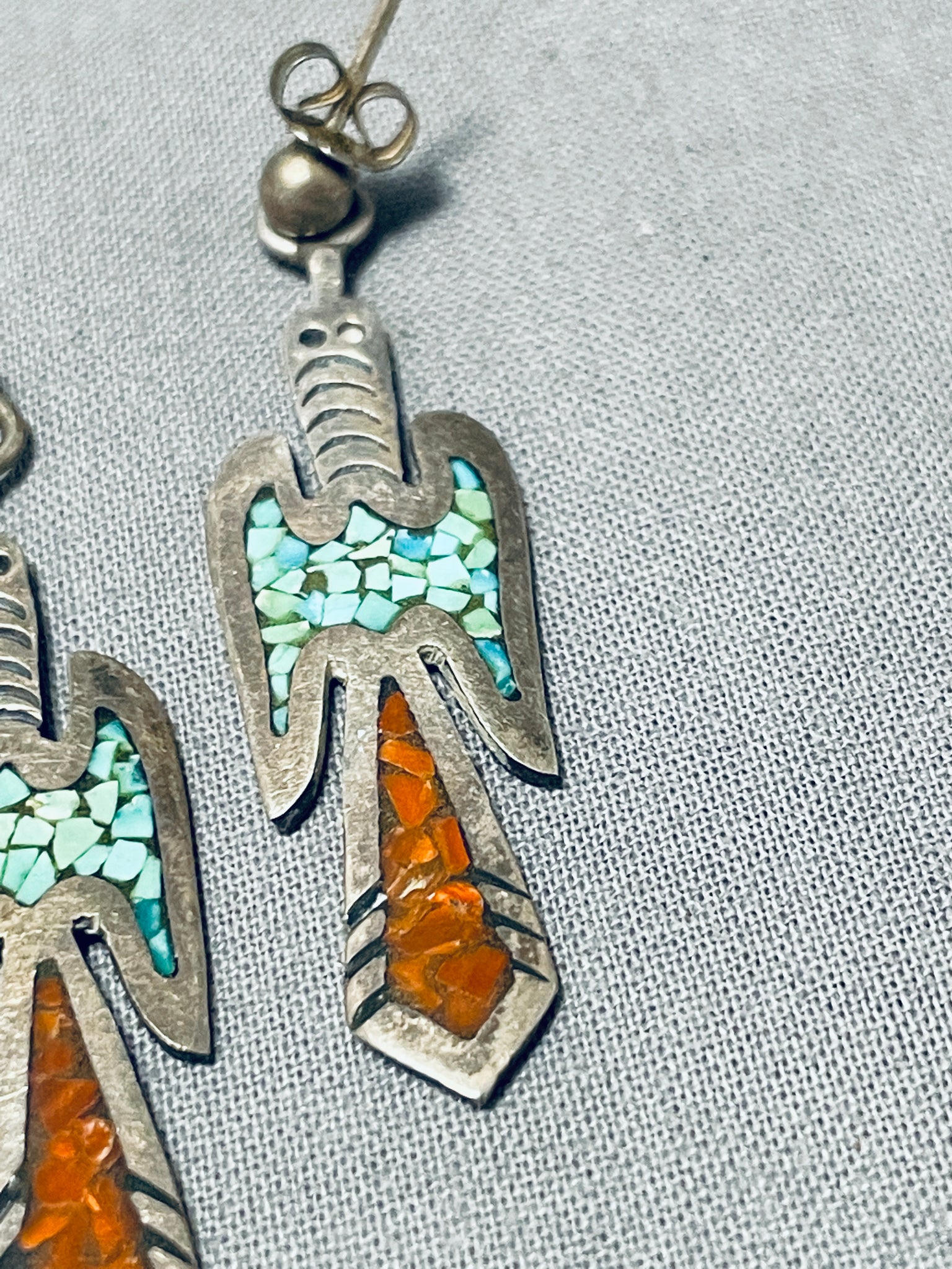 Authentic Thomas Singer Vintage Native American Navajo Turquoise Sterling Silver Earrings