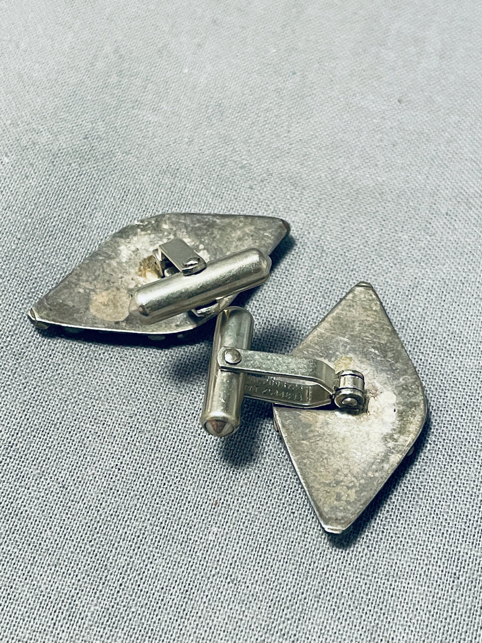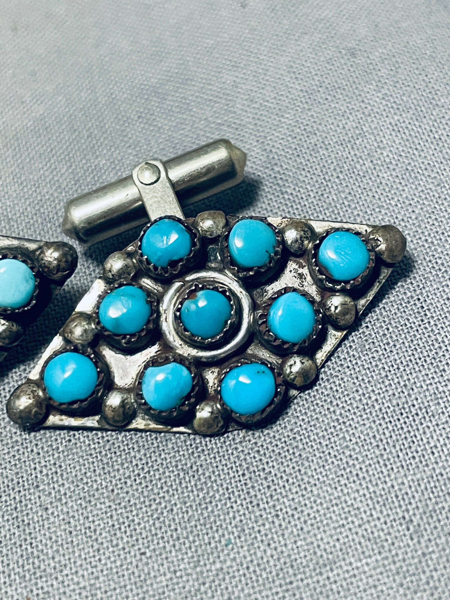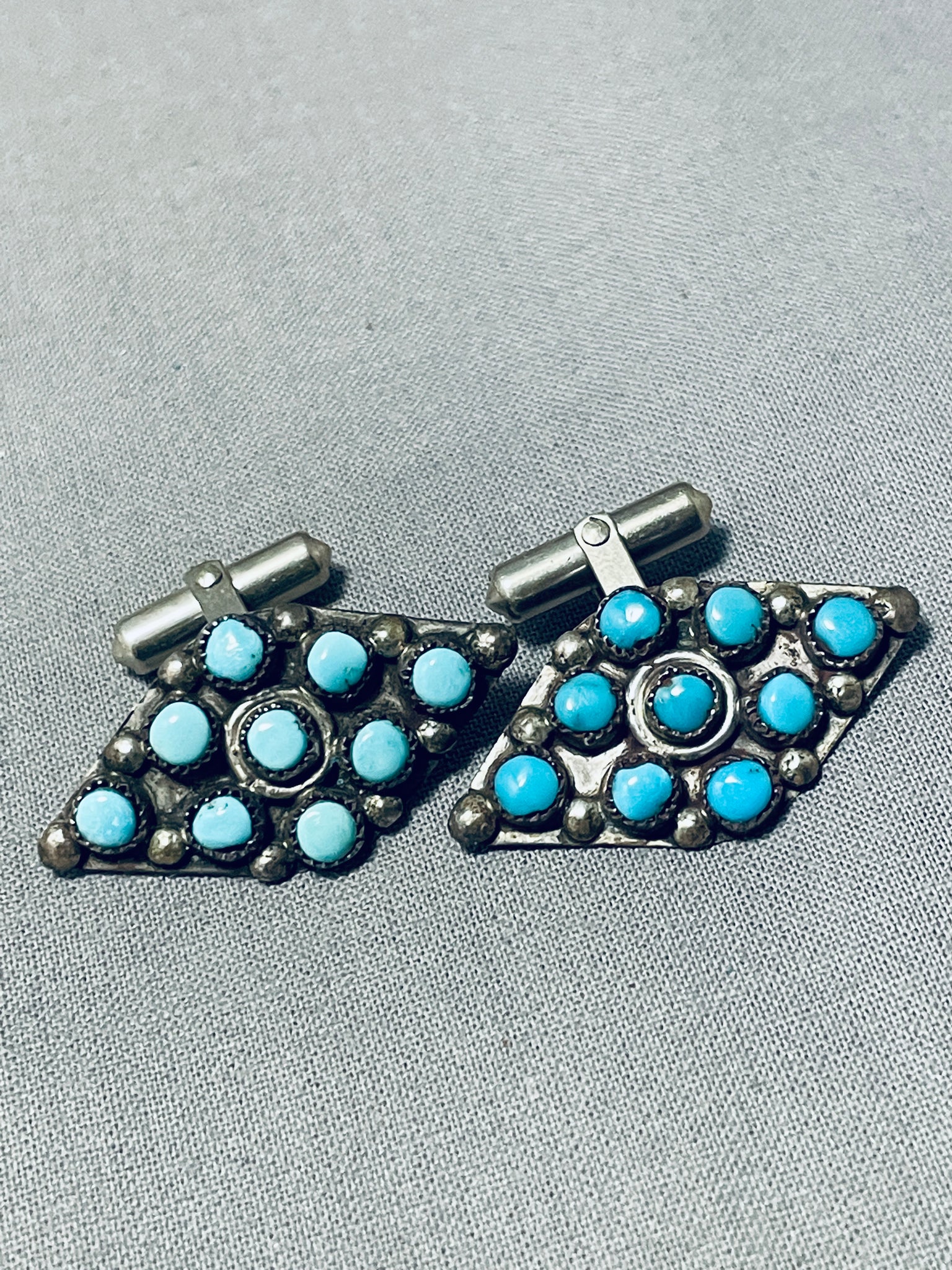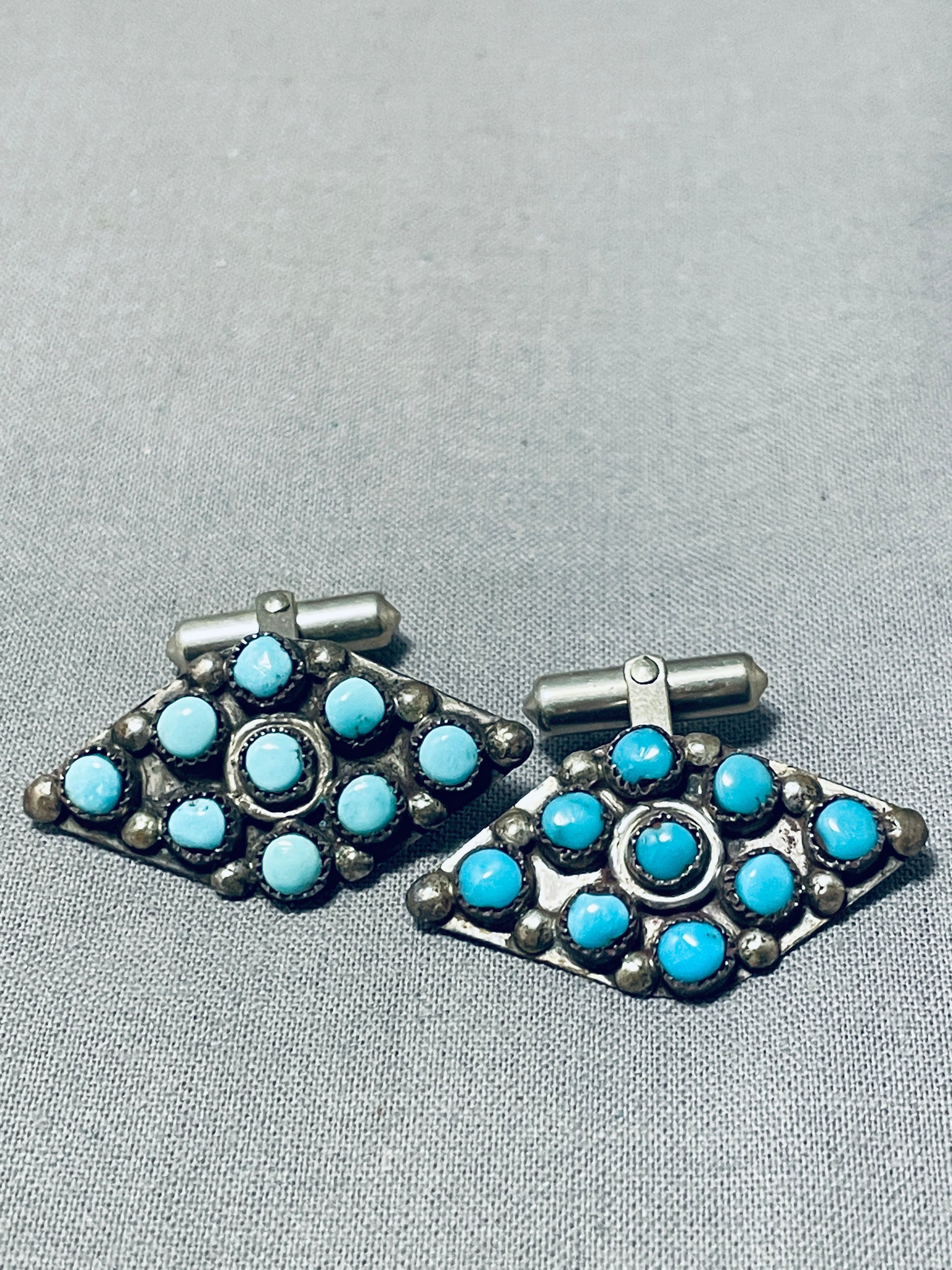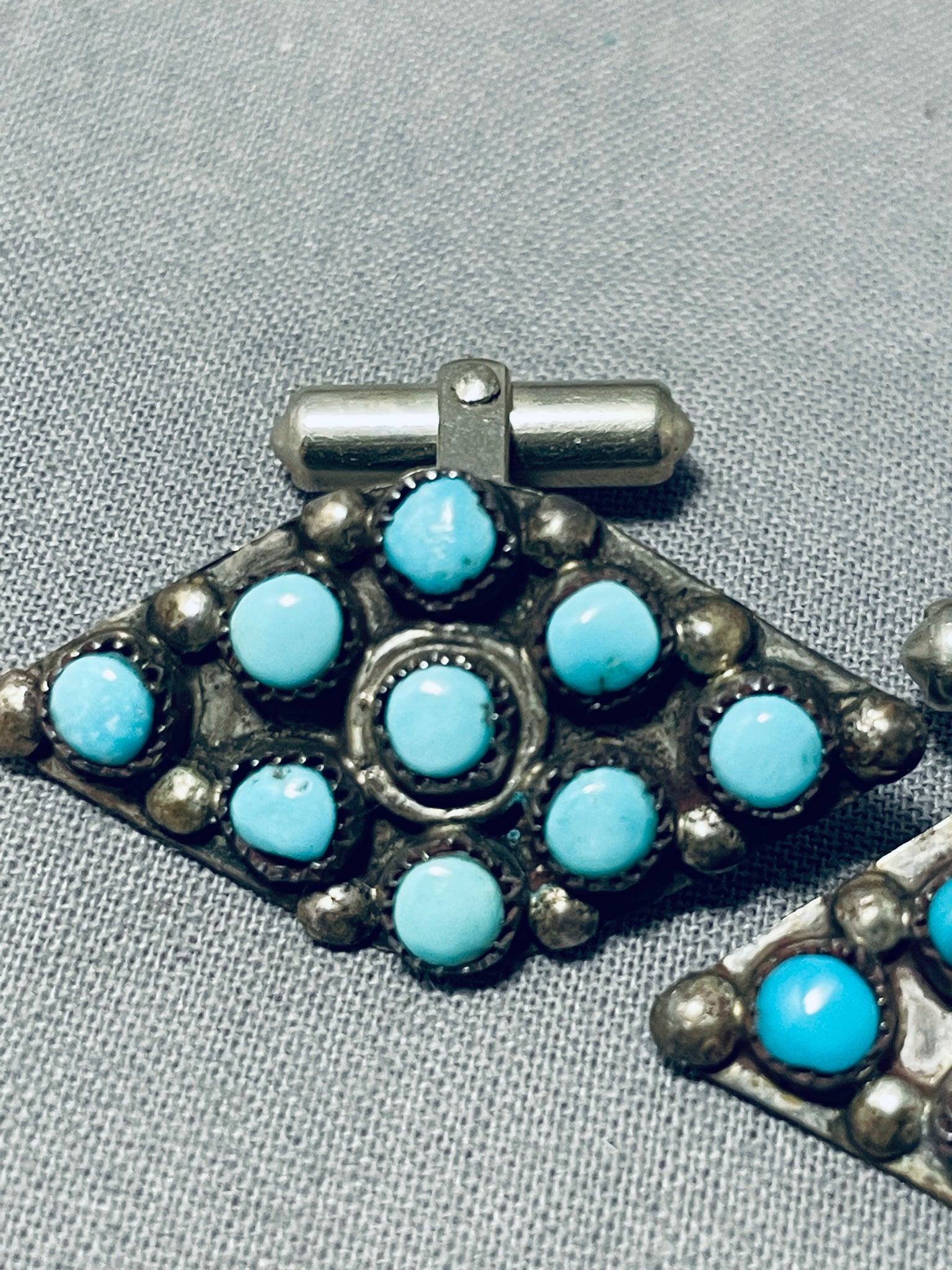 Authentic Very Rare Vintage Native American Zuni Turquoise Sterling Silver Cufflinks
