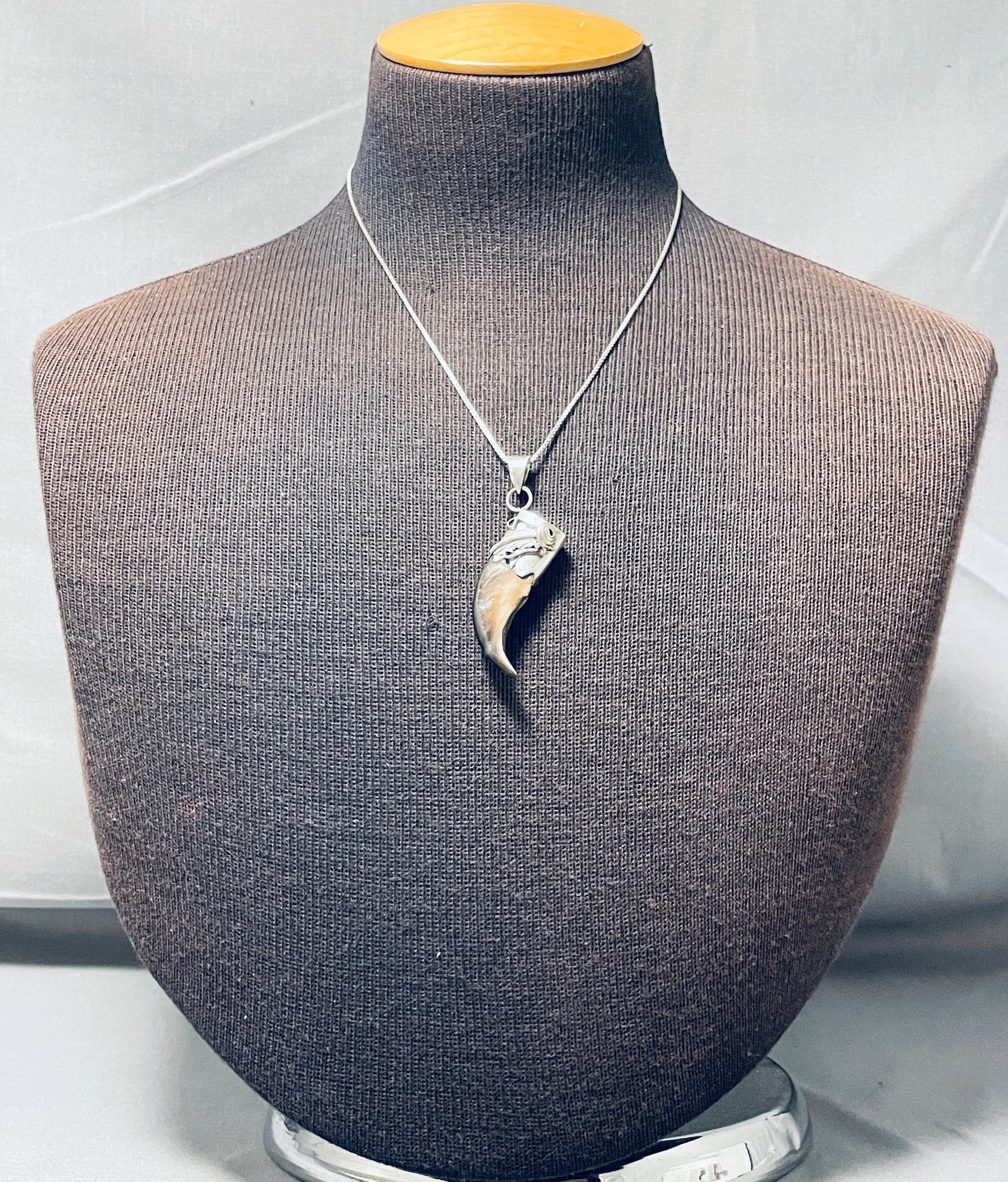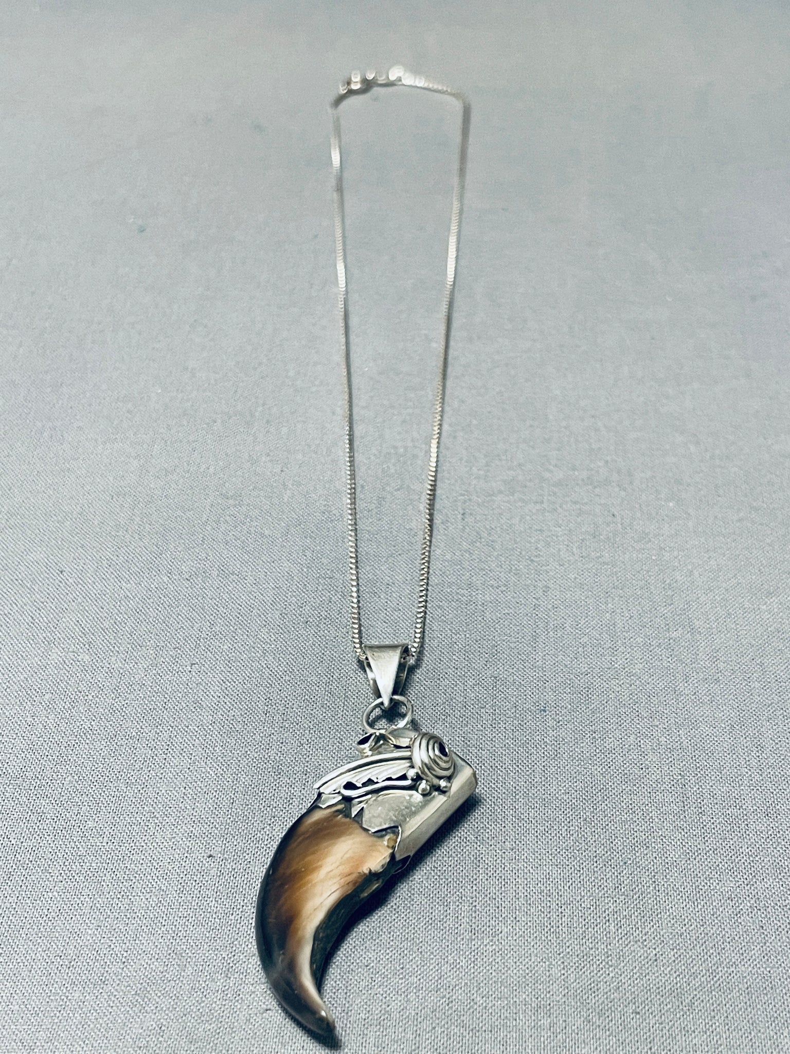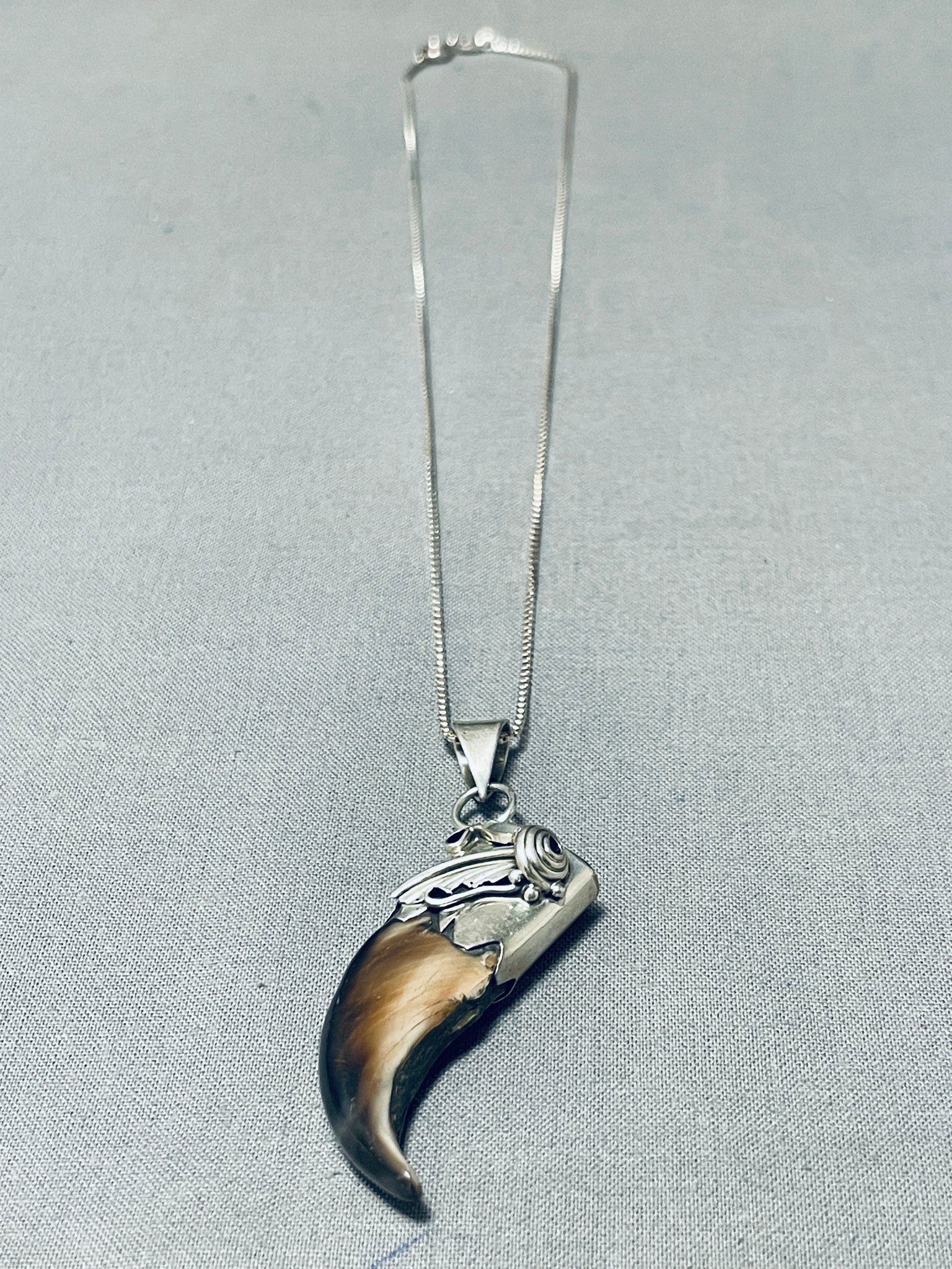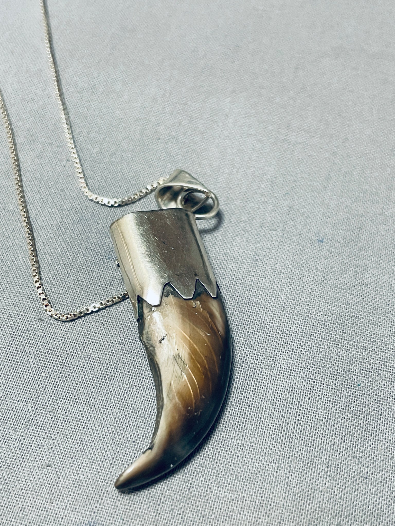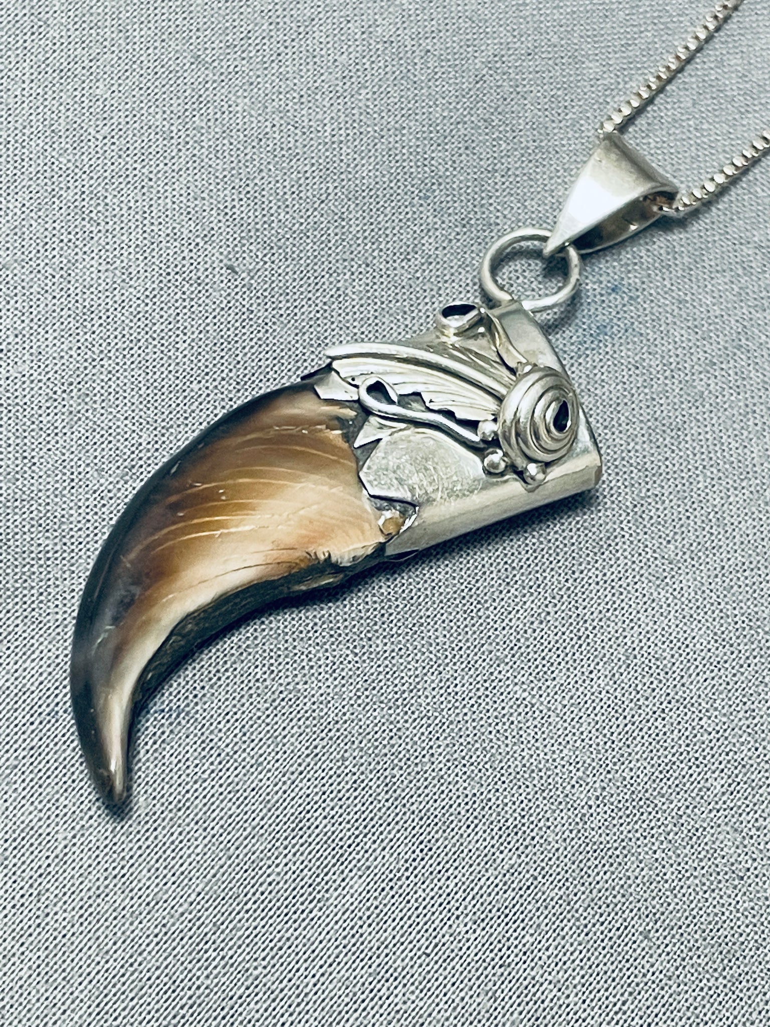 Authentic Vintage Native American Navajo Bear Sterling Silver Necklace