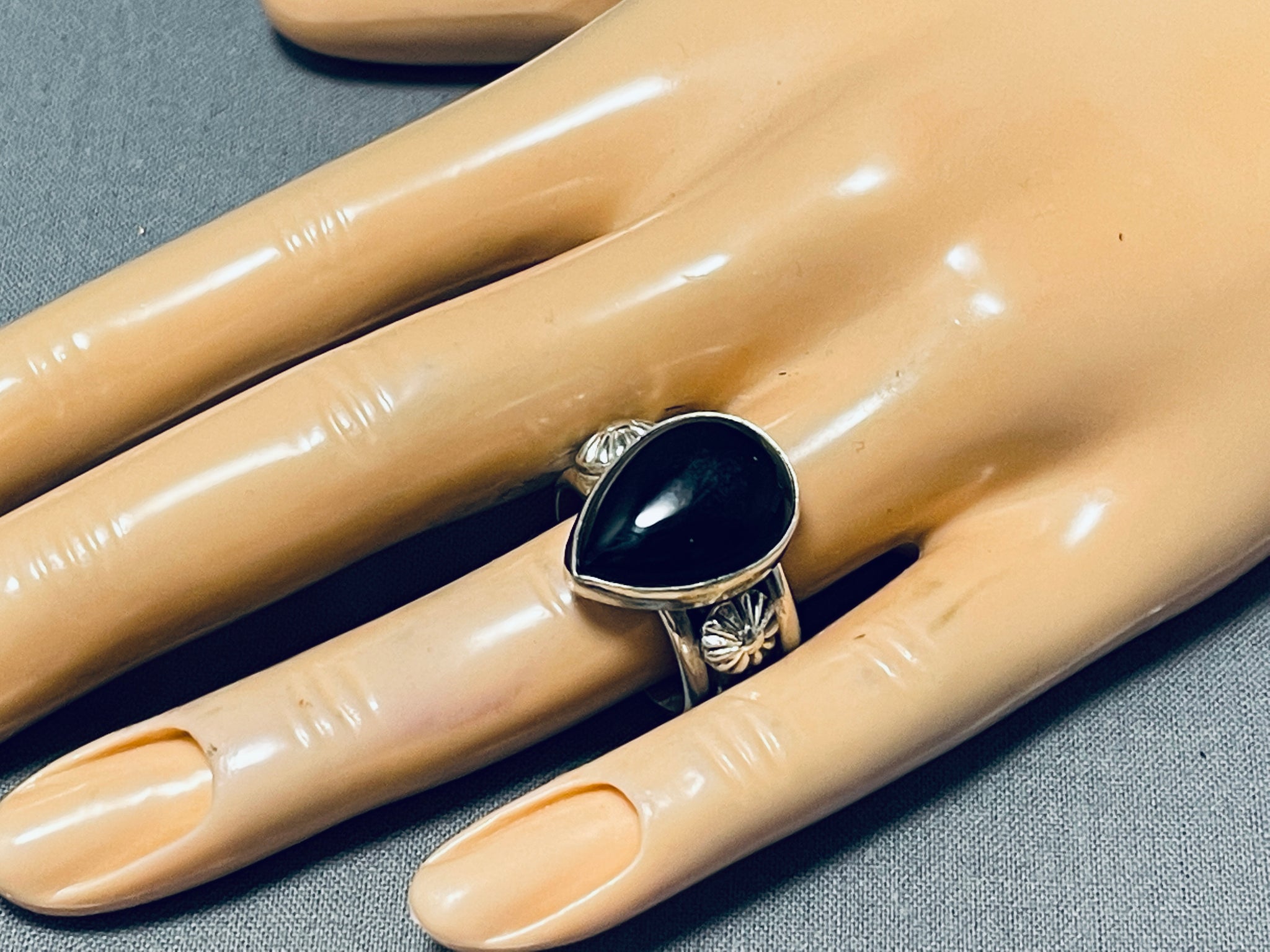 Authentic Vintage Native American Navajo Ben Begaye (d) Black Stone Sterling Silver Ring