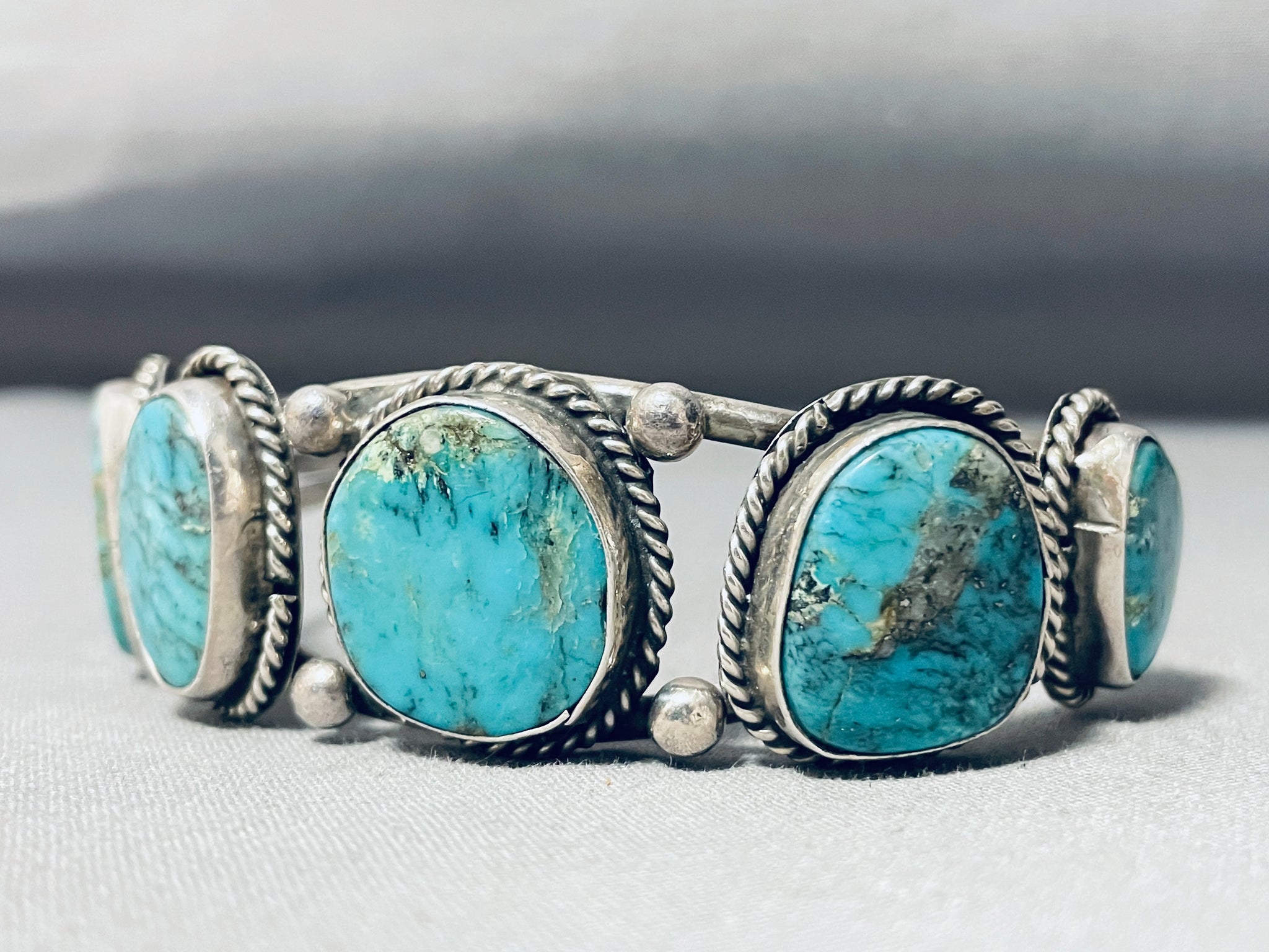 Authentic Vintage Native American Navajo Blue Turquoise Sterling Silver Bracelet Cuff
