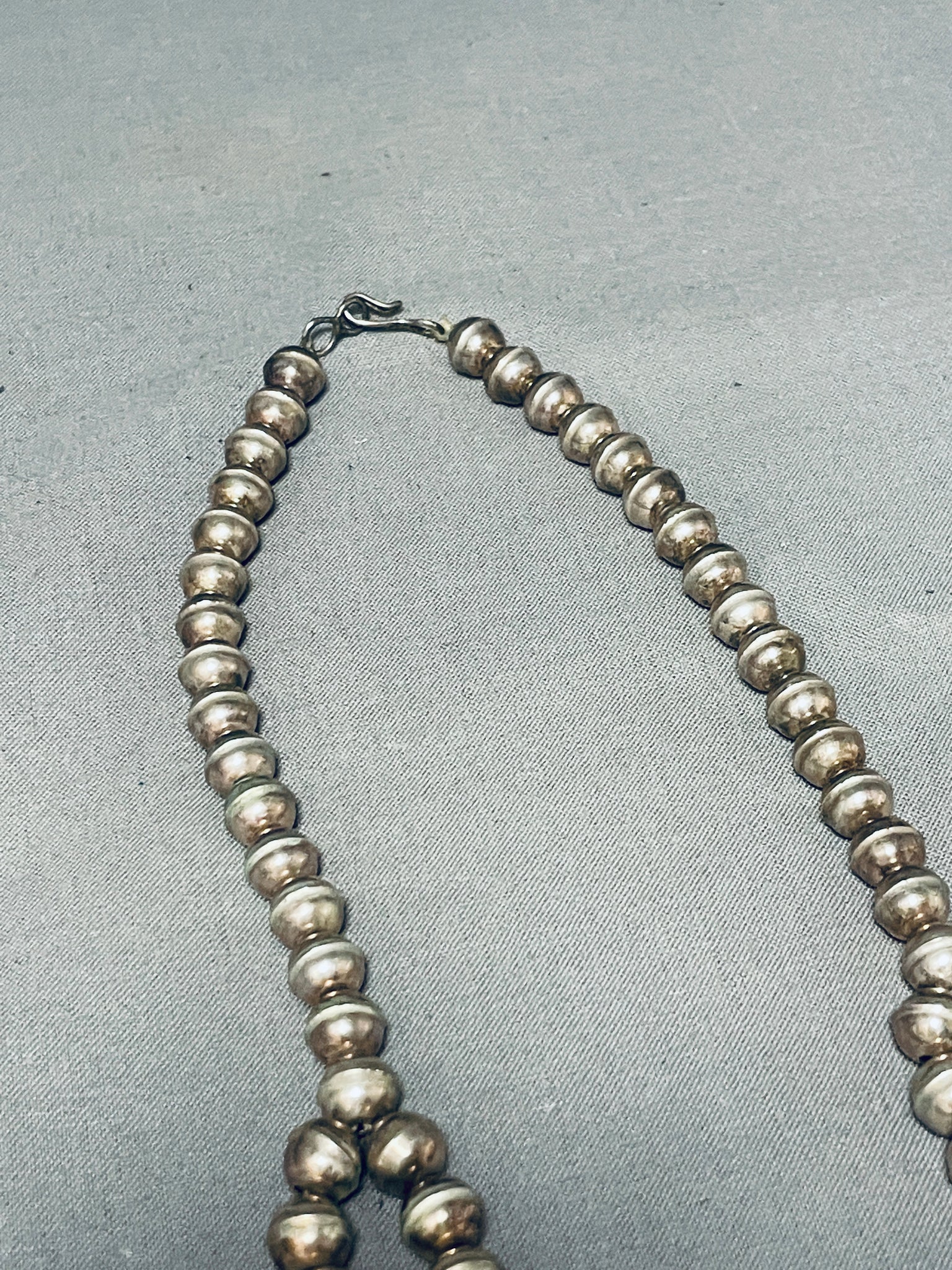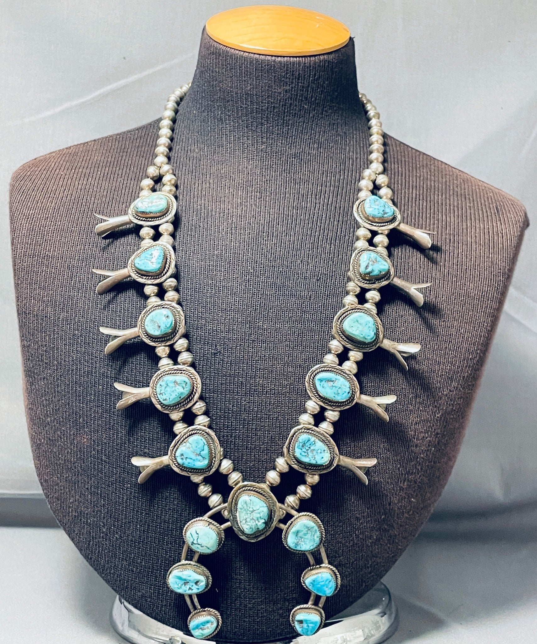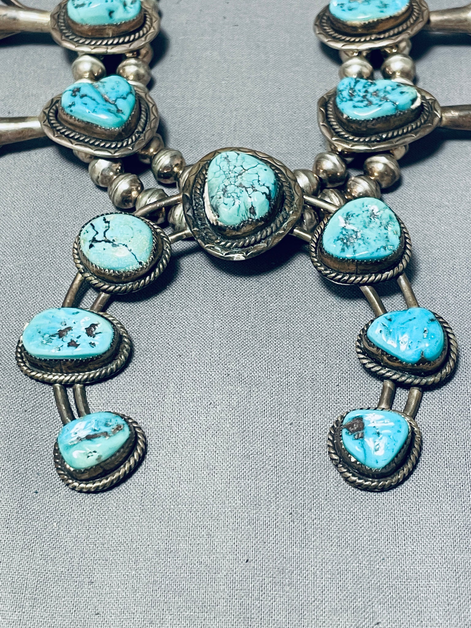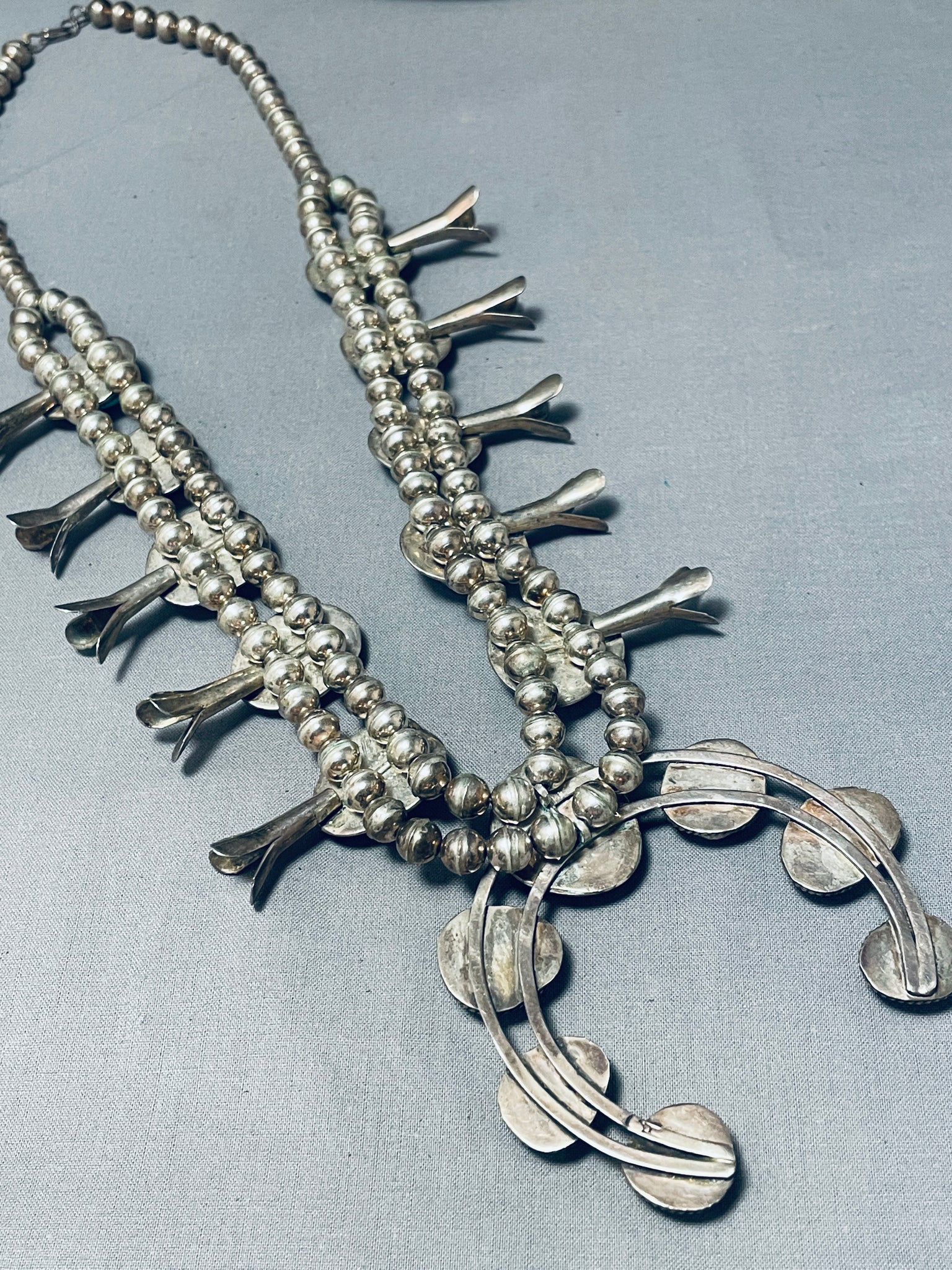 Authentic Vintage Native American Navajo Blue Turquoise Sterling Silver Squash Blossom Necklace