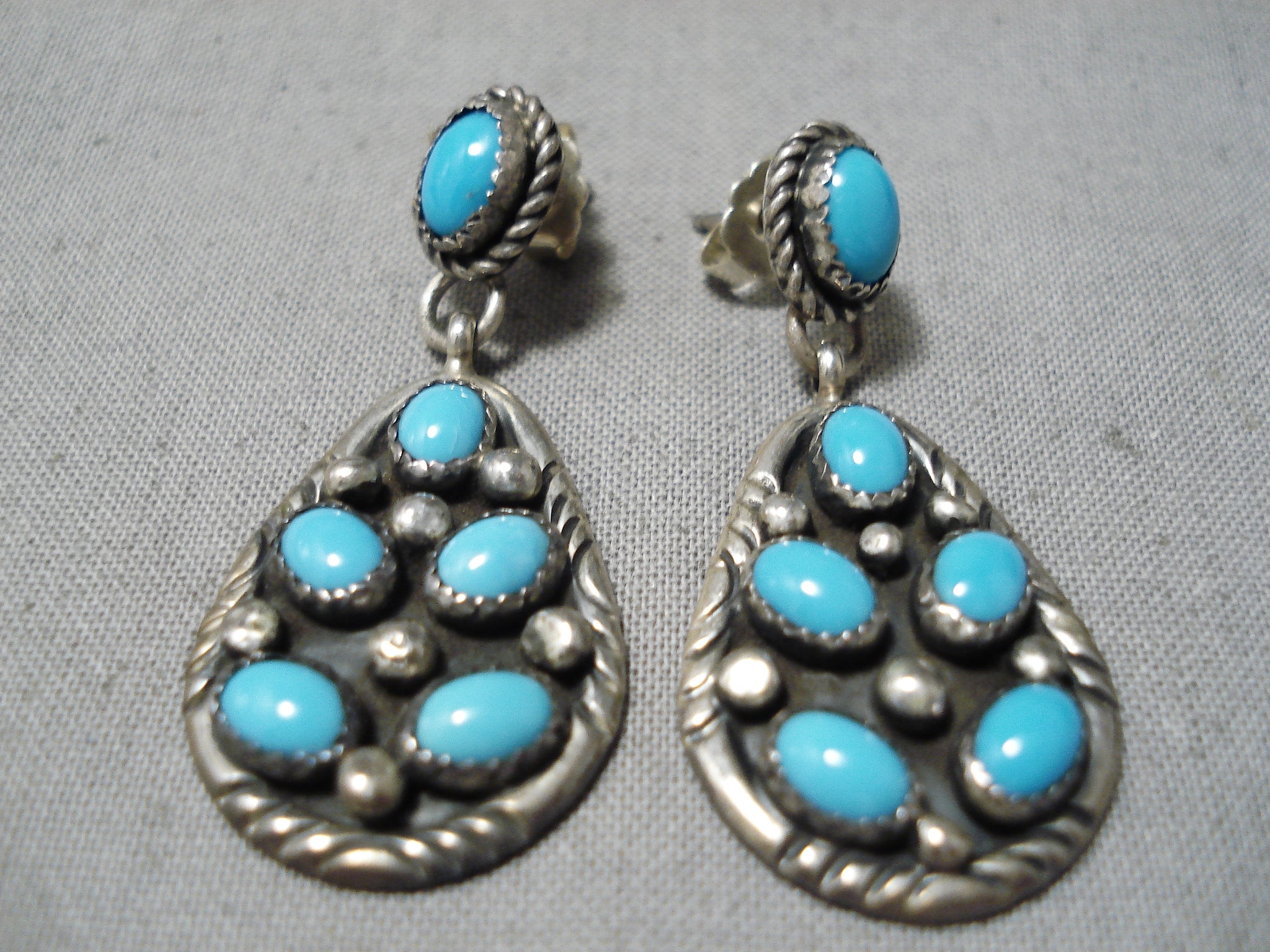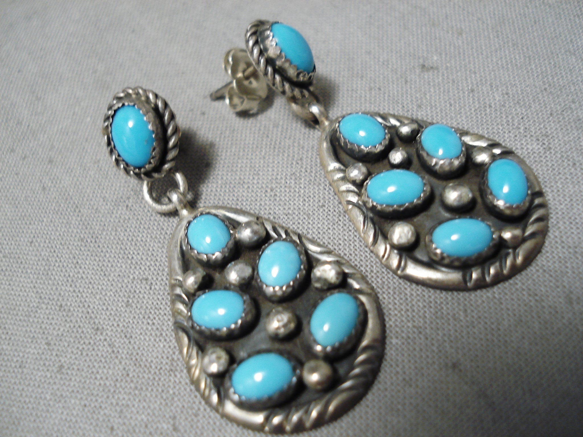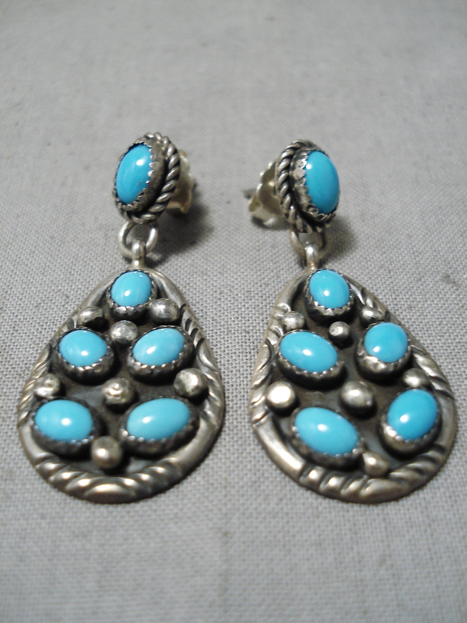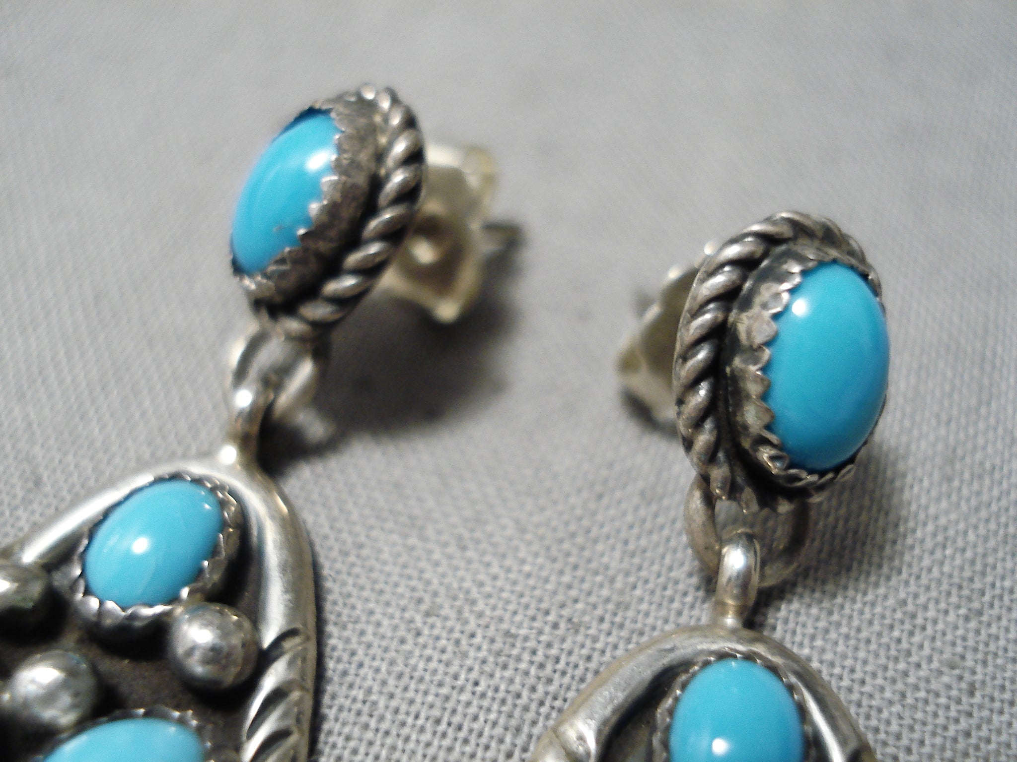 Authentic Vintage Native American Navajo Domed Turquoise Sterling Silver Earrings