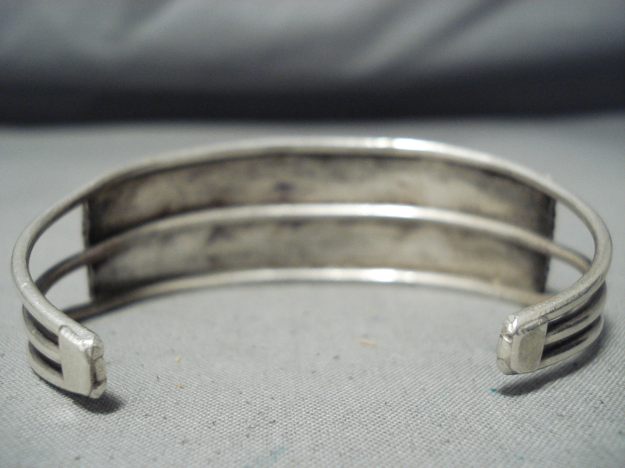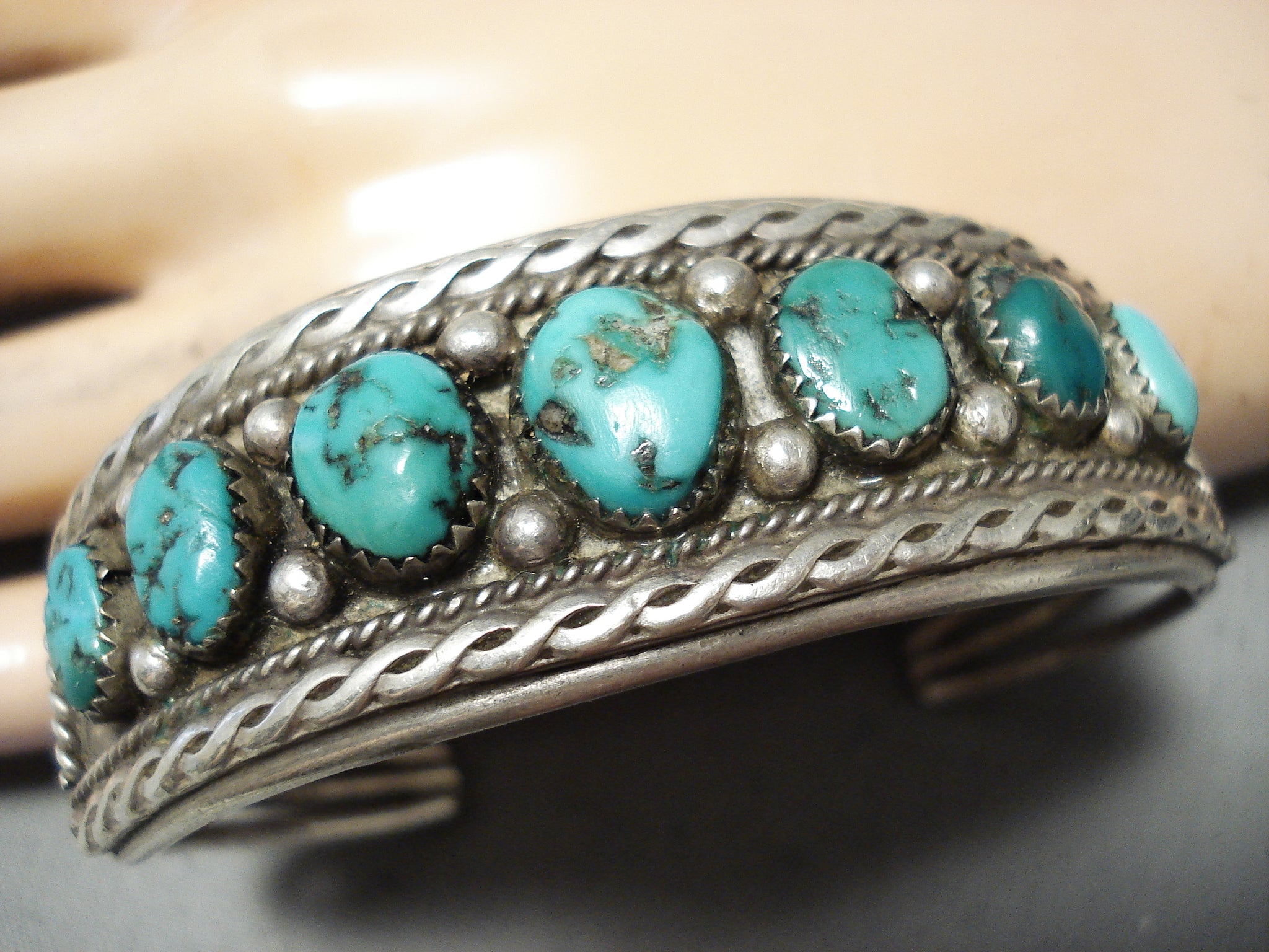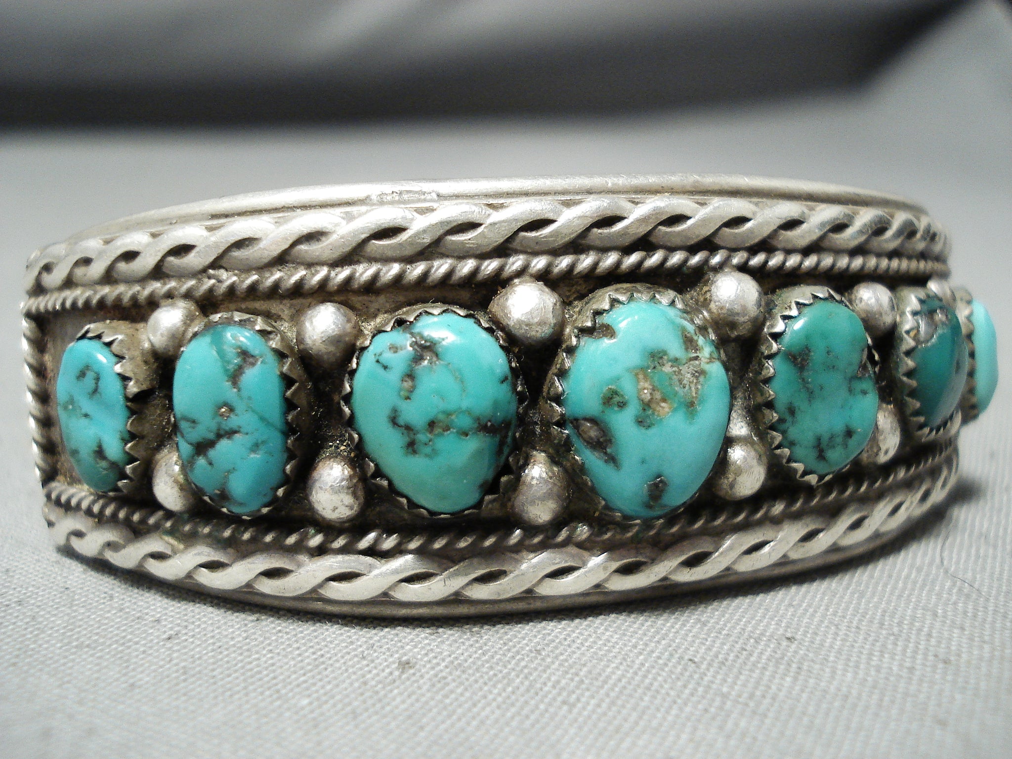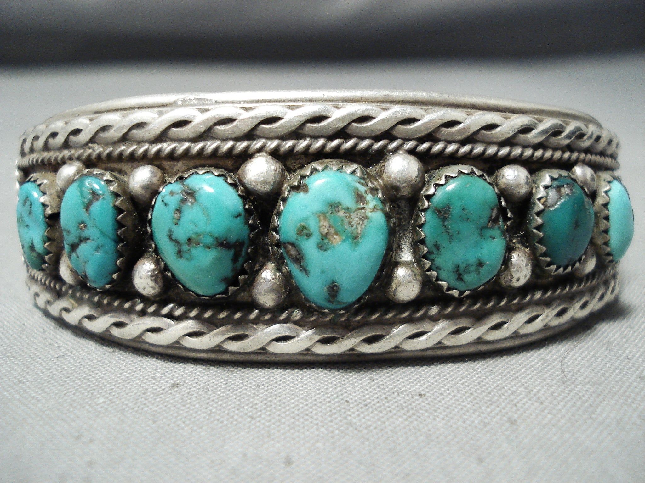 Authentic Vintage Native American Navajo Green Turquoise Sterling Silver Bracelet Old