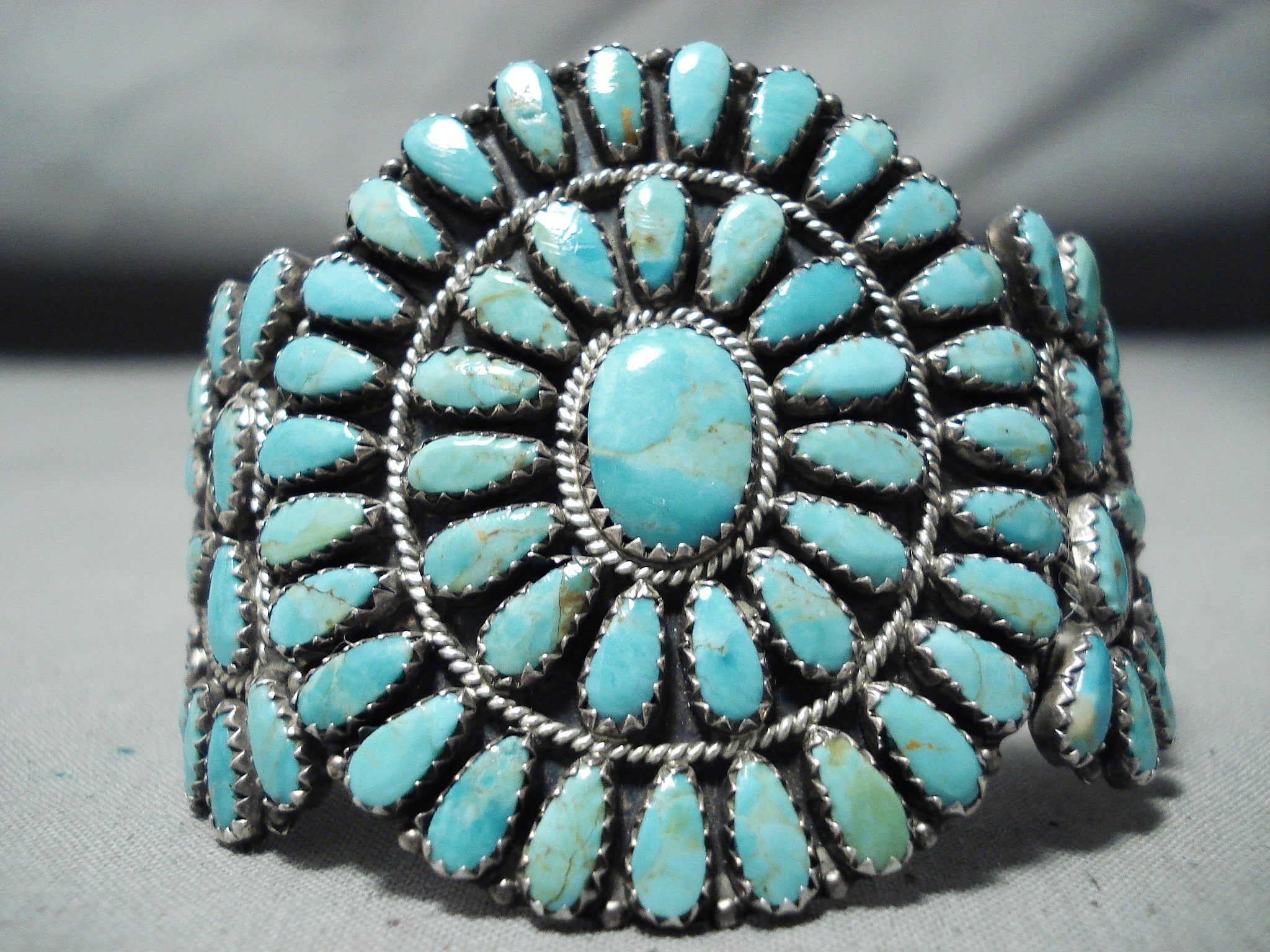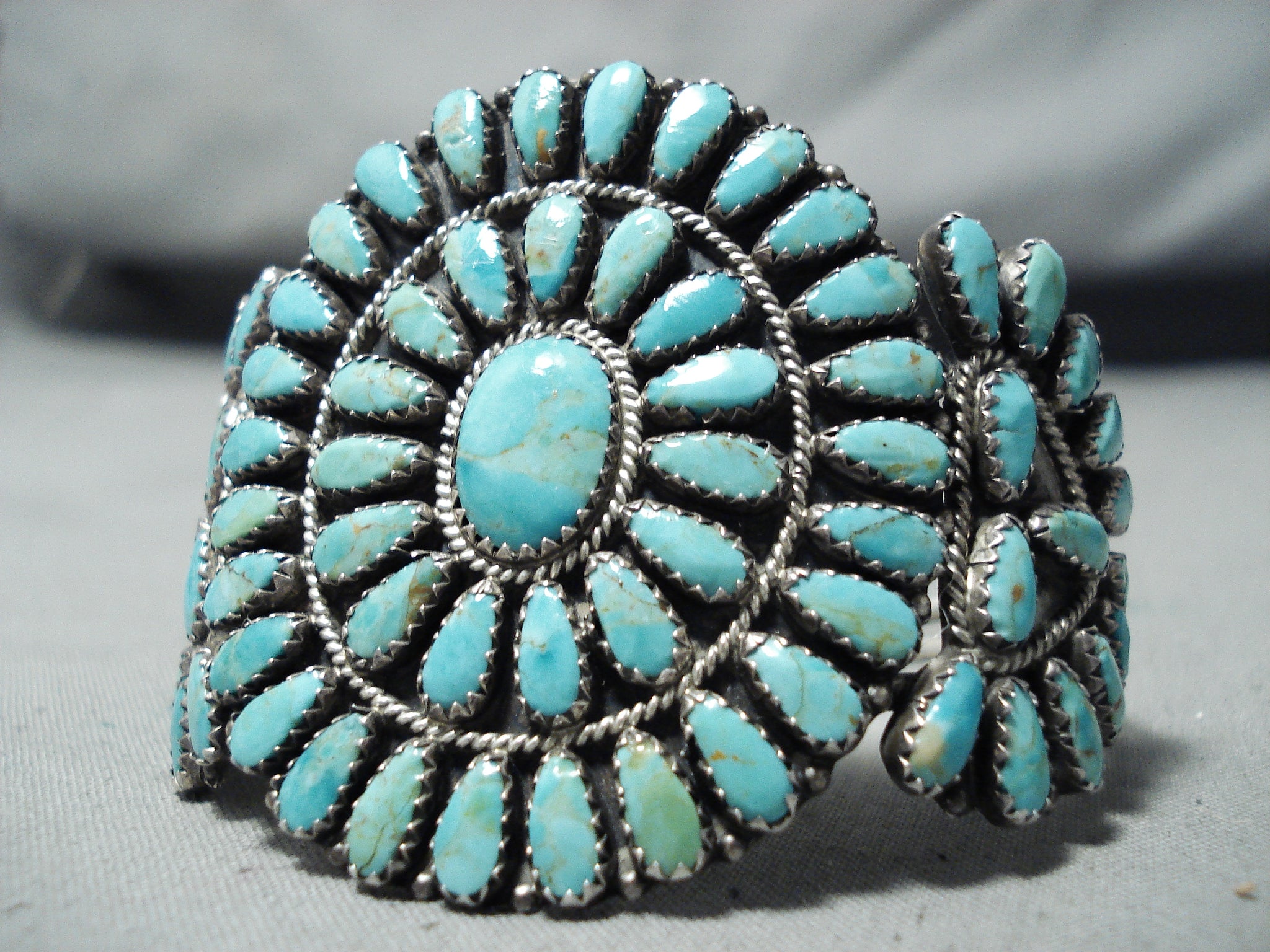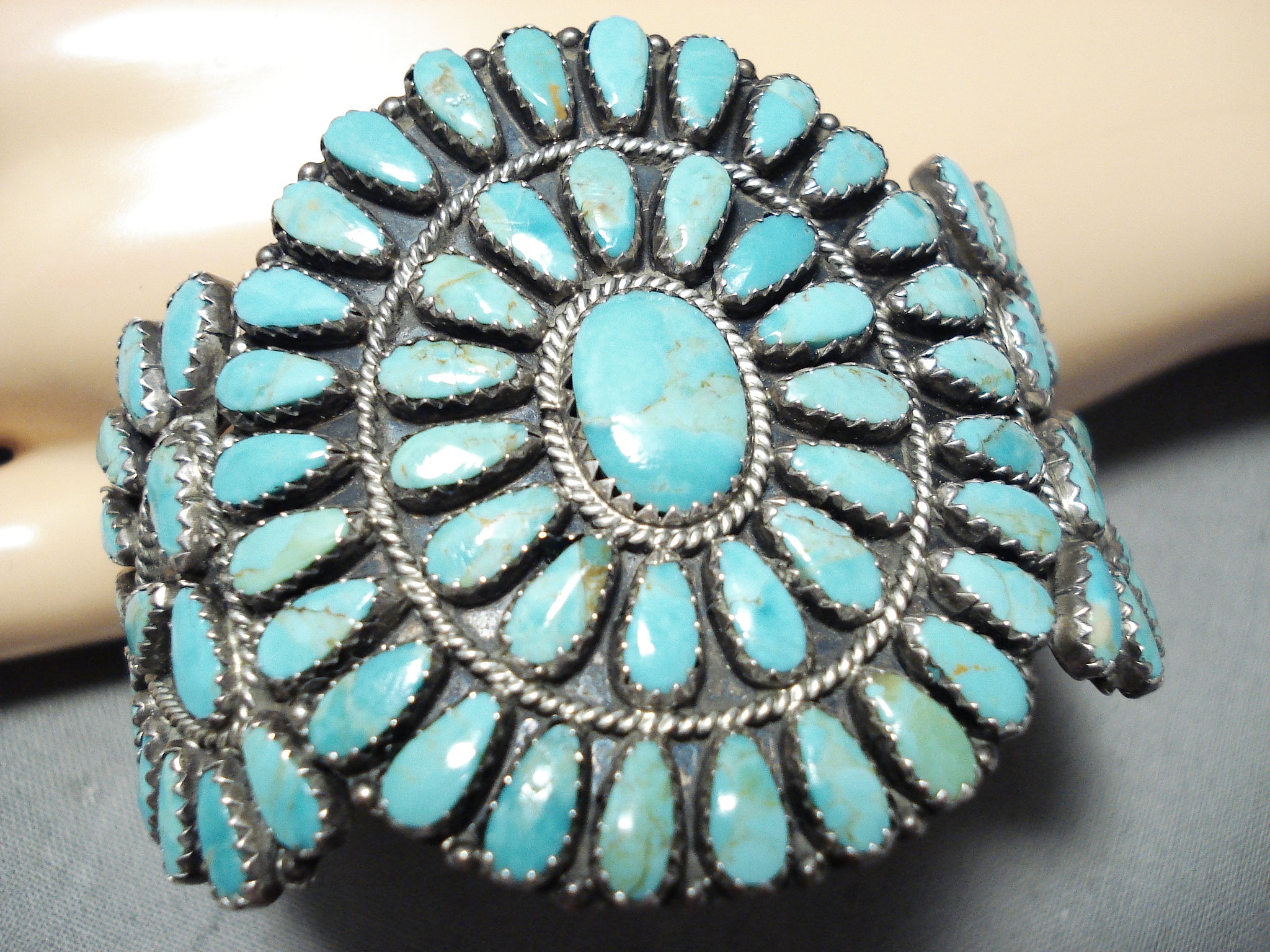 Authentic Vintage Native American Navajo Larry Moses Turquoise Sterling Silver Bracelet