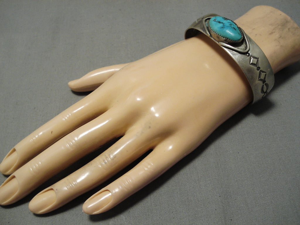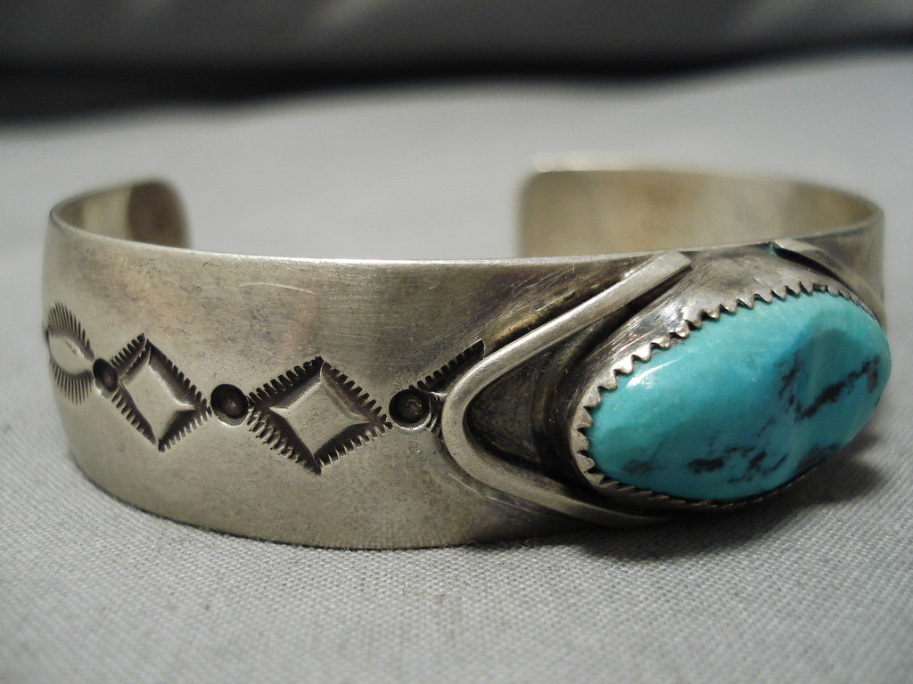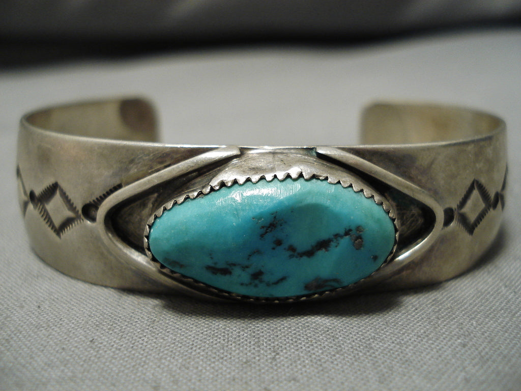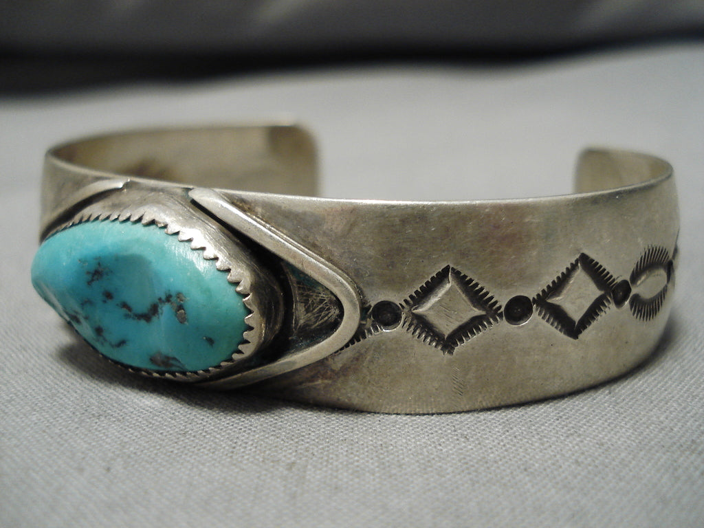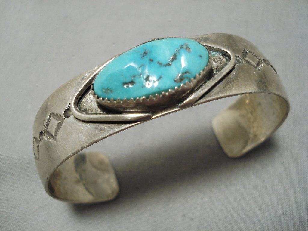 Authentic Vintage Native American Navajo Louis Yazzie Turquoise Sterling Silver Bracelet Old