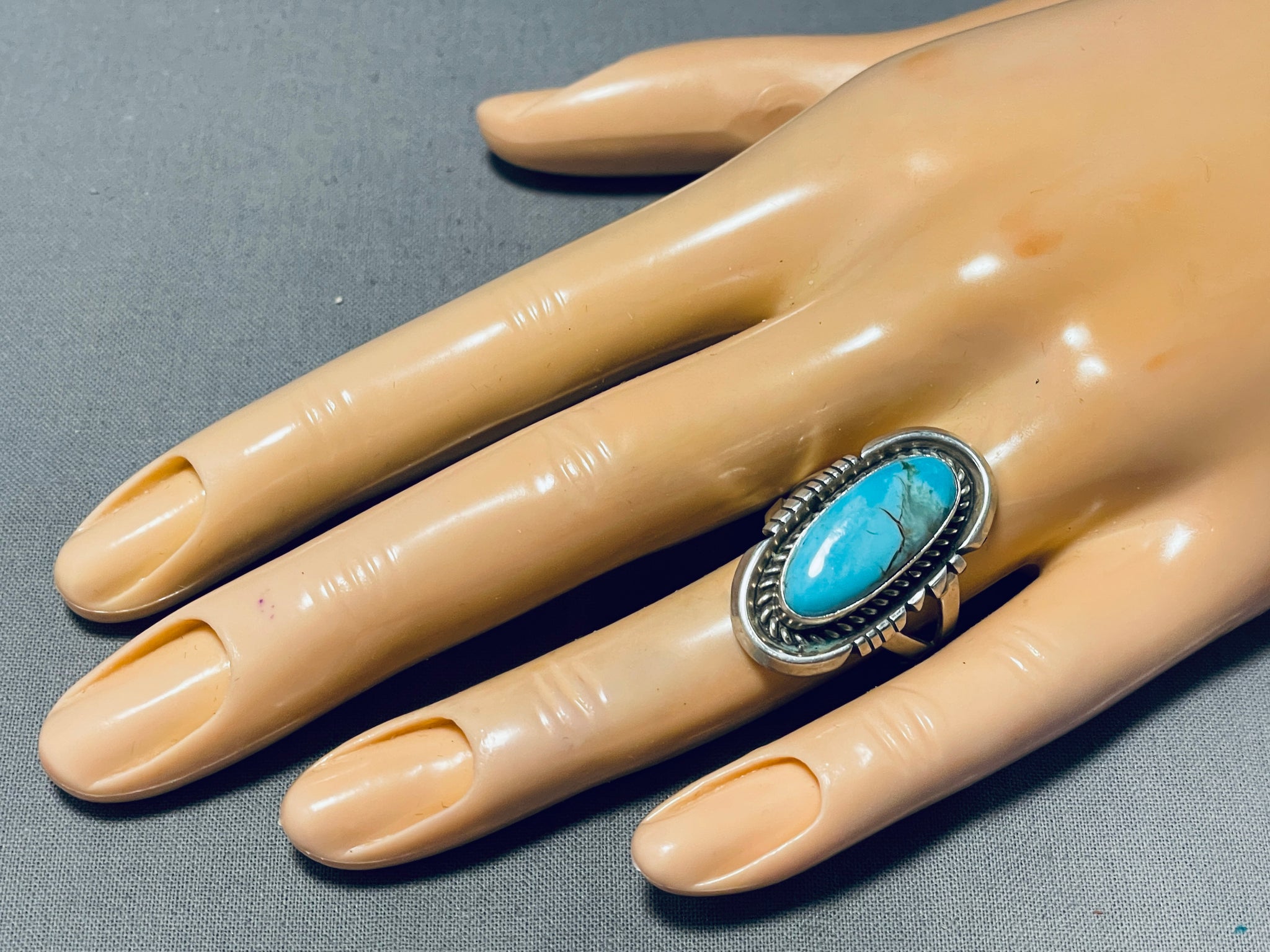 Authentic Vintage Native American Navajo Red Mountain Turquoise Sterling Silver Ring