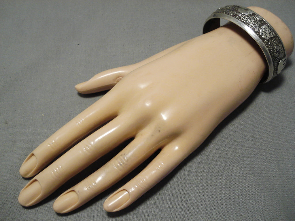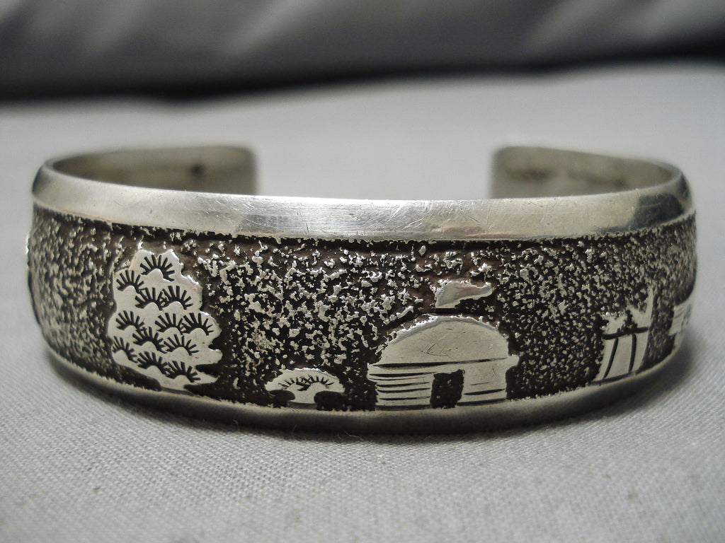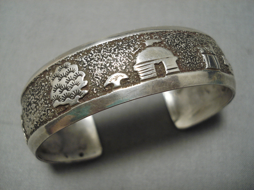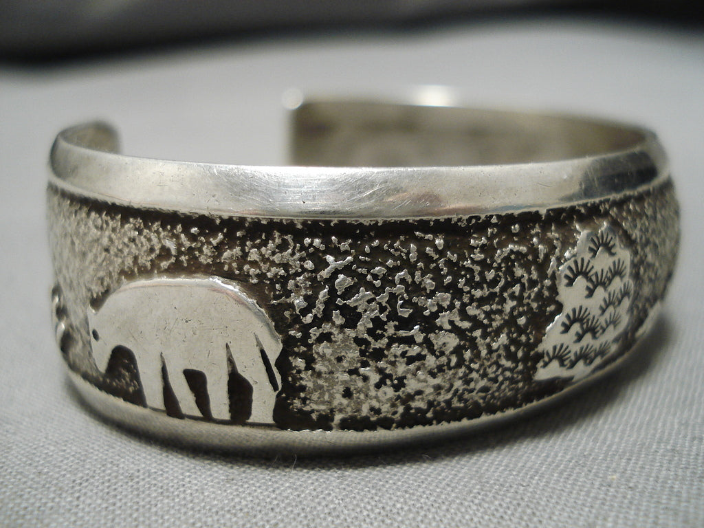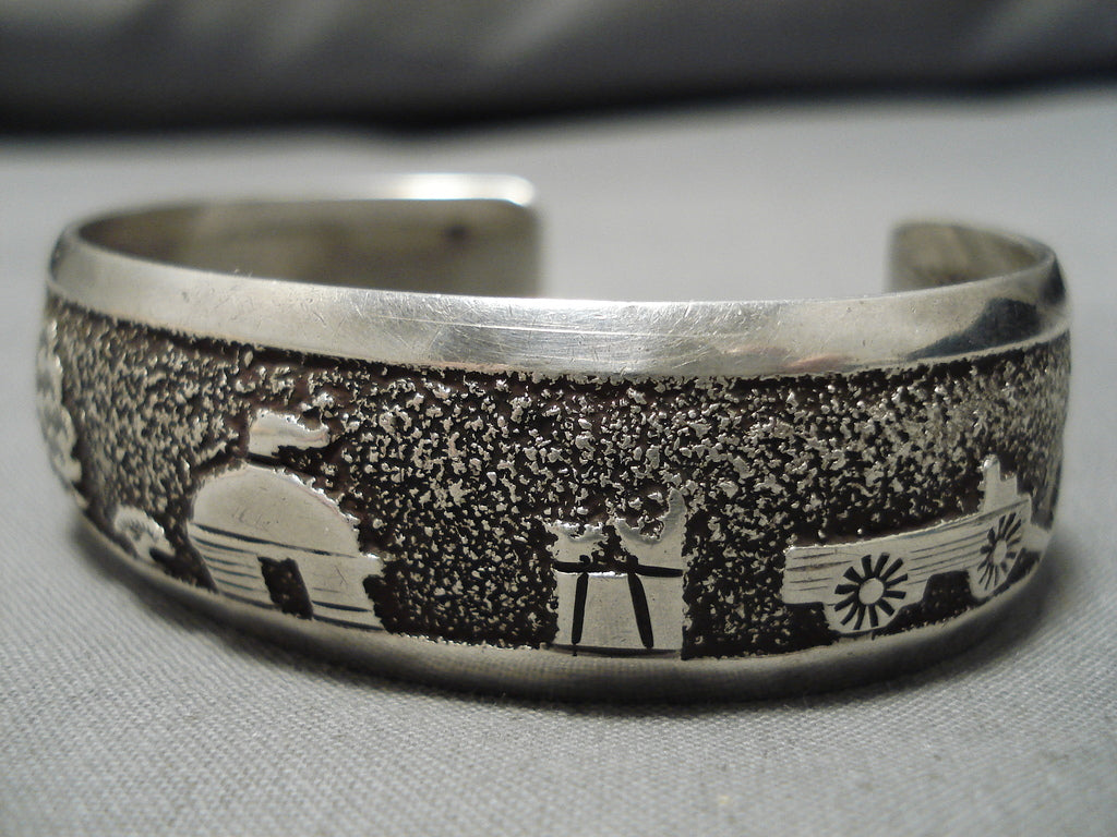 Authentic Vintage Native American Navajo Thomas Singer Sterling Silver Bracelet Cuff Old