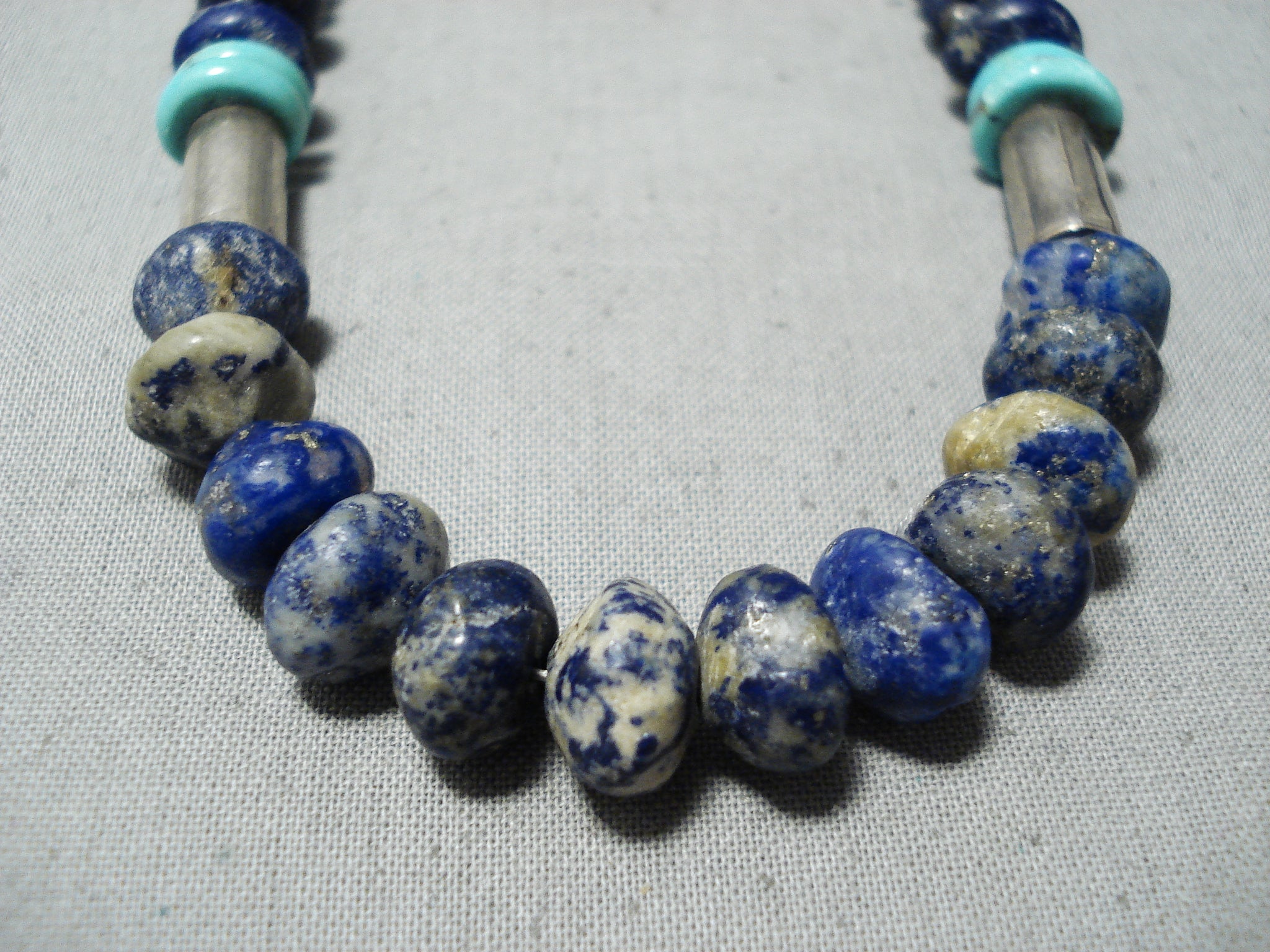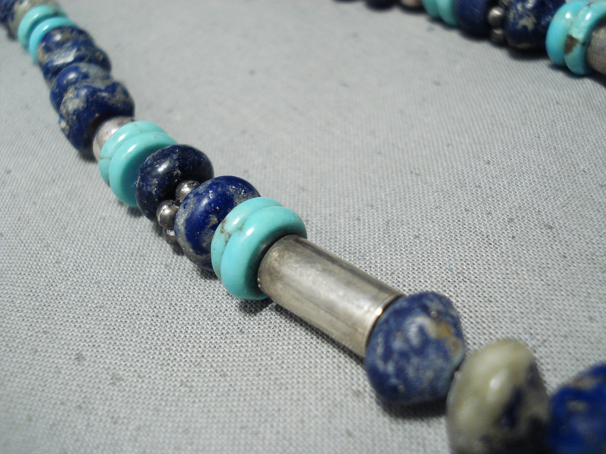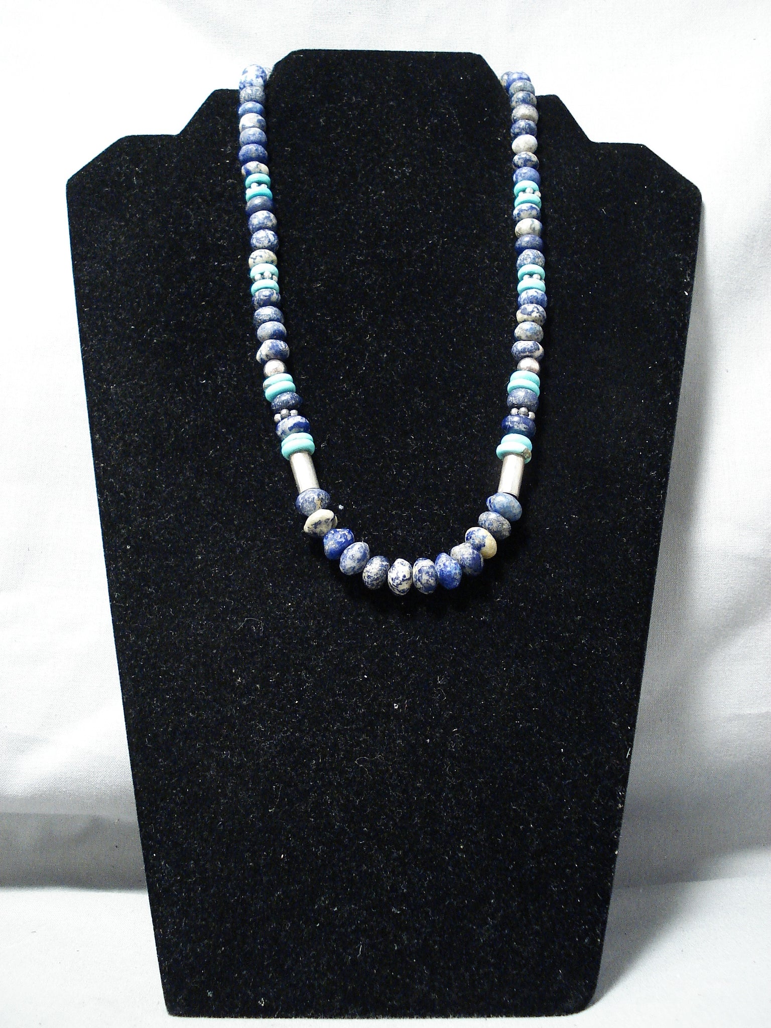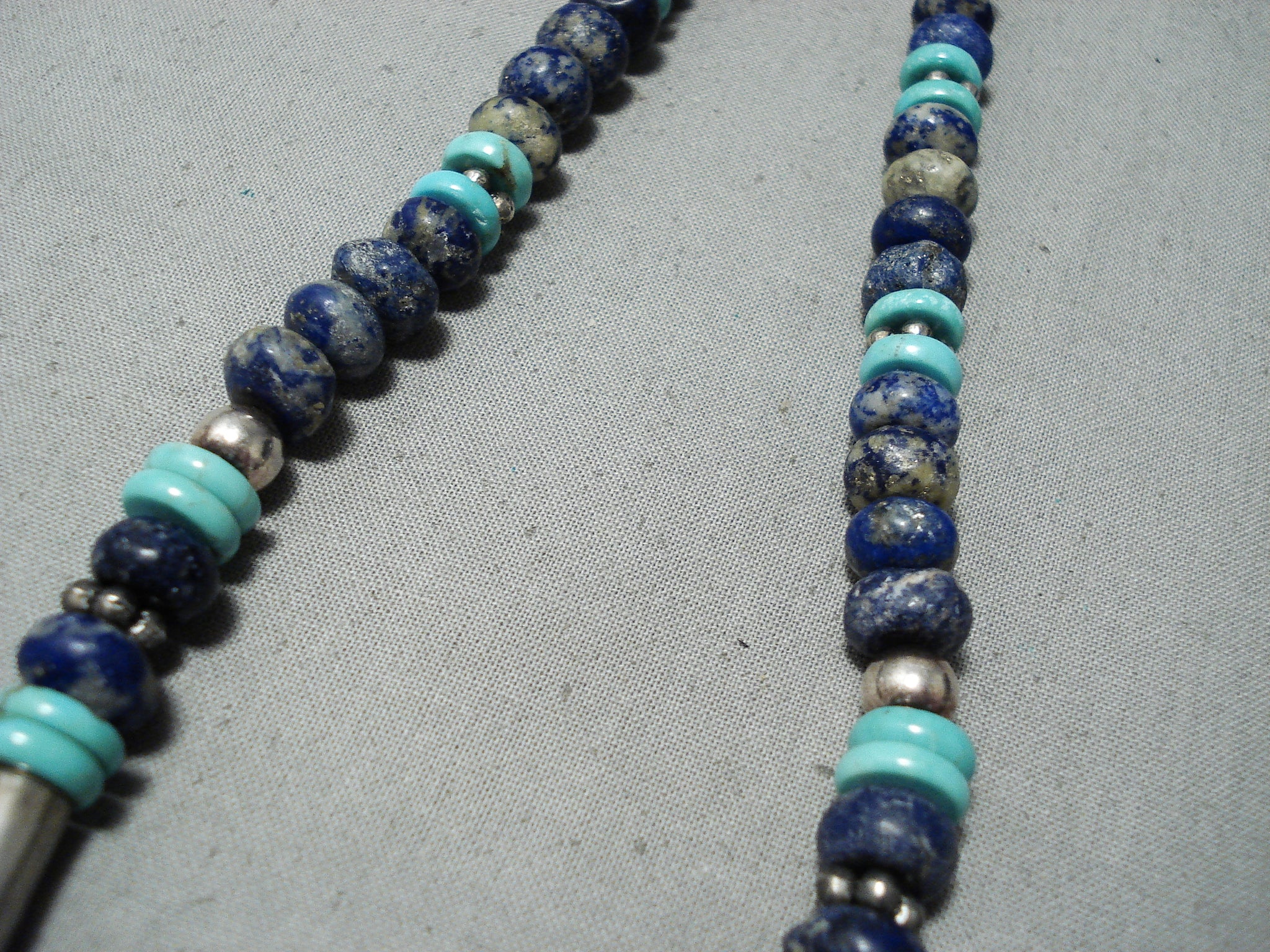 Authentic Vintage Native American Navajo Thomas Singer Turquoise Lapis Sterling Silver Necklace