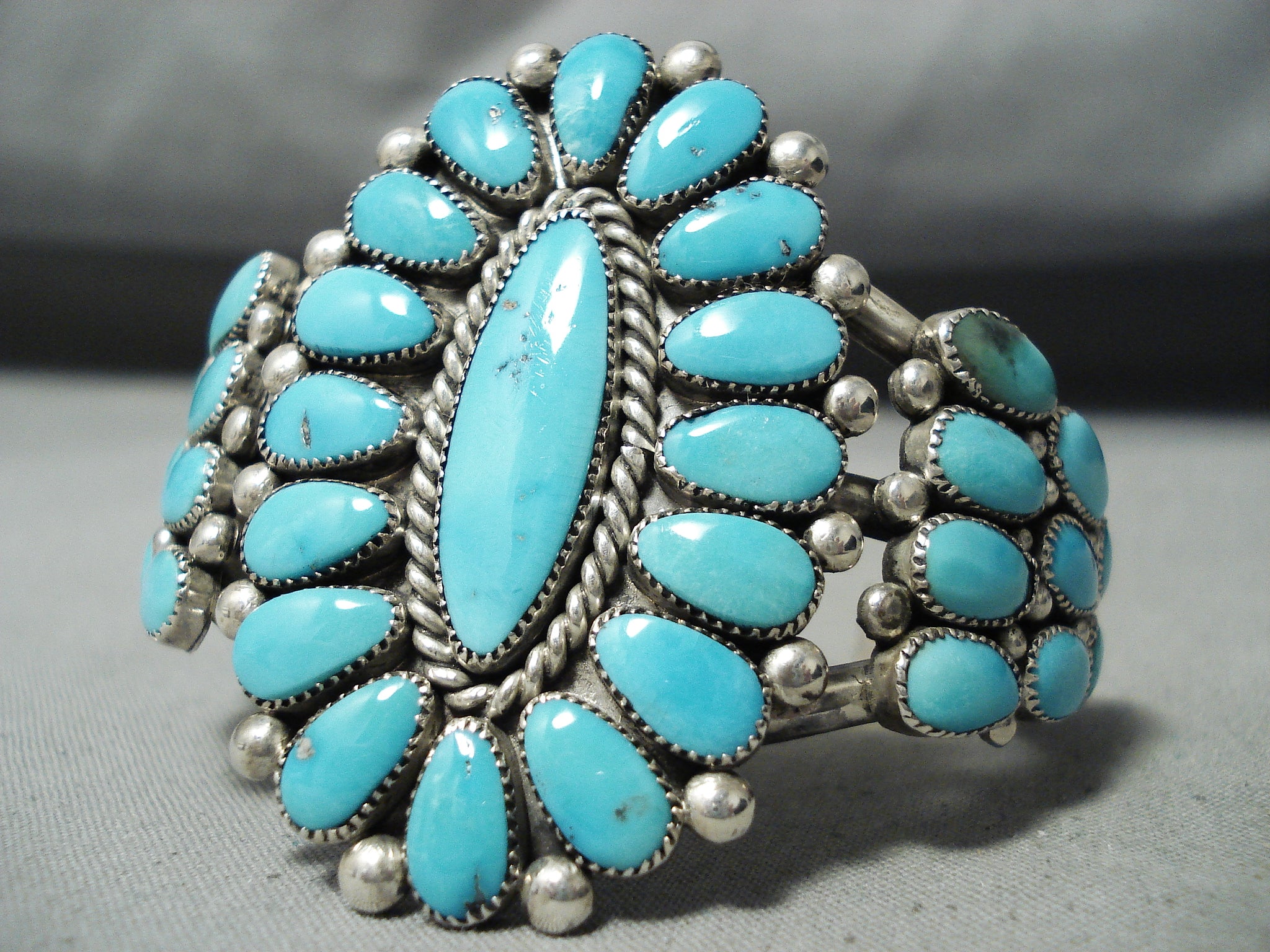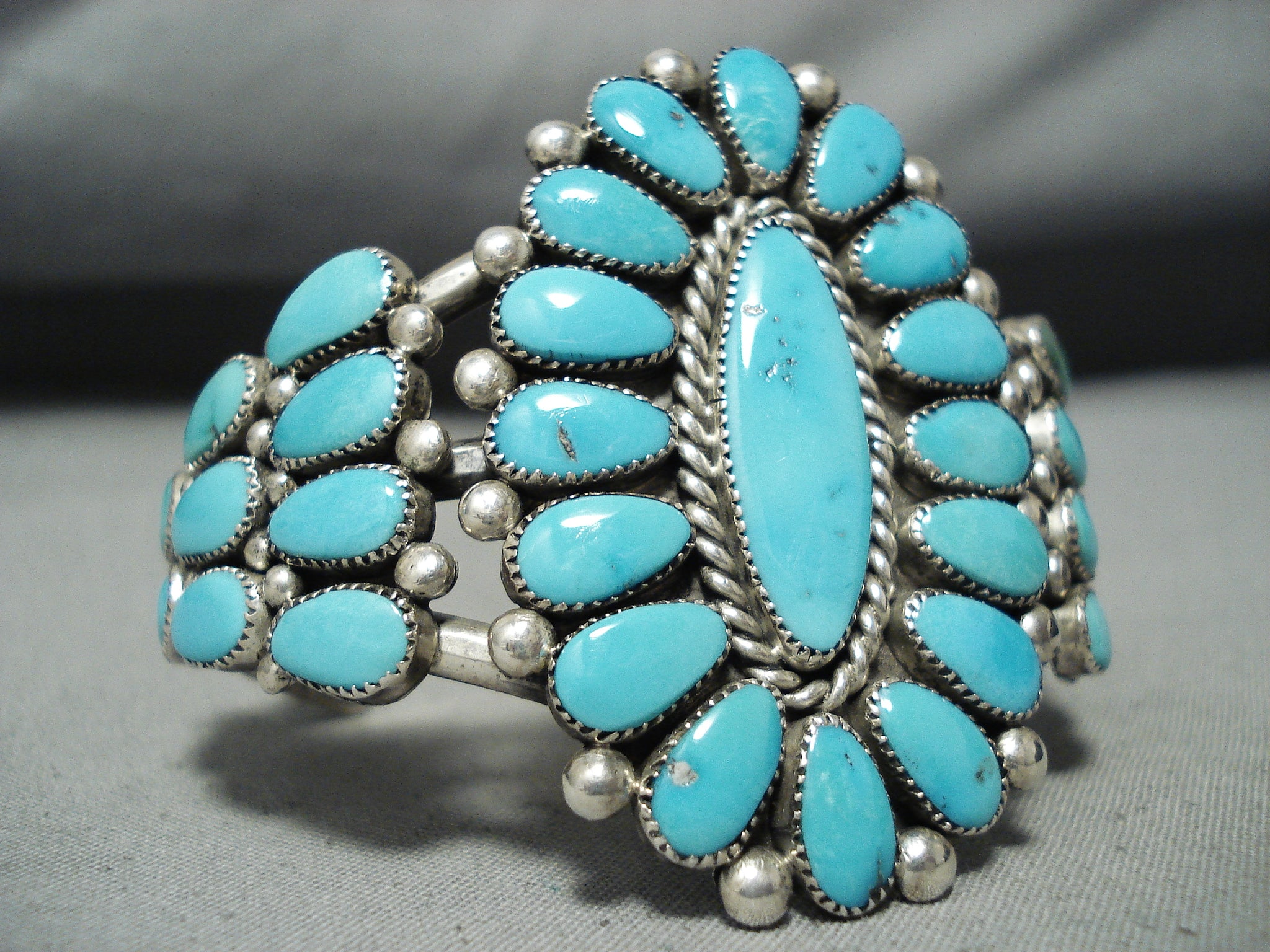 Authentic Vintage Native American Zuni Alice Quam Turquoise Sterling Silver Bracelet
