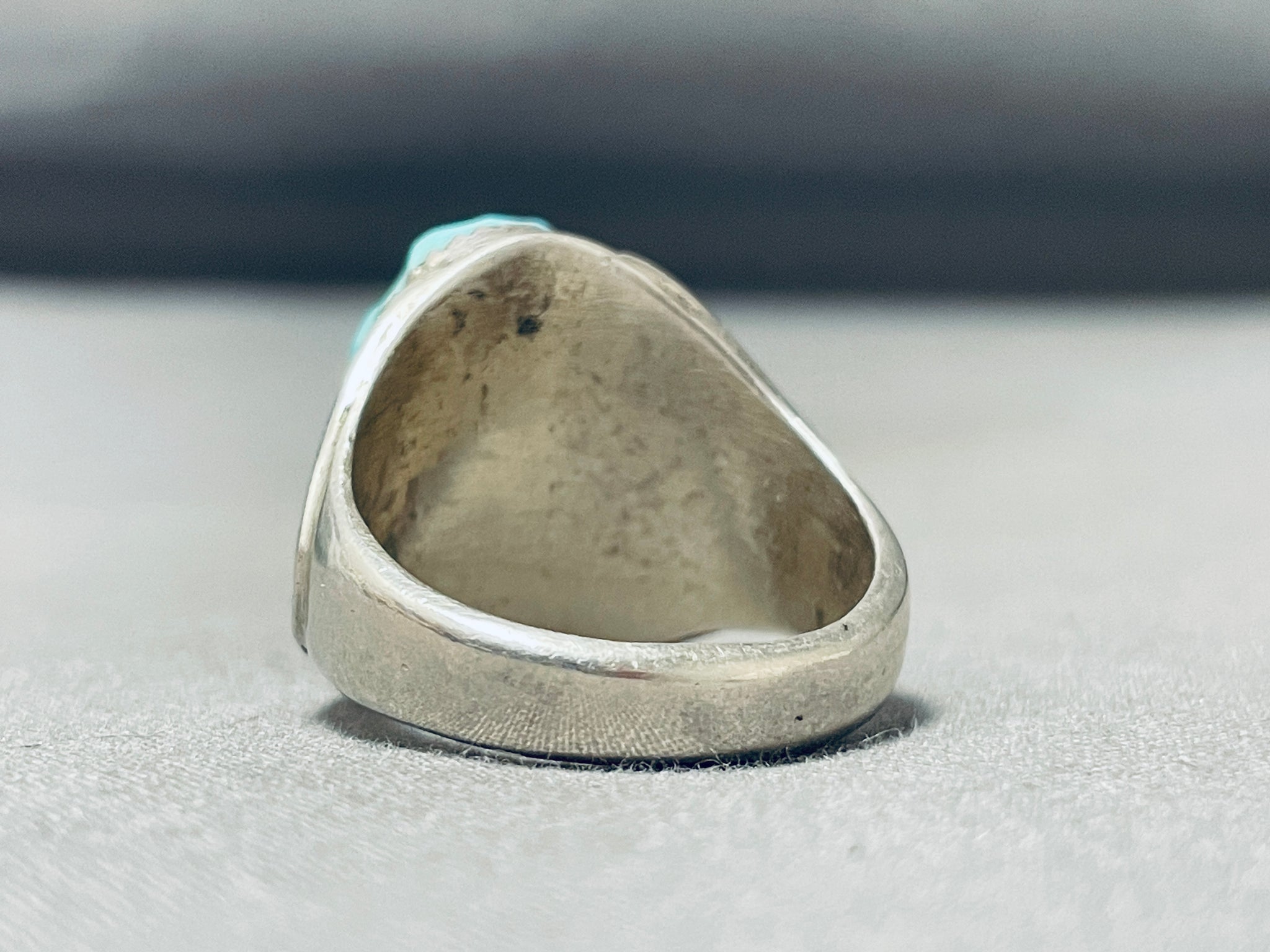 Authentic Vintage Native American Zuni Carved Turquoise Sterling Silver Ring
