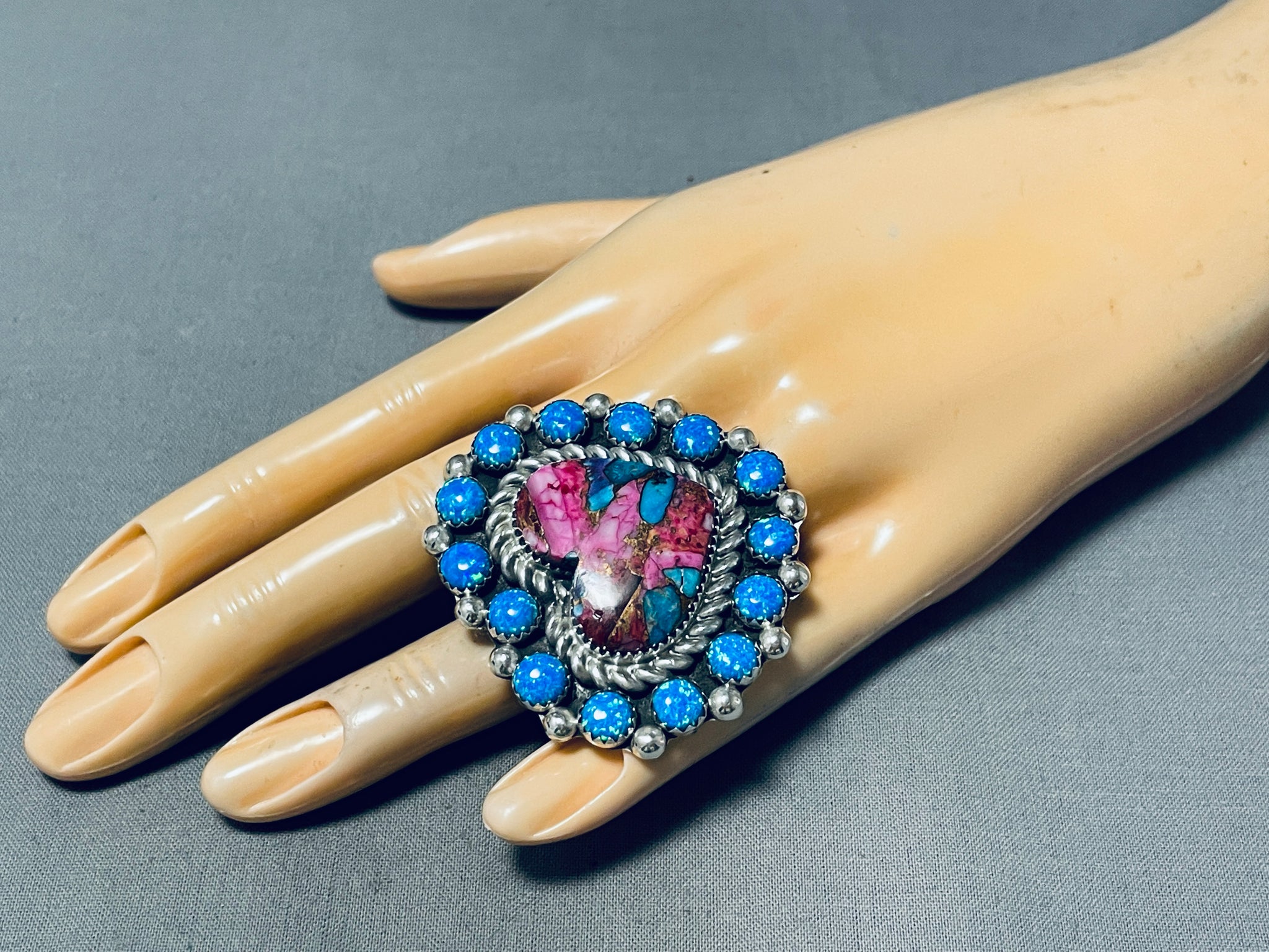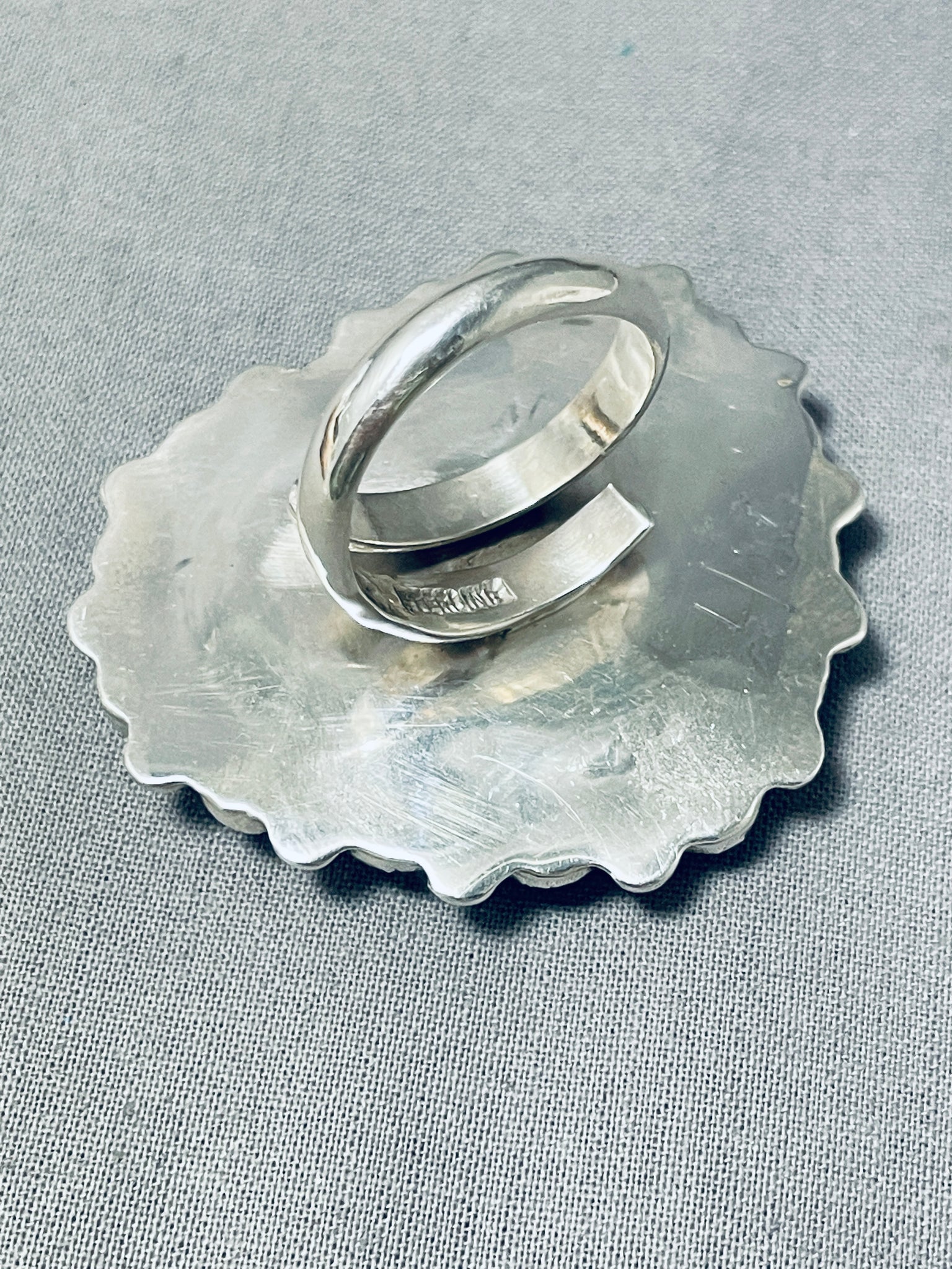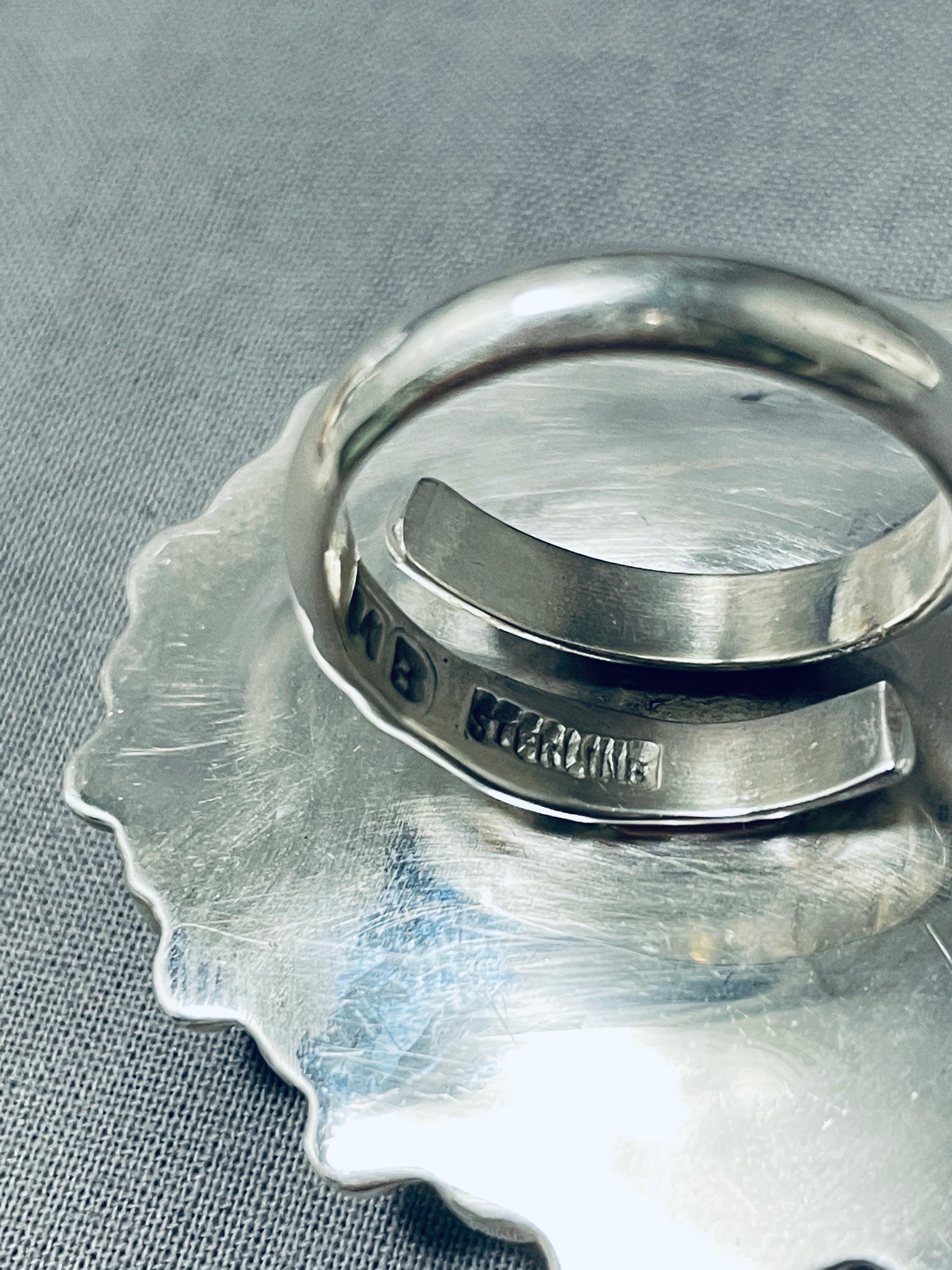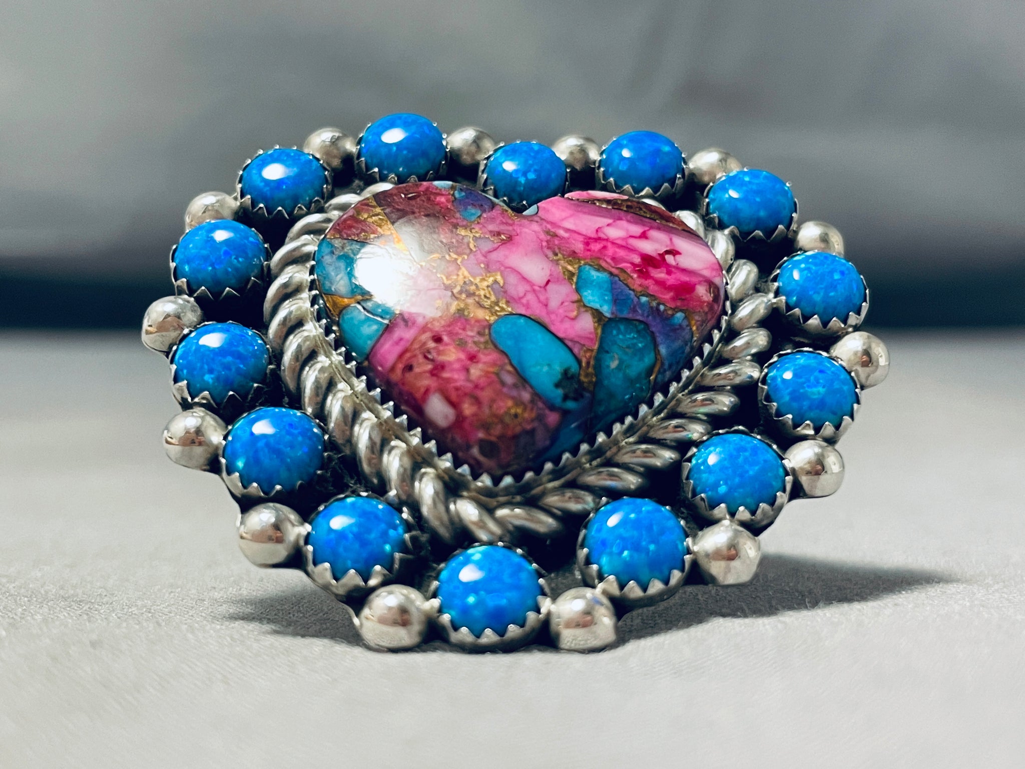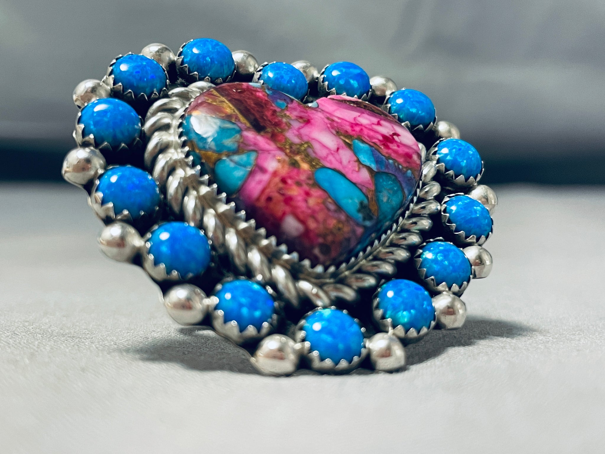 Awesome Native American Navajo Mojave Turquoise Synth Opal Sterling Silver Huge Heart Ring