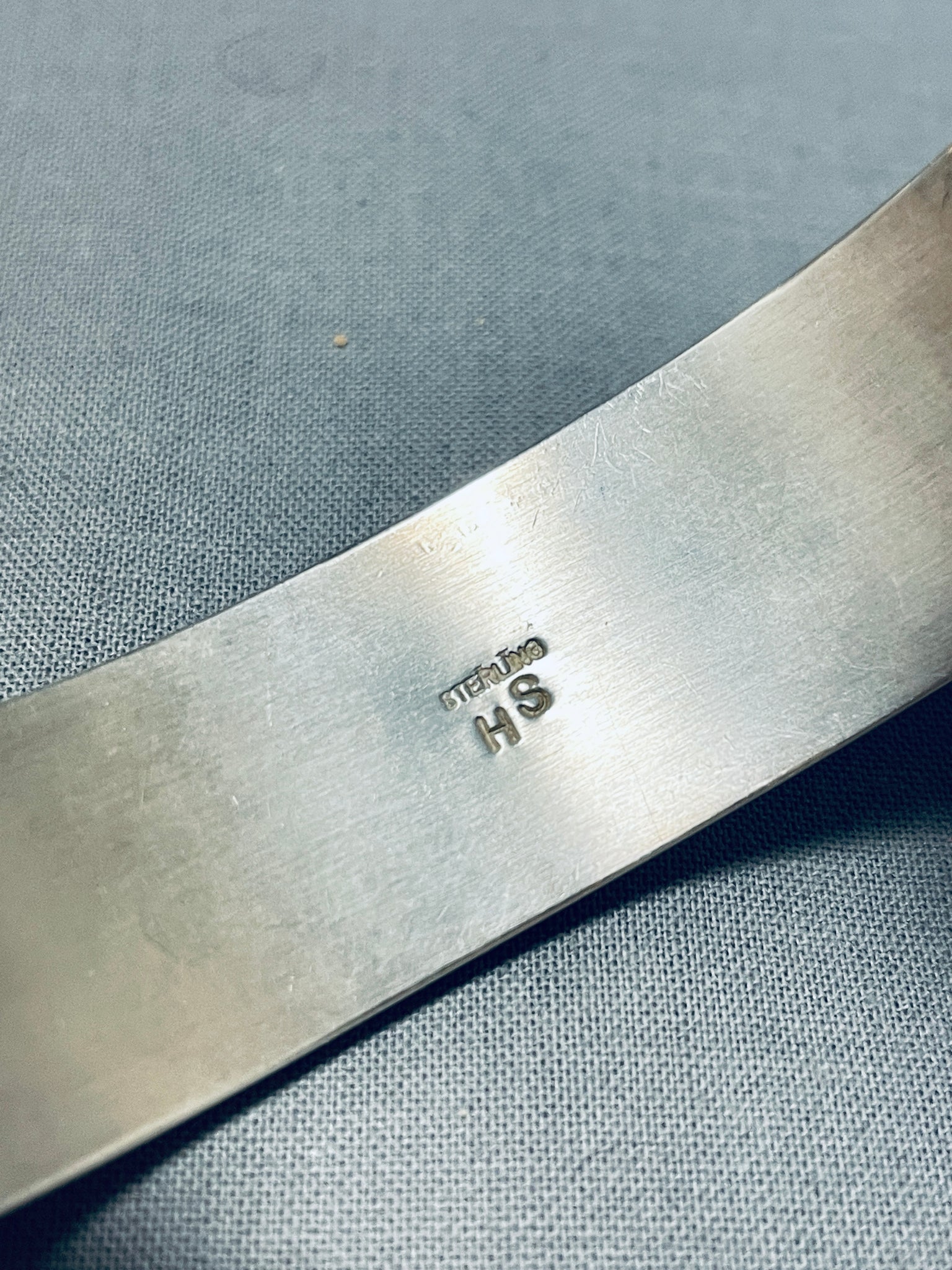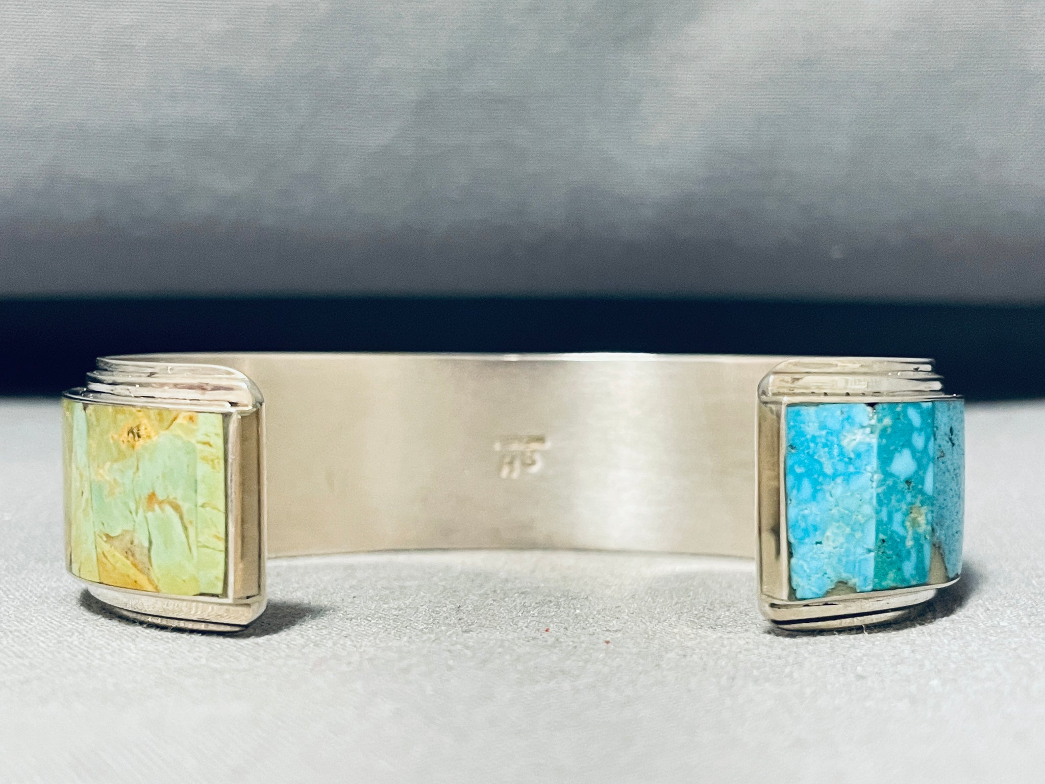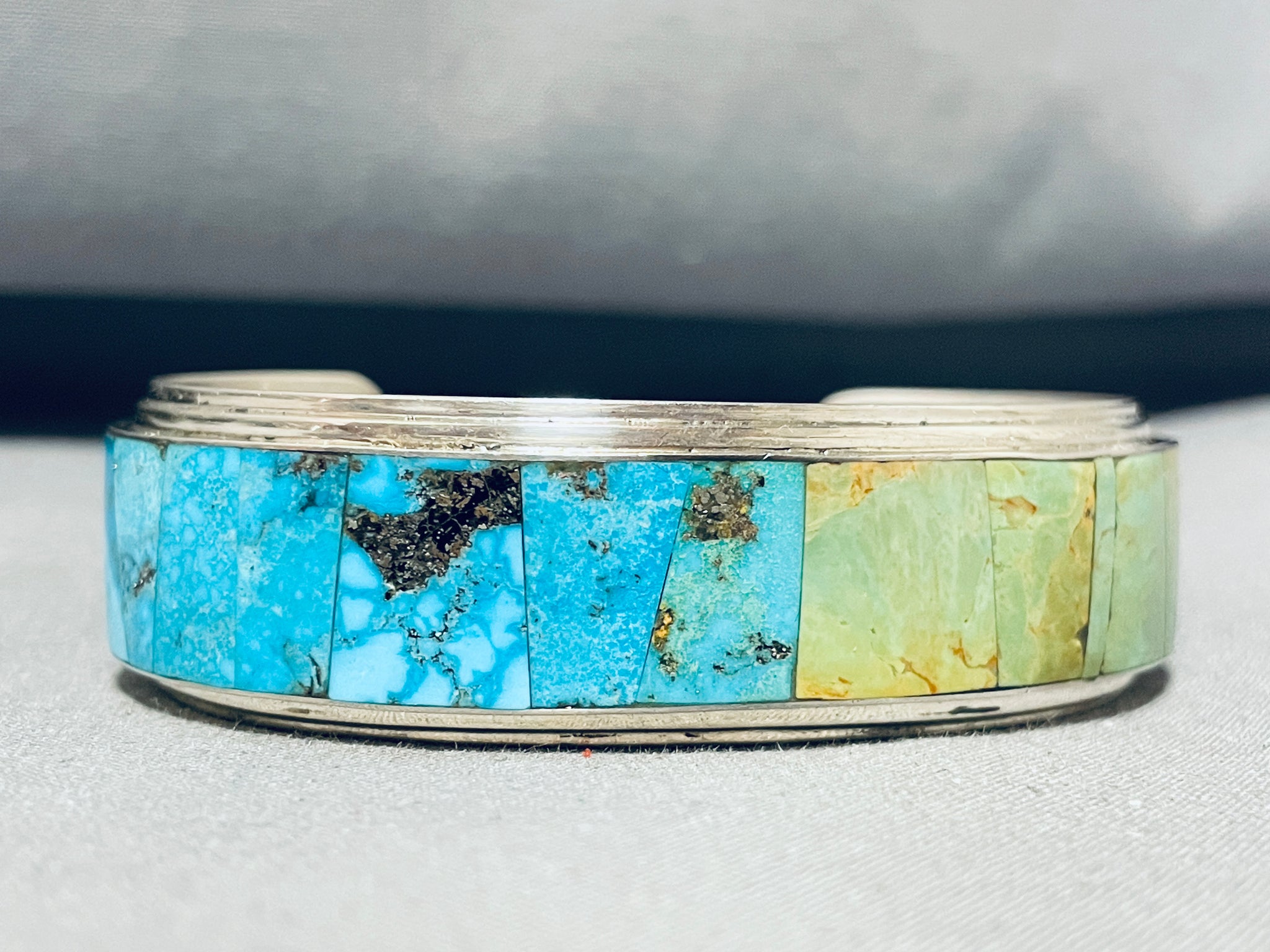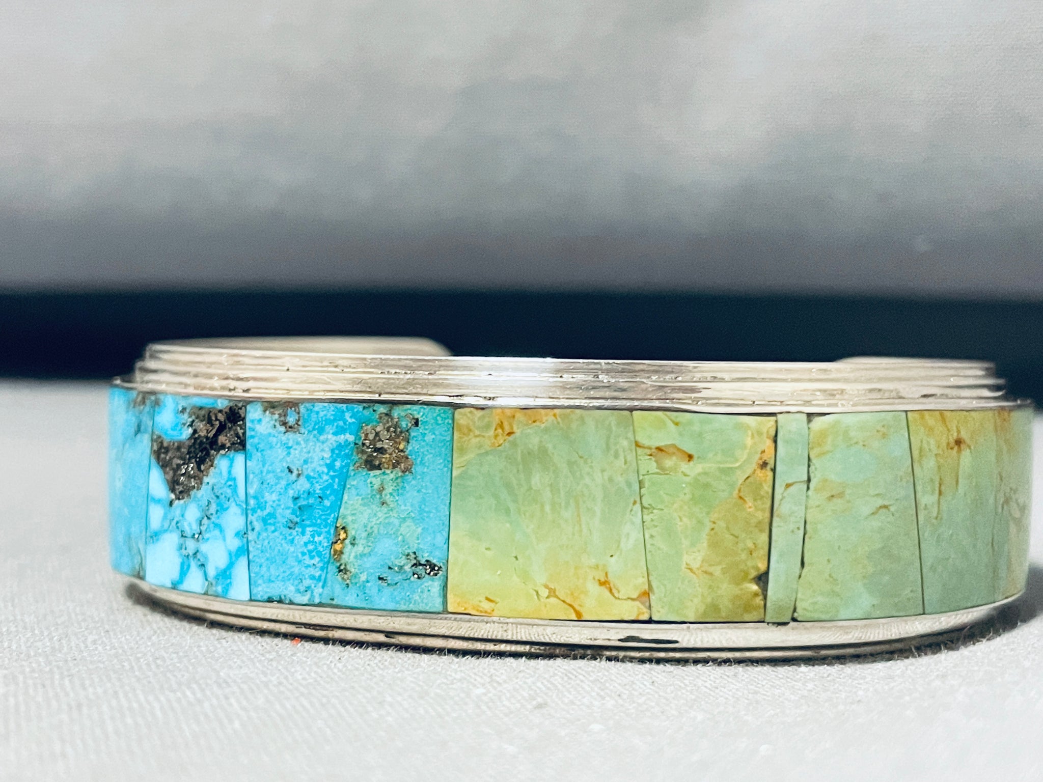 Awesome Native American Navajo Signed Inlay Pilot Mountain Royston Turquoise Silver Bracelet