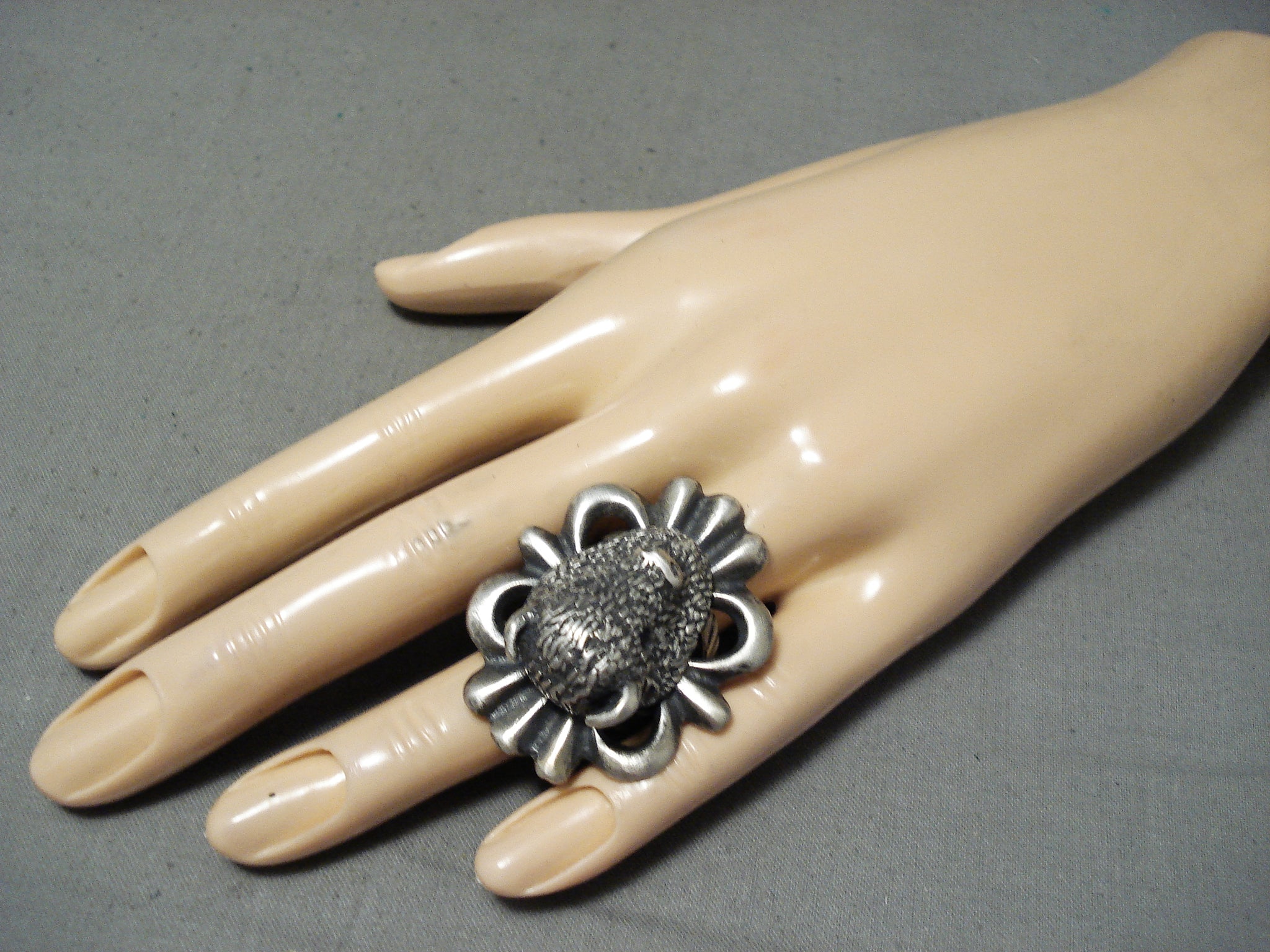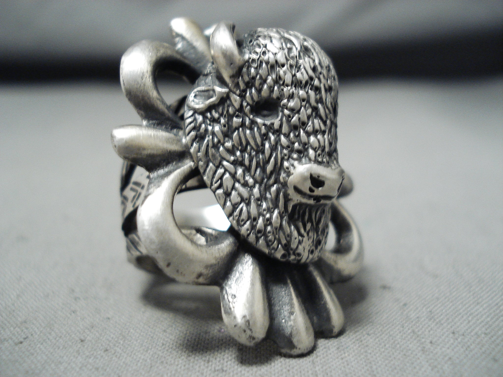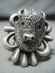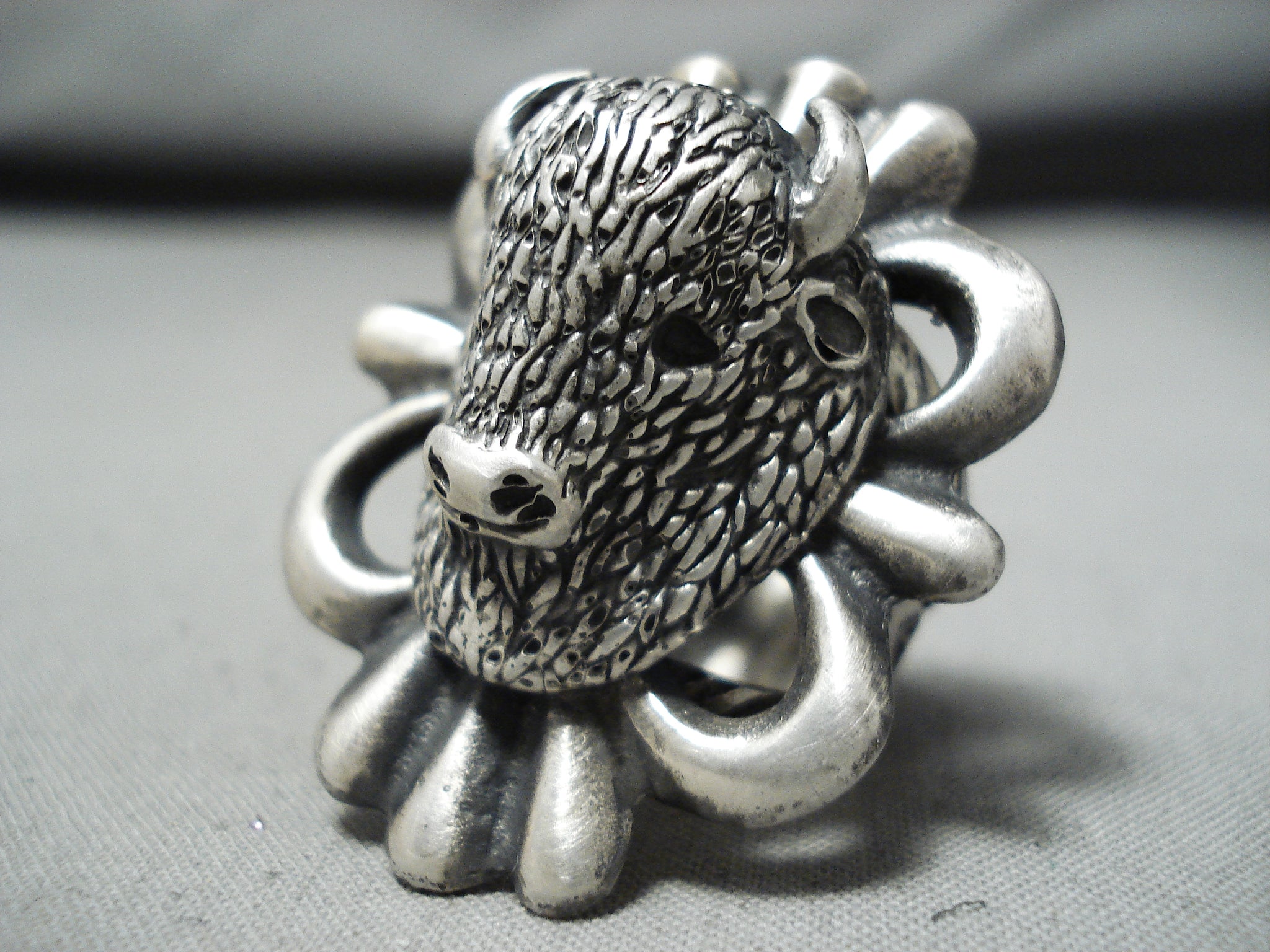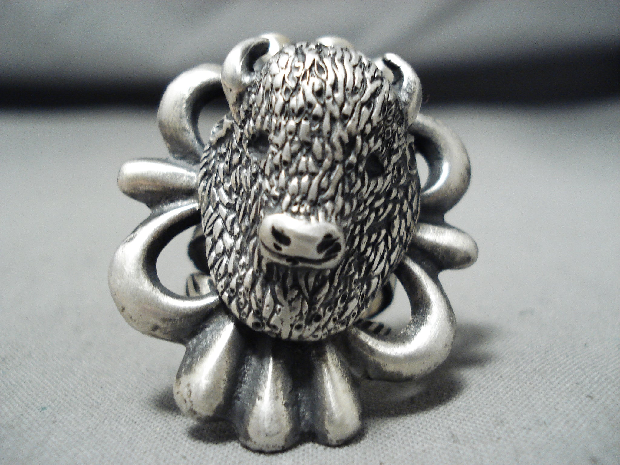 Awesome Native American Navajo Sterling Silver Buffalo Ring