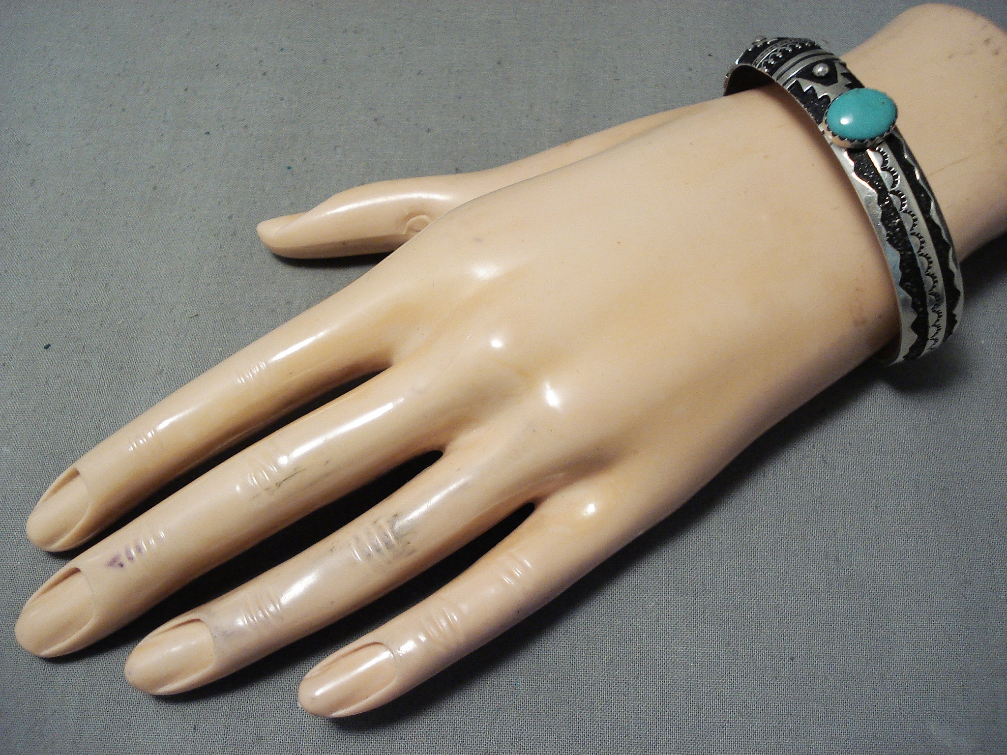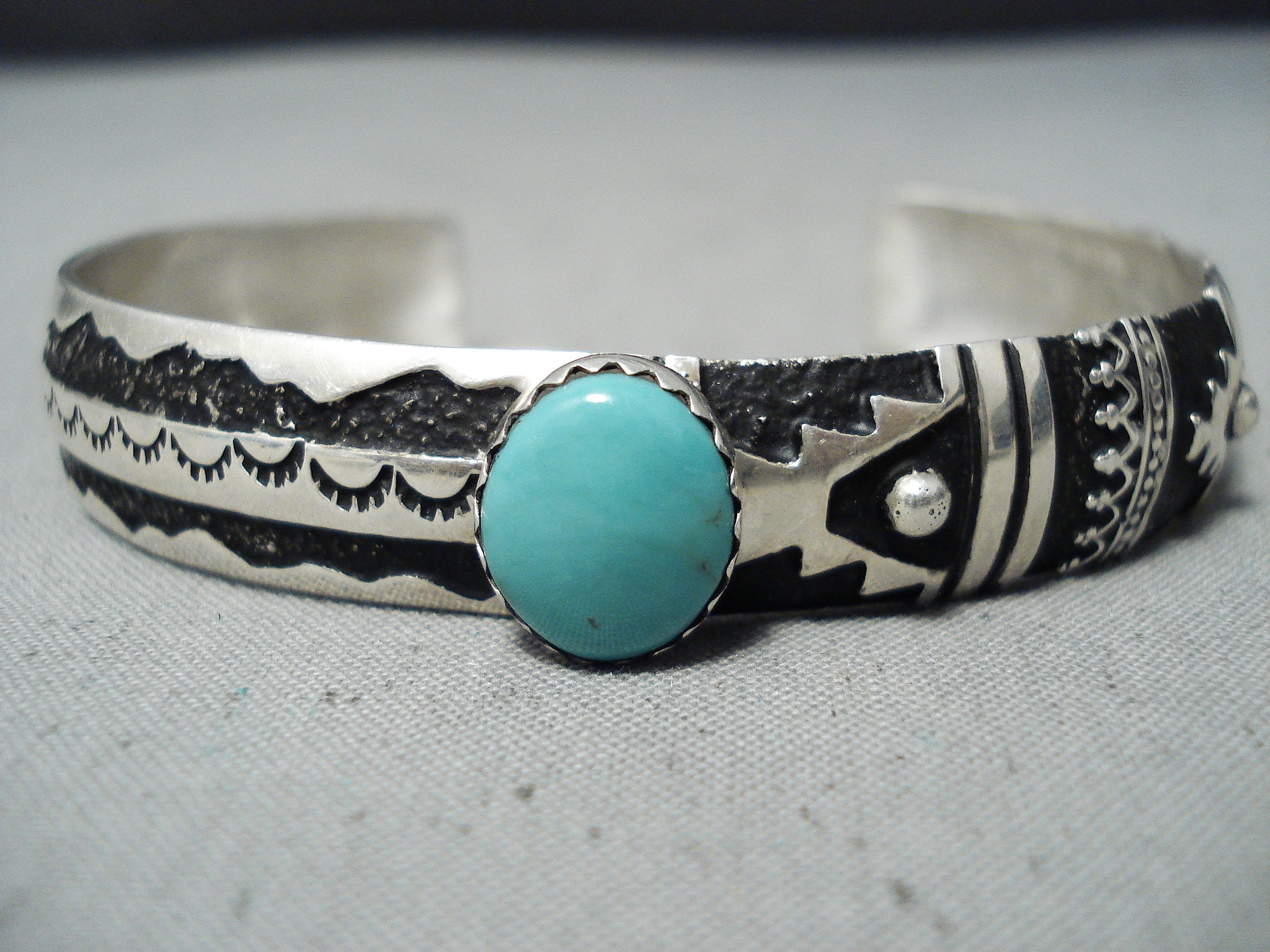 Awesome Navajo Green Turquoise Sterling Silver Bracelet Native American