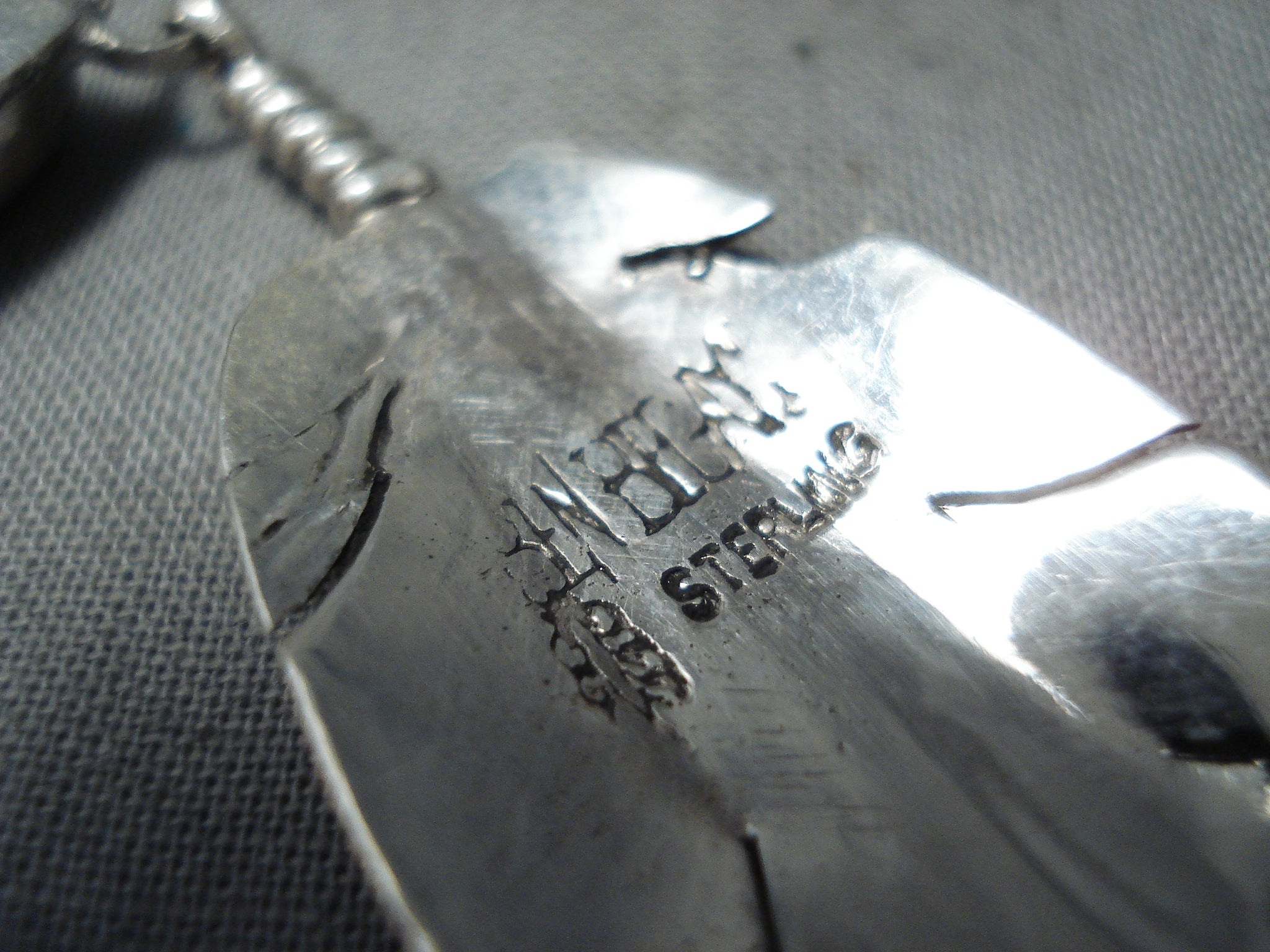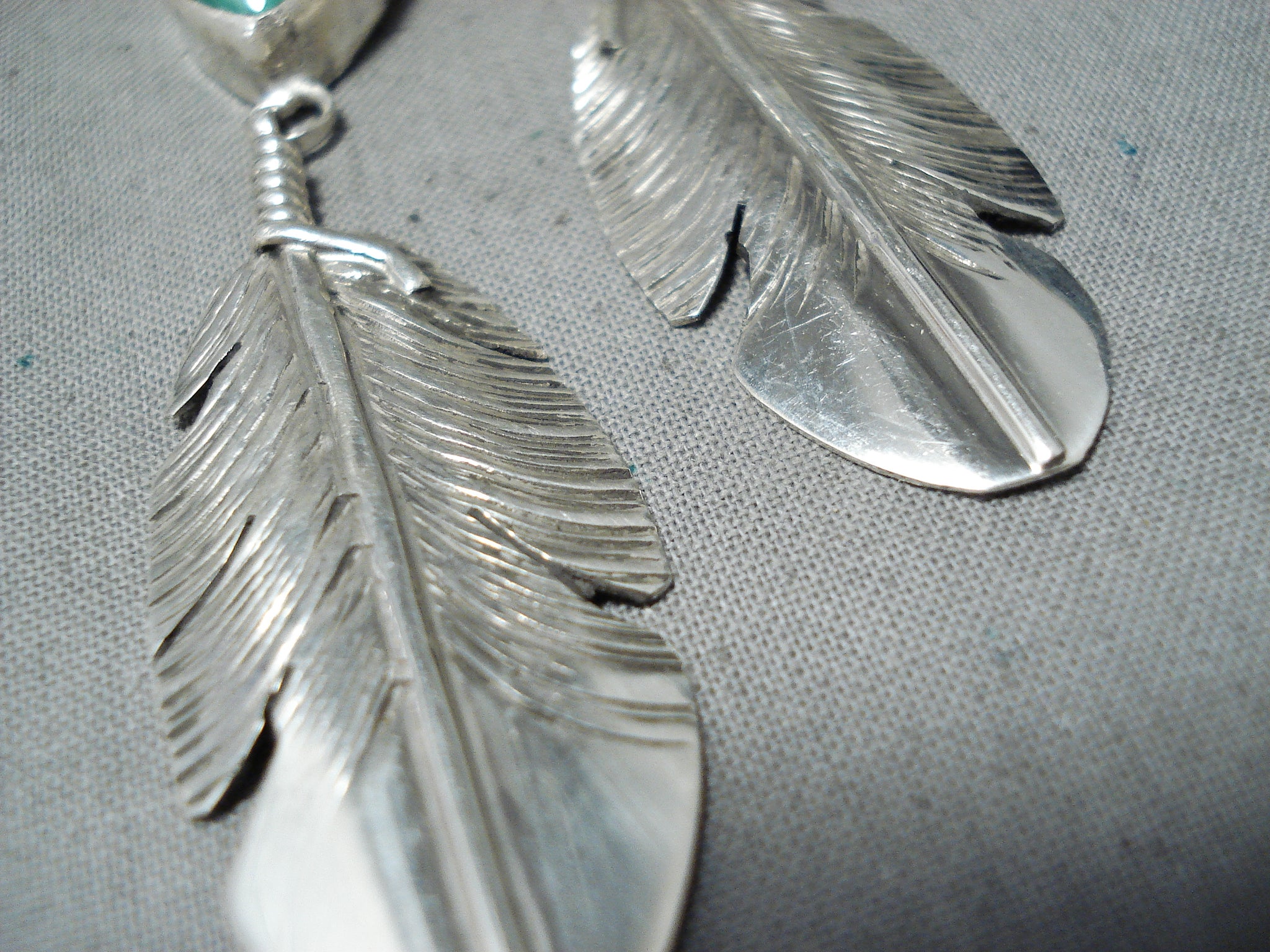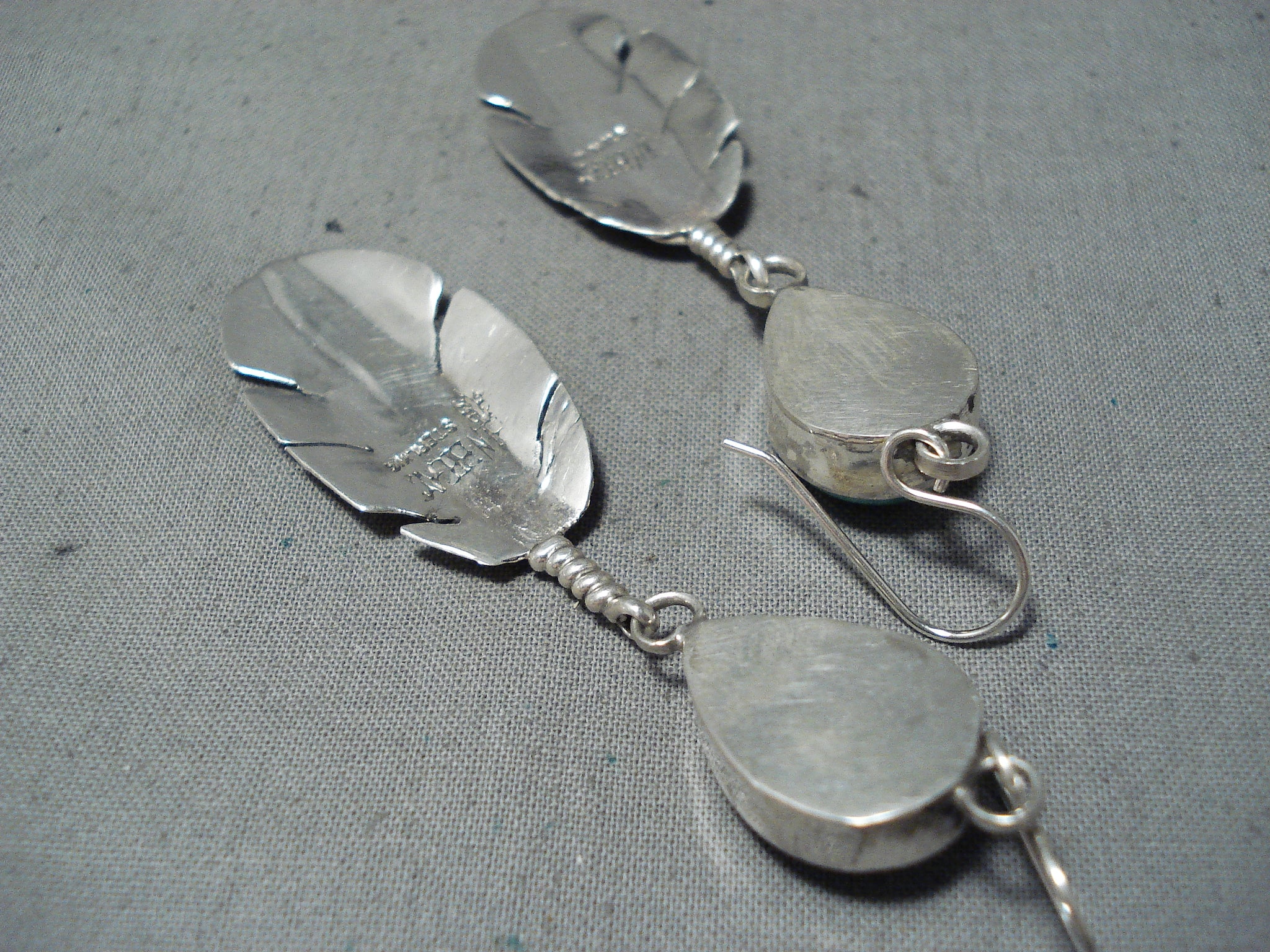 Awesome Navajo Native American Malachite Sterling Silver Feather Earrings