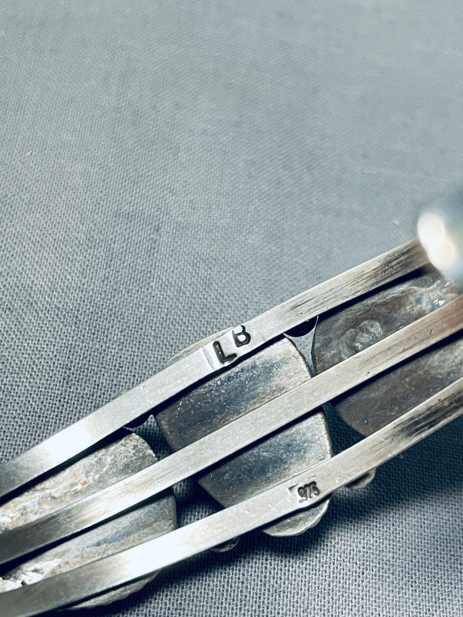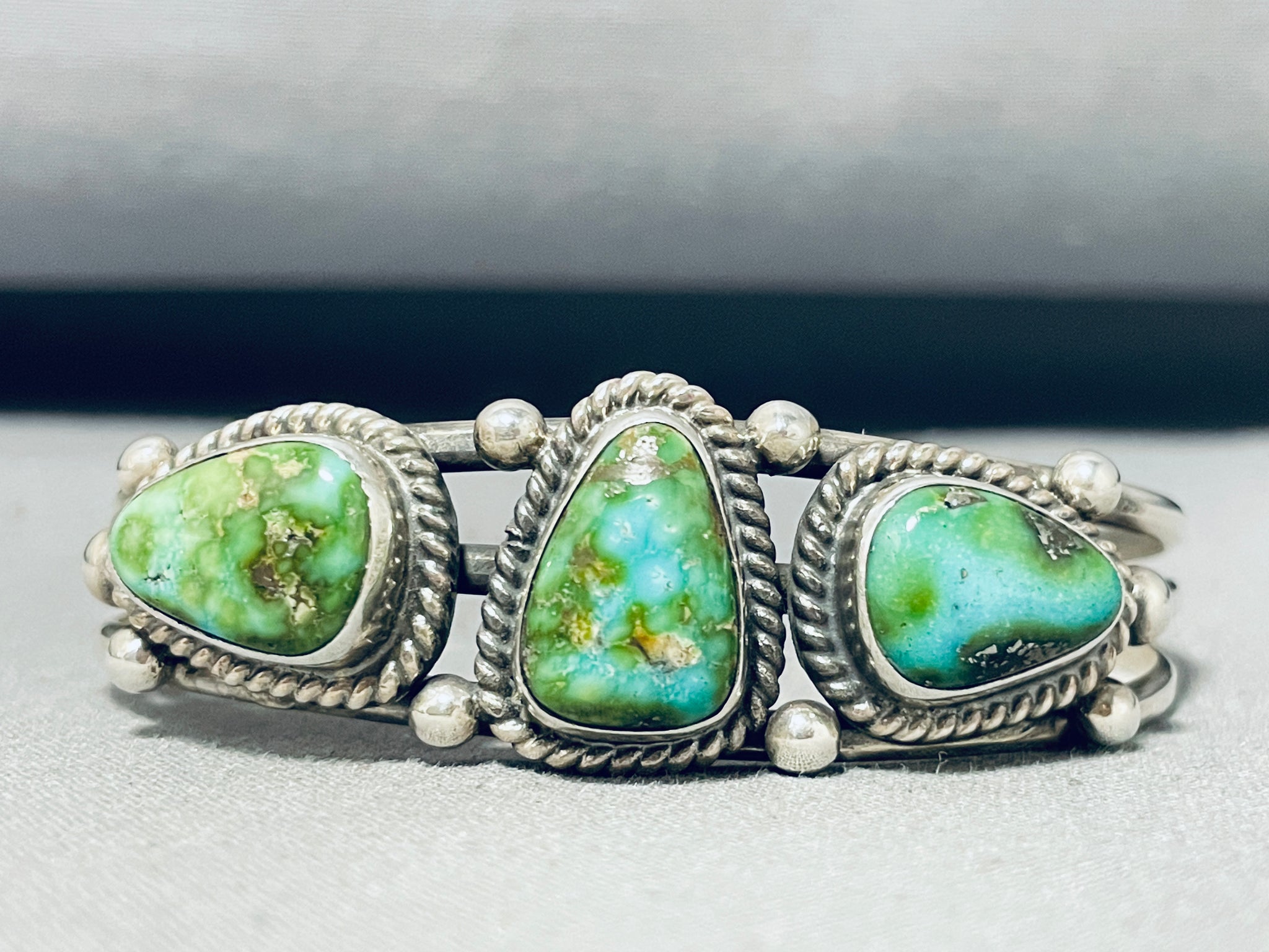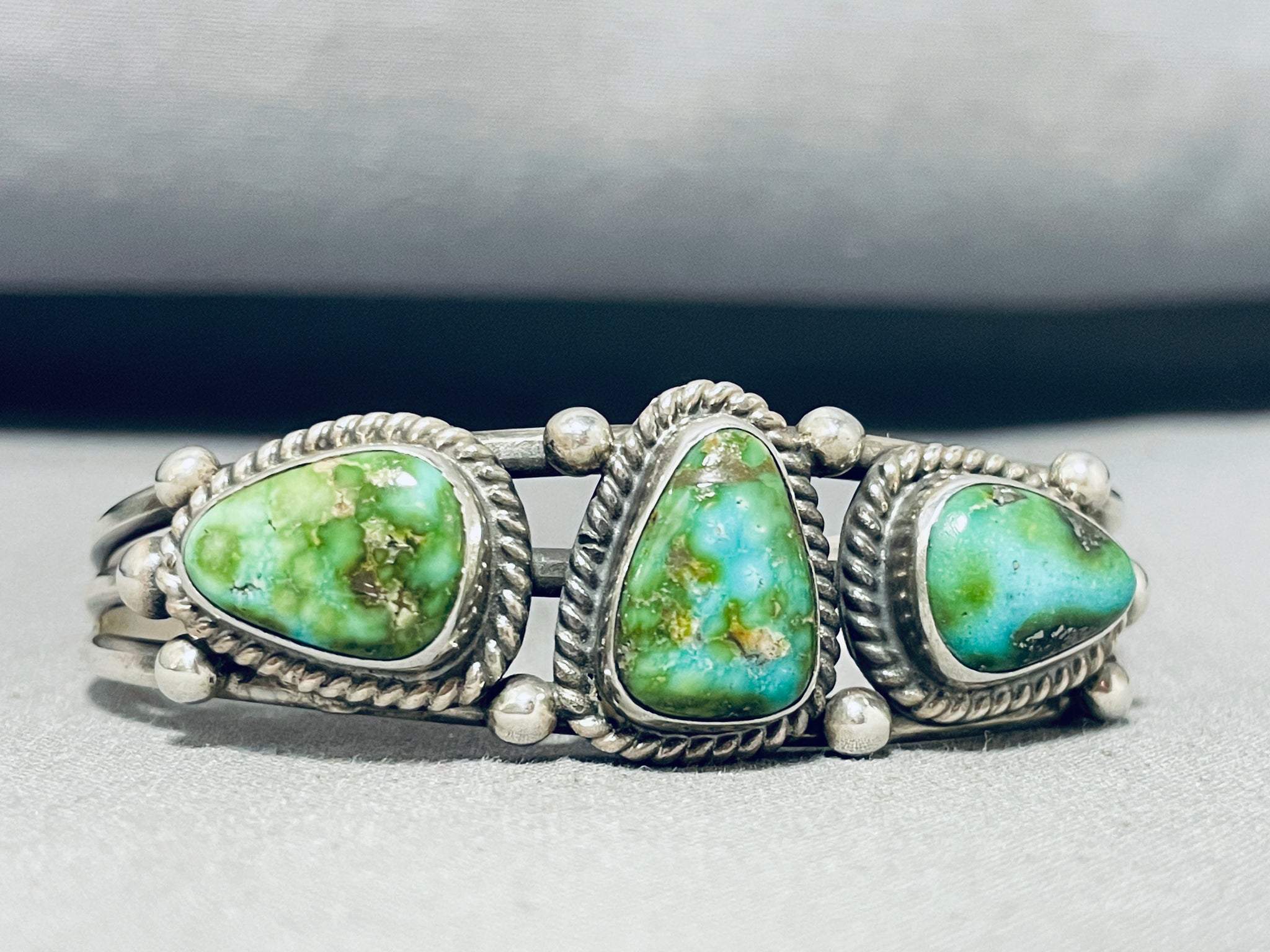 Awesome Vintage Native American Navajo 3 Carico Lake Turquoise Sterling Silver Bracelet