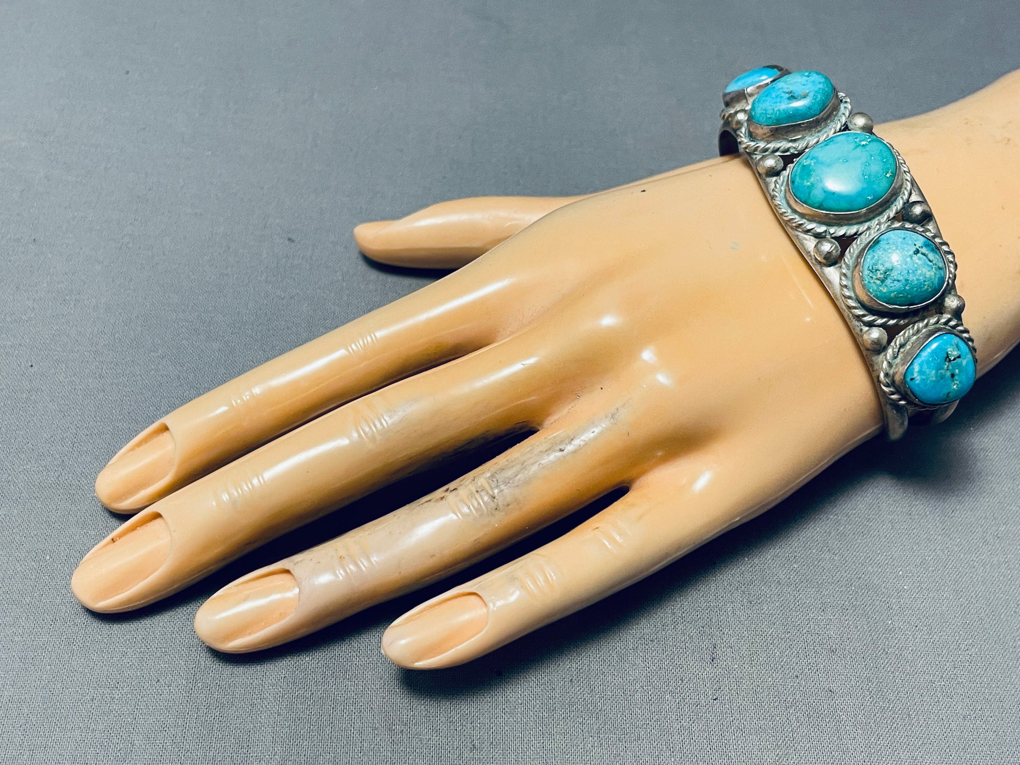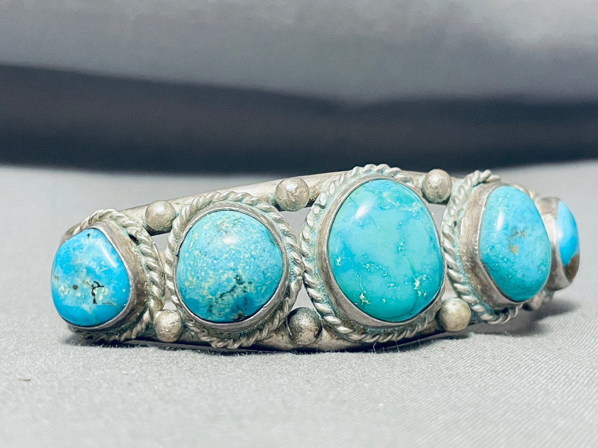 Awesome Vintage Native American Navajo 5 Blue Green Turquoise Sterling Silver Bracelet