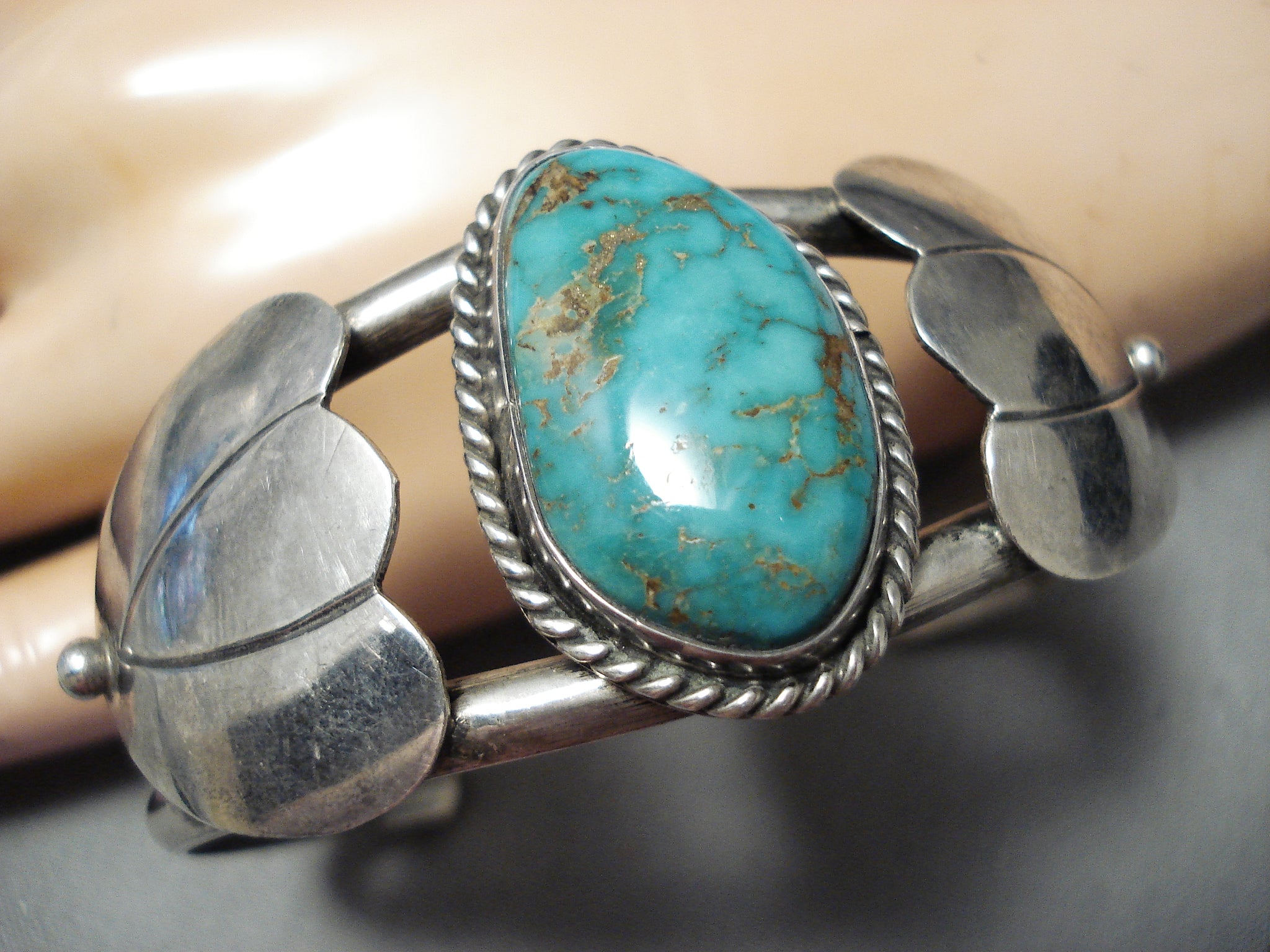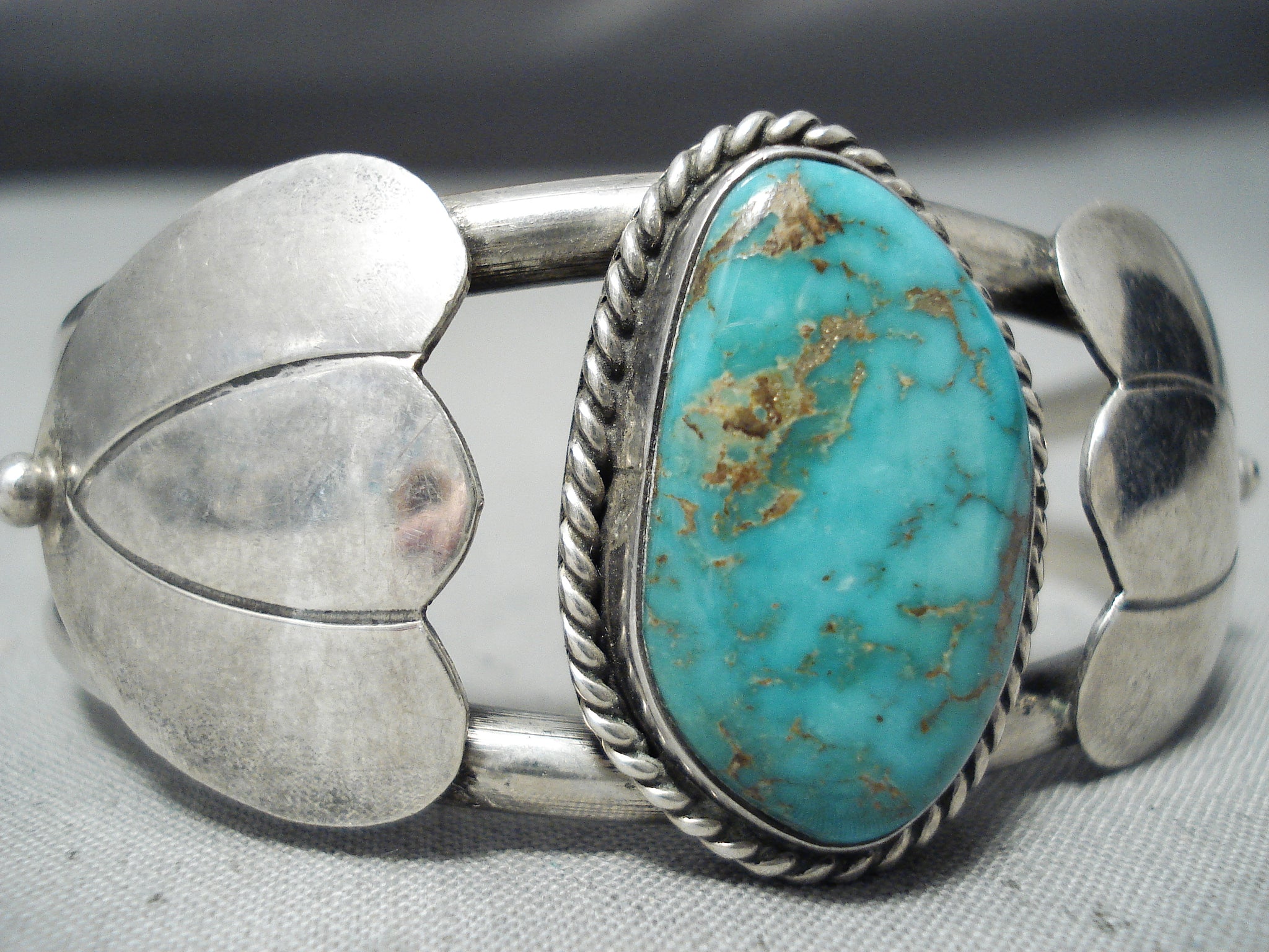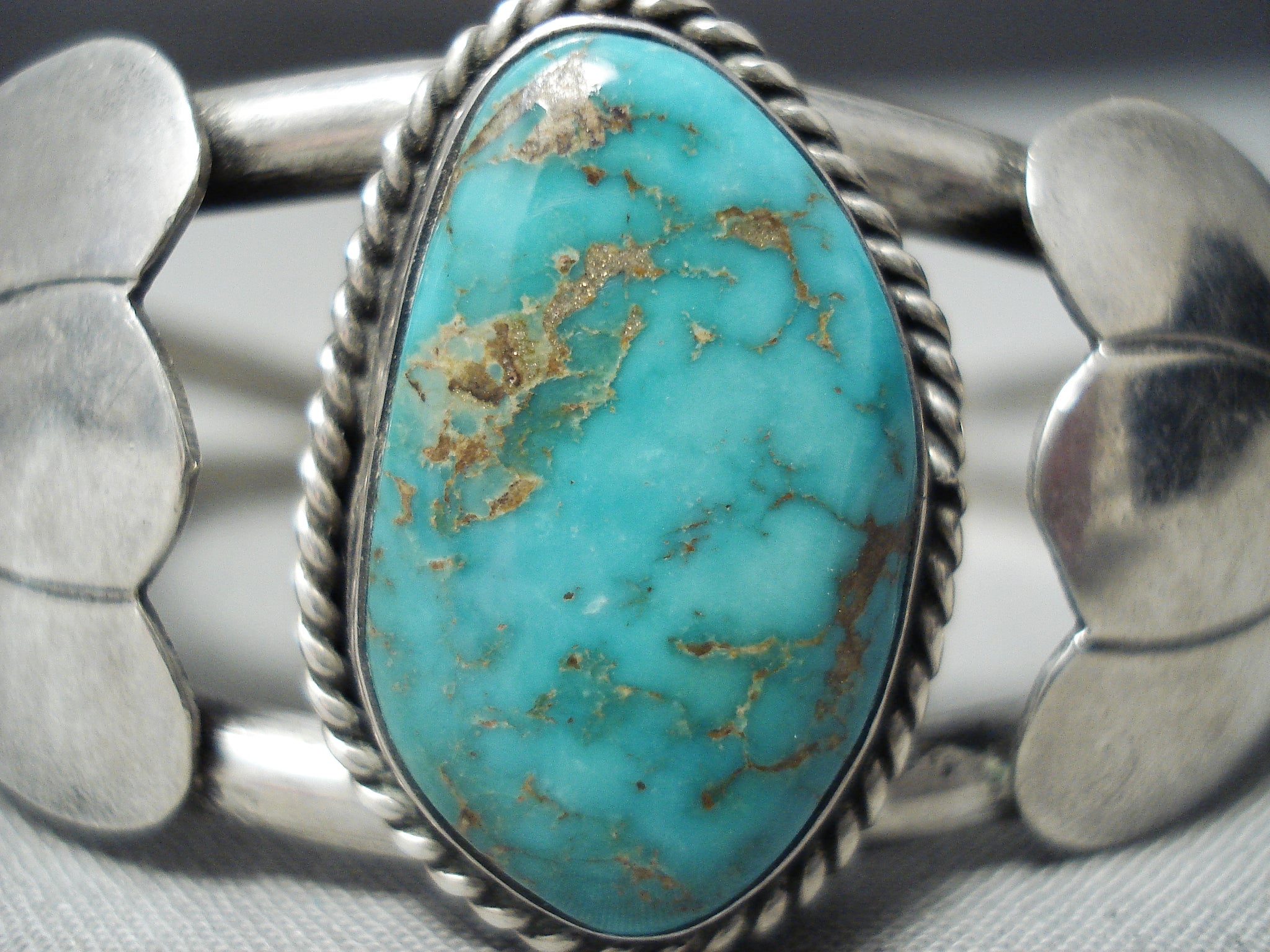 Awesome Vintage Native American Navajo Carico Lake Turquoise Sterling Silver Bracelet