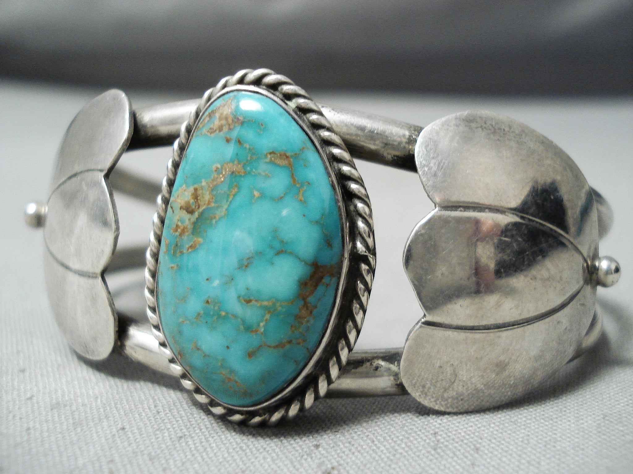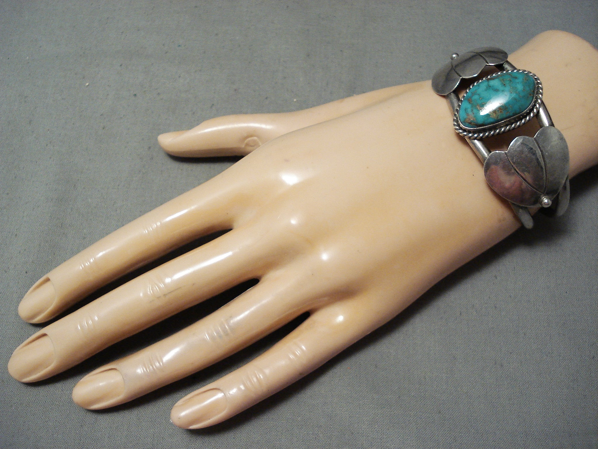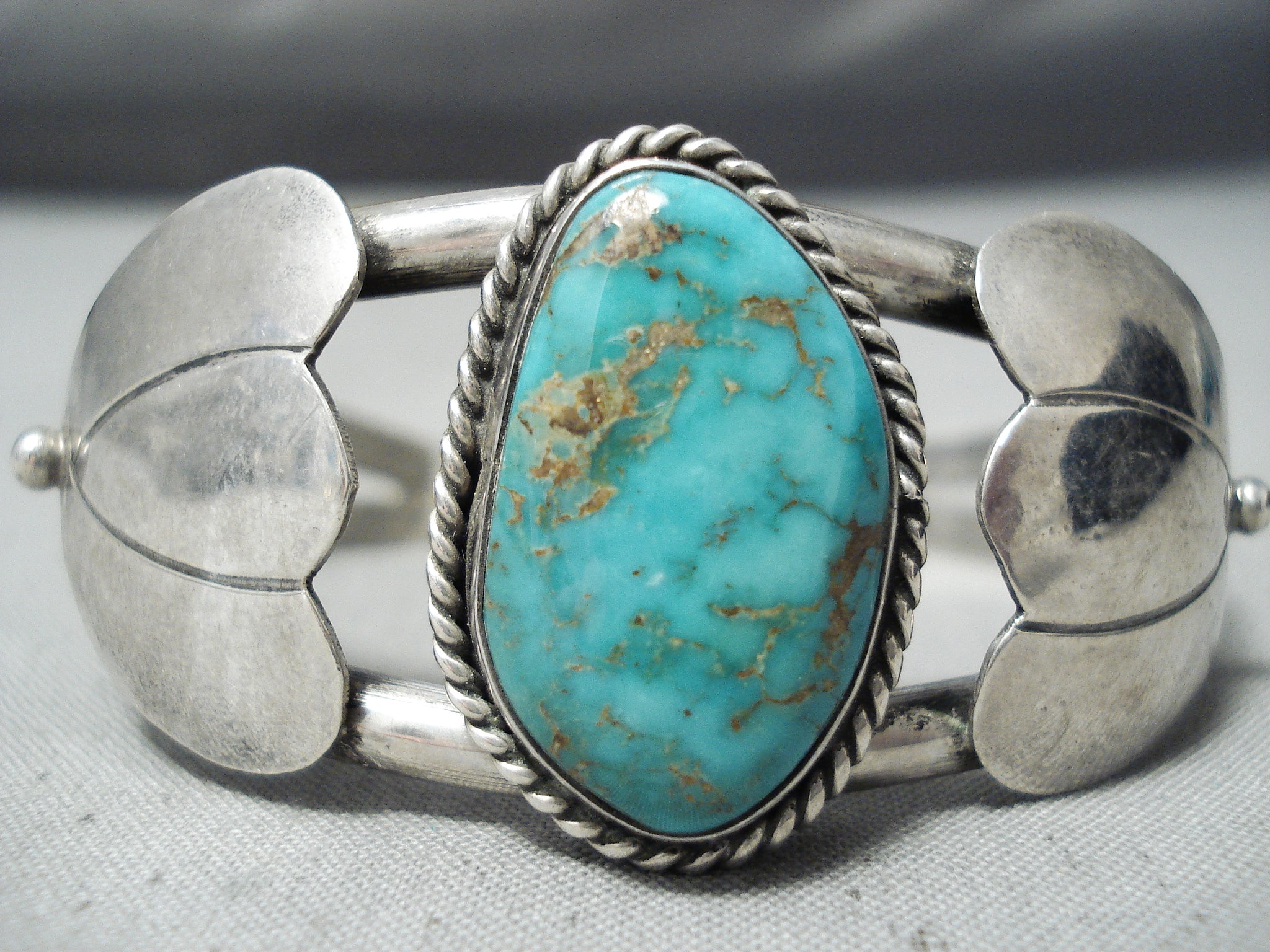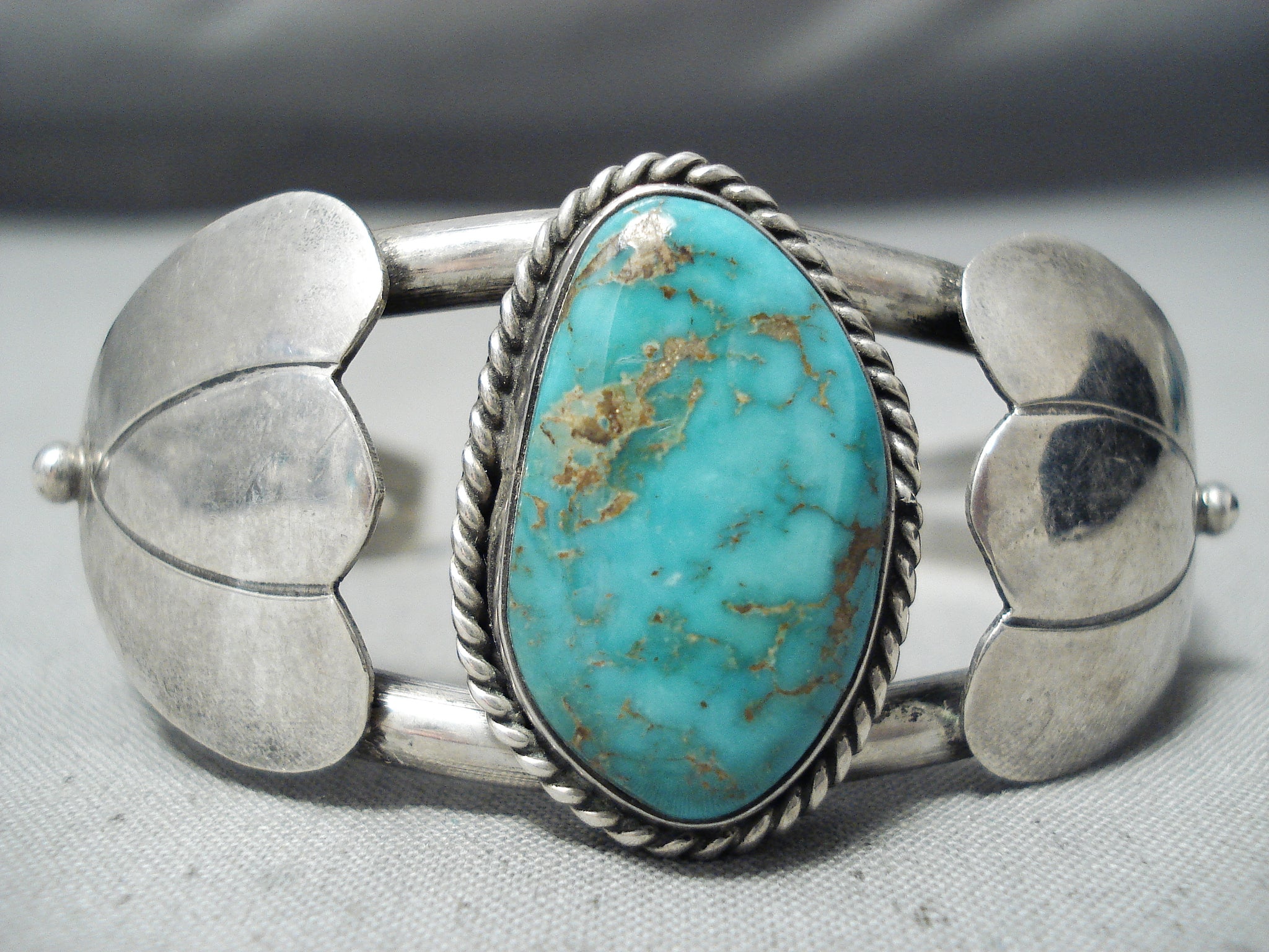 Awesome Vintage Native American Navajo Carico Lake Turquoise Sterling Silver Bracelet