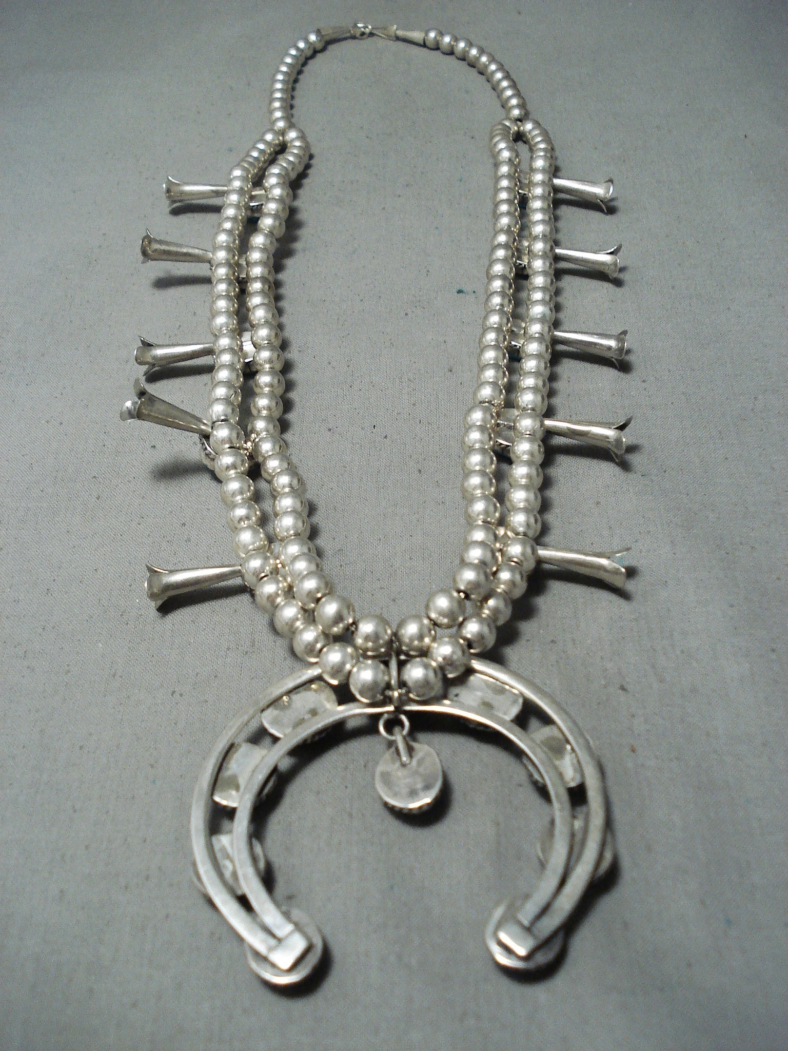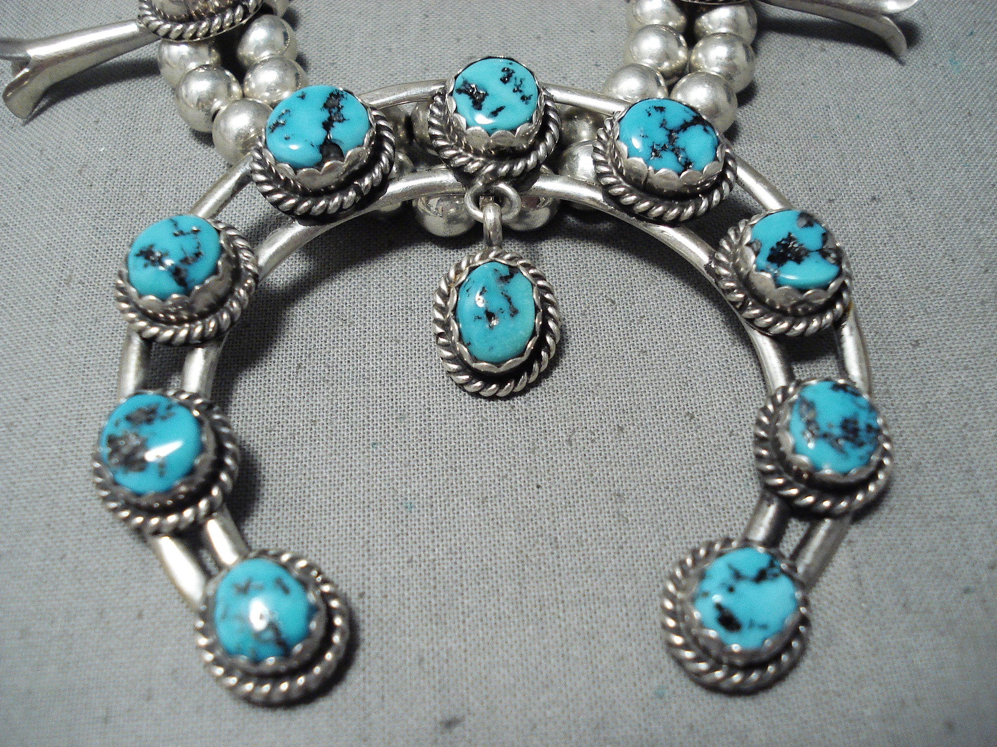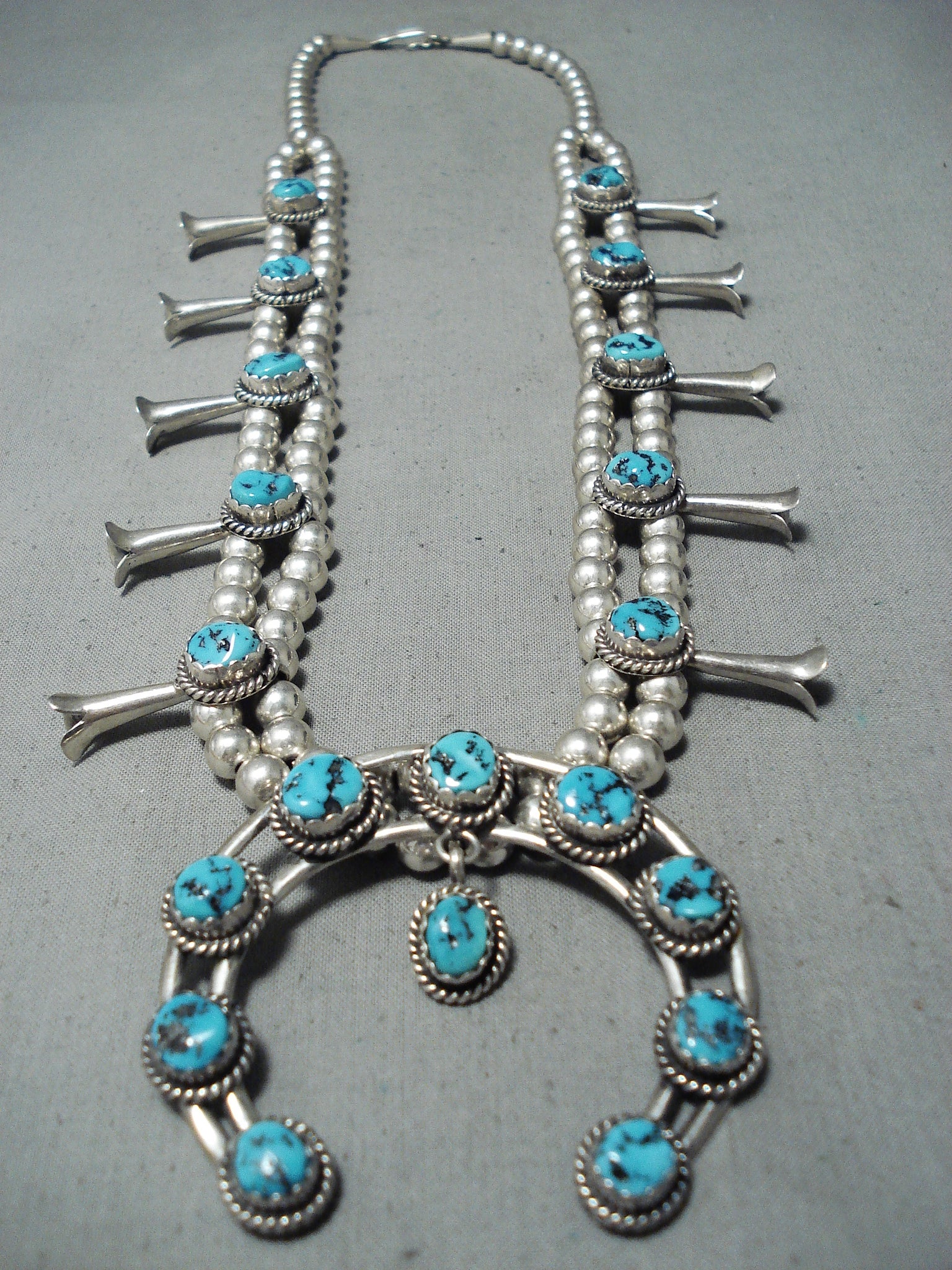 Awesome Vintage Native American Navajo Sleeping Beauty Turquoise Sterling Silver Squash Necklace