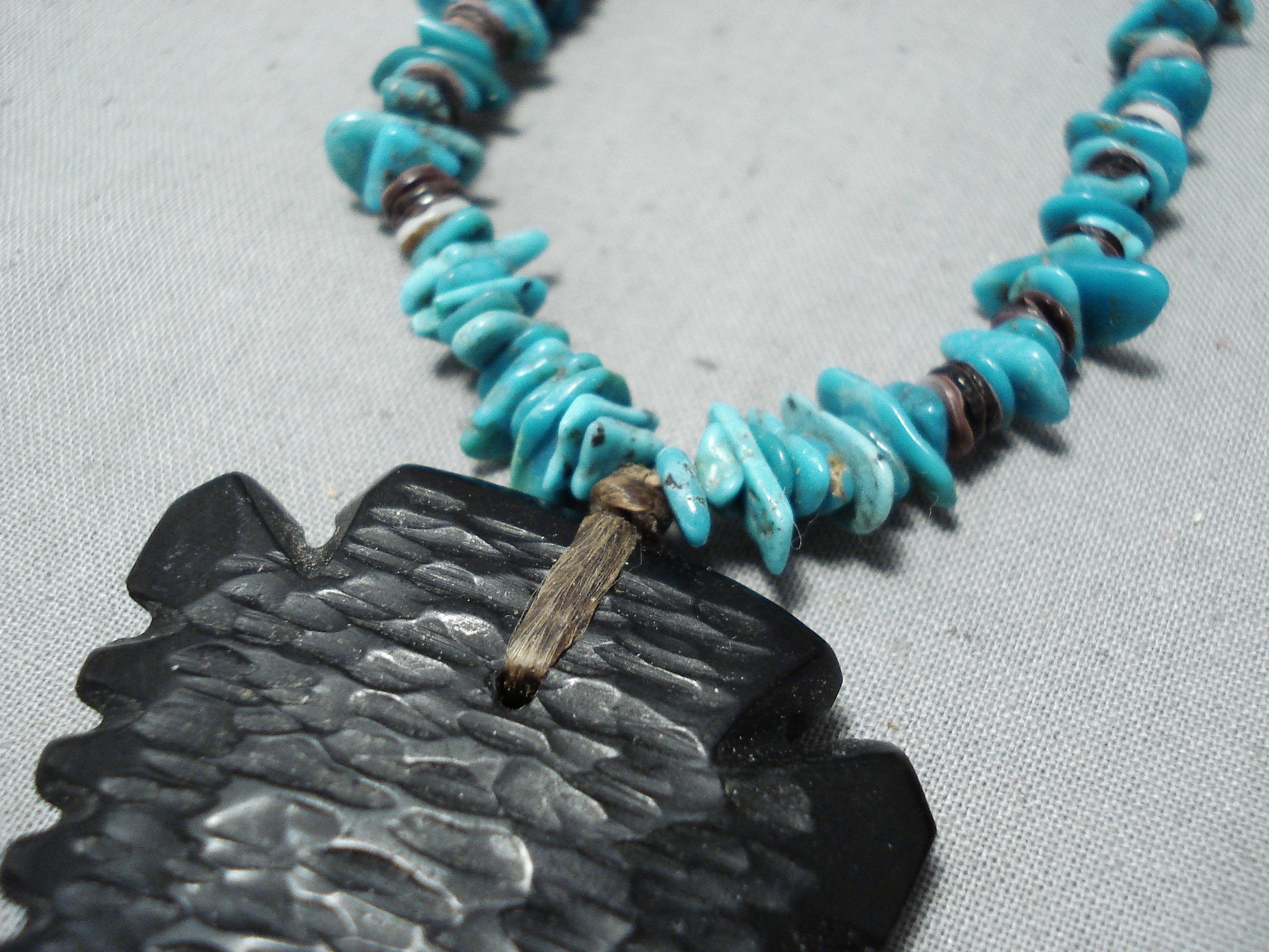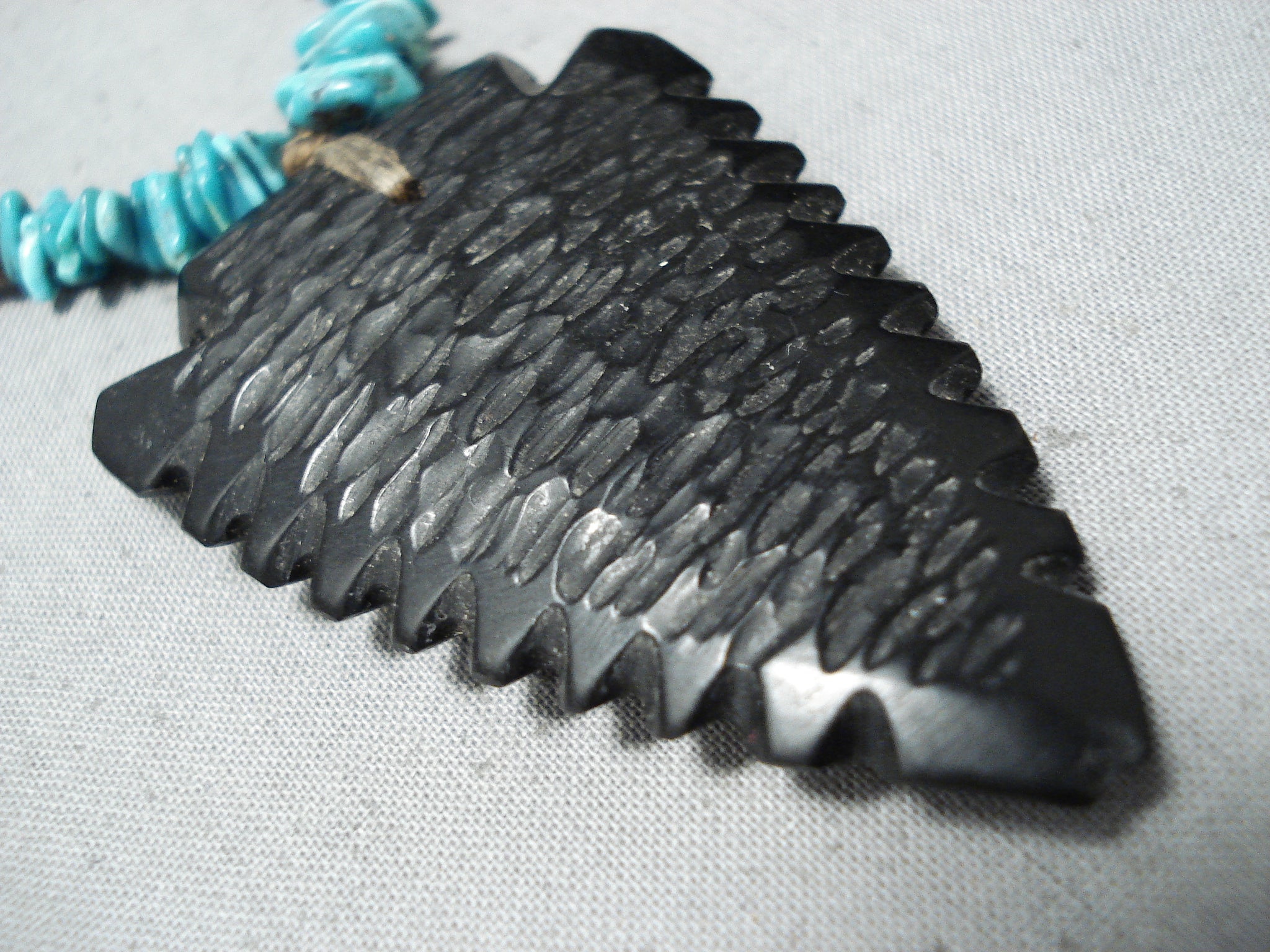 Awesome Vintage Native American Navajo Turquoise Arrowhead Sterling Silver Necklace