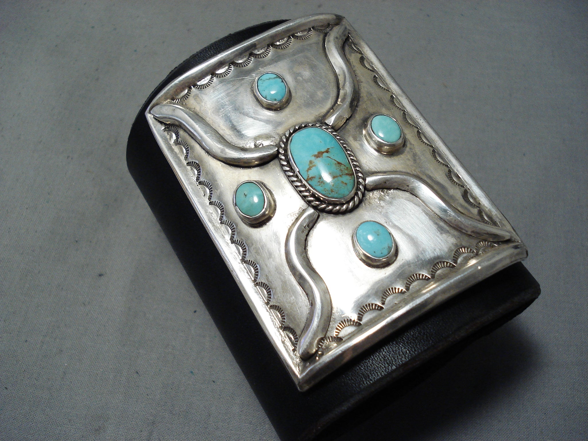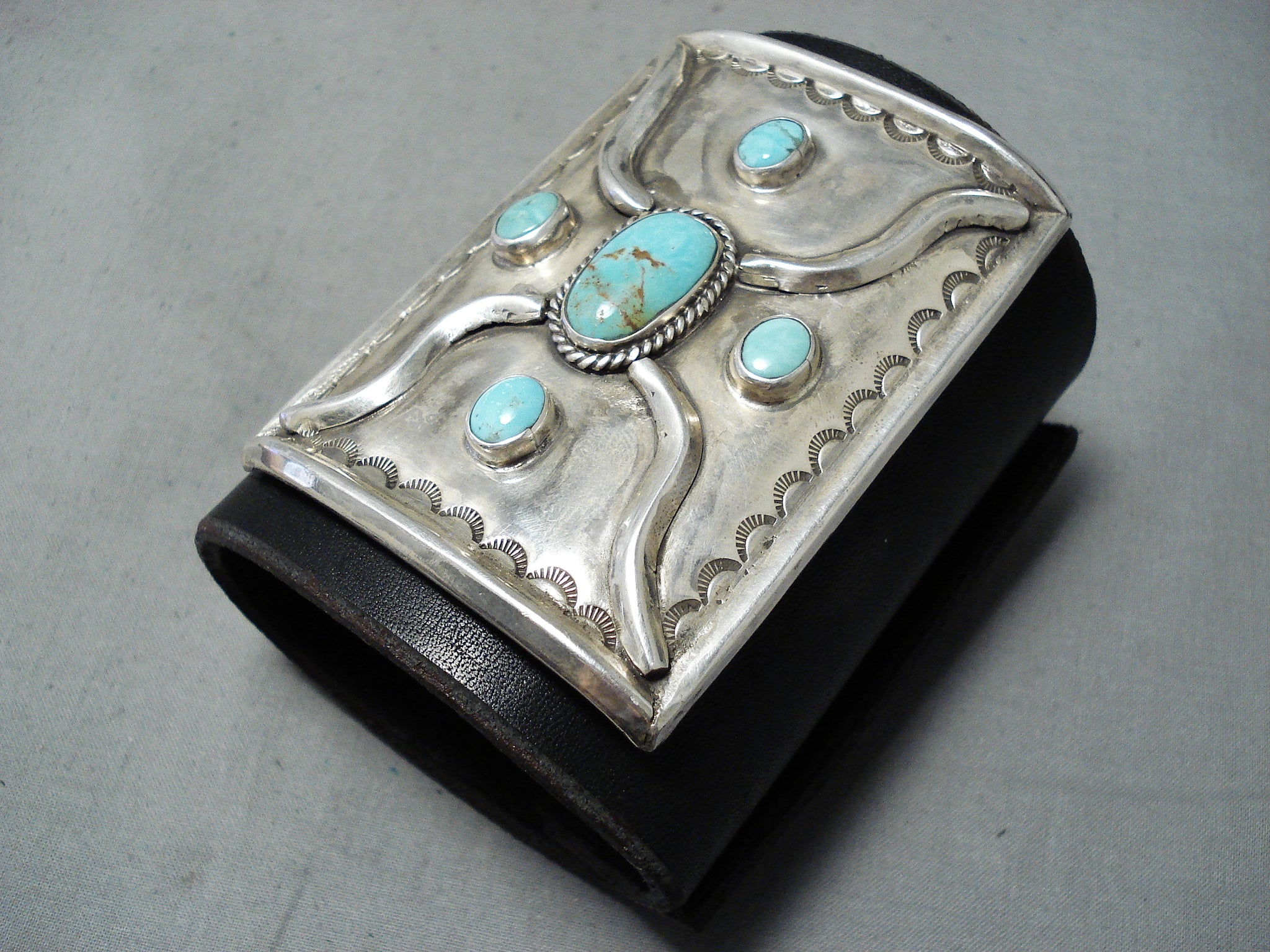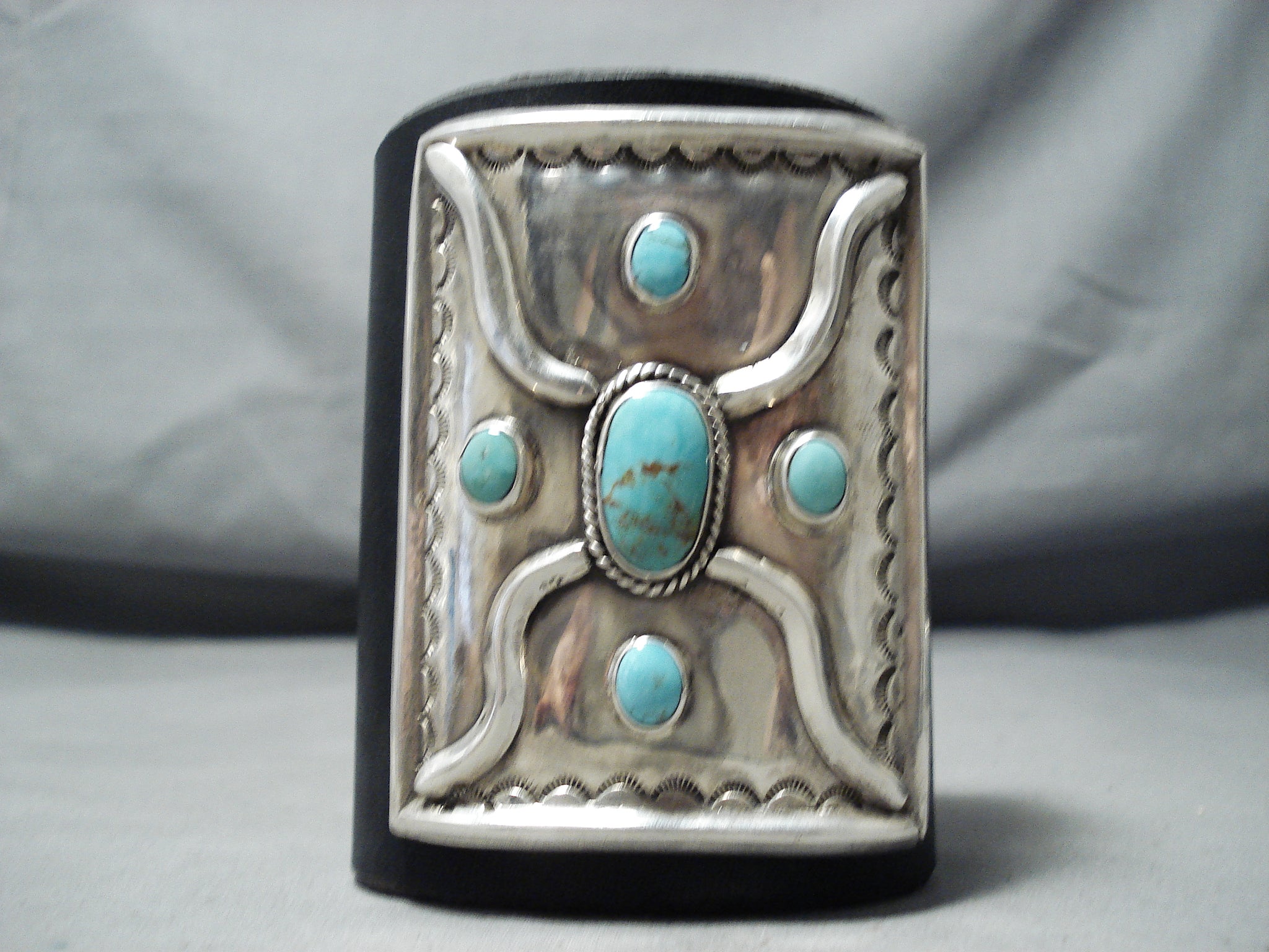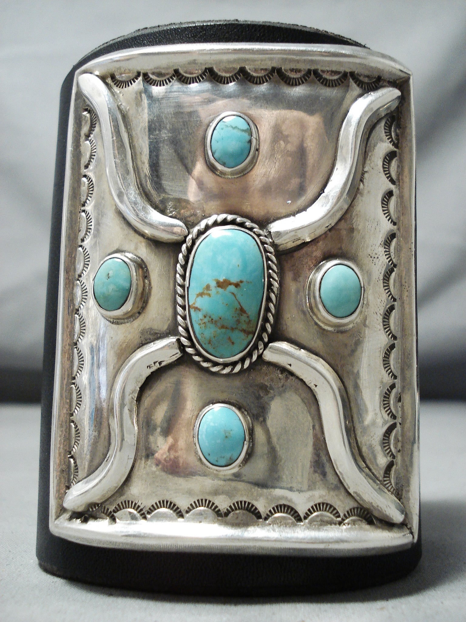 Awesome Vintage Native American Navajo Turquoise Sterling Silver Repousse Bowguard