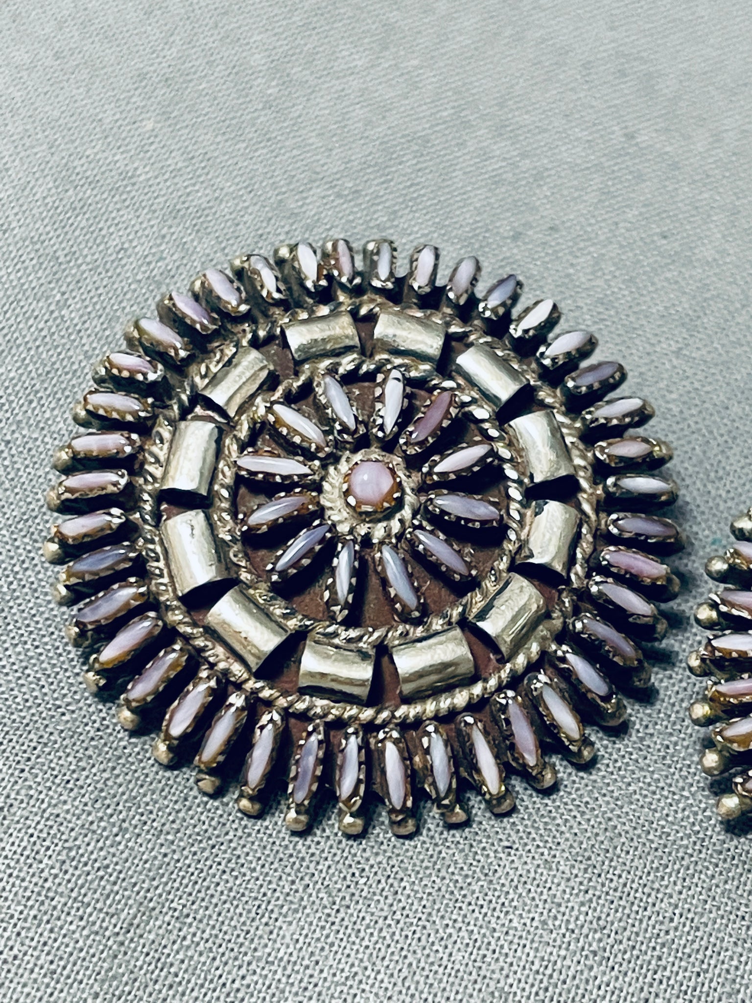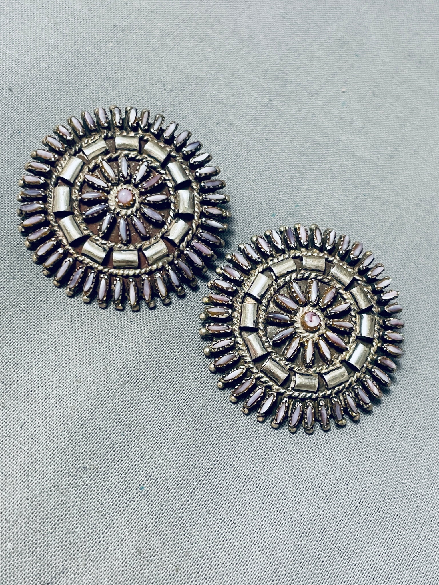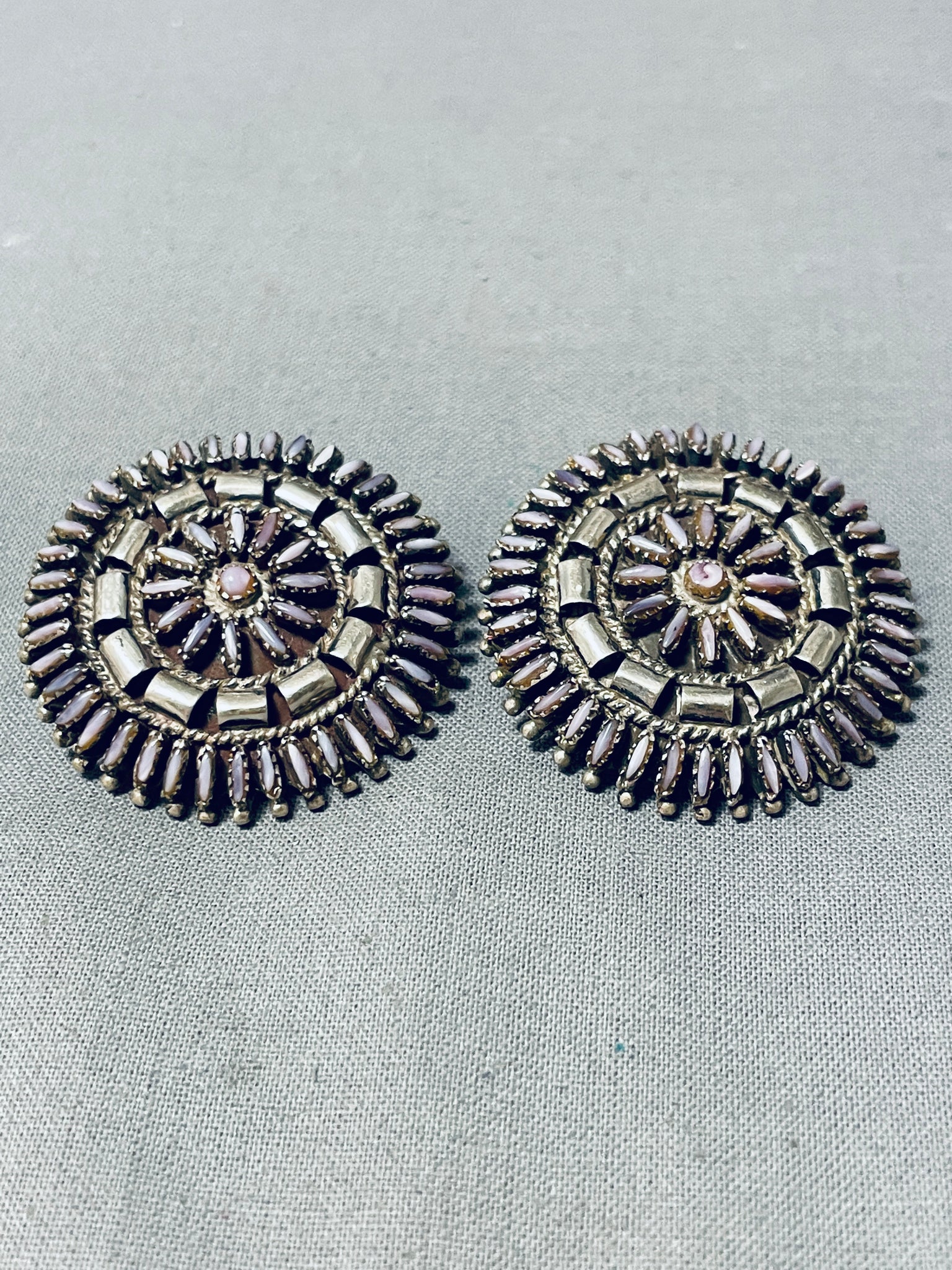 Awesome Vintage Native American Zuni Purple Petit Point Cluster Sterling Silver Earrings