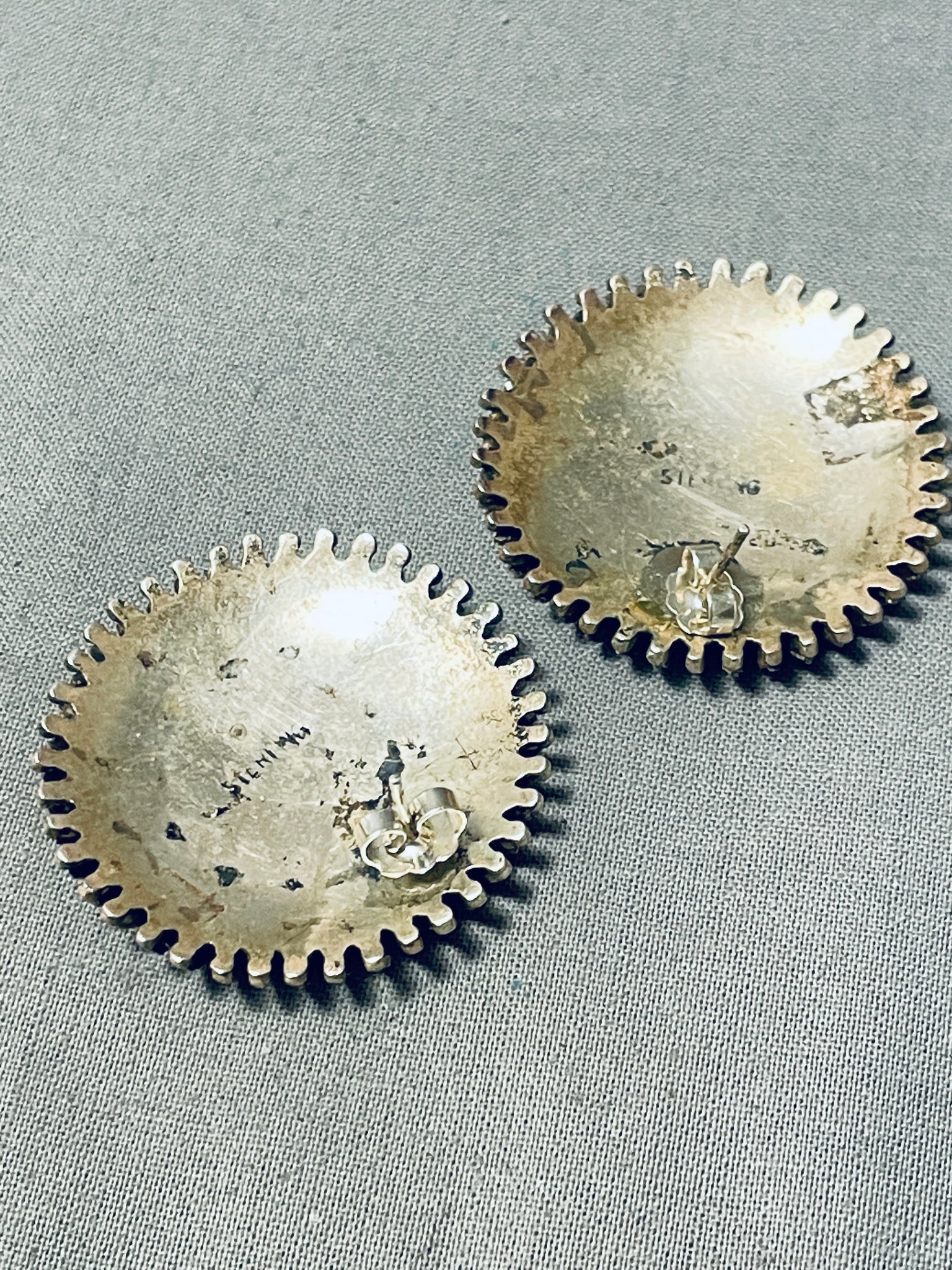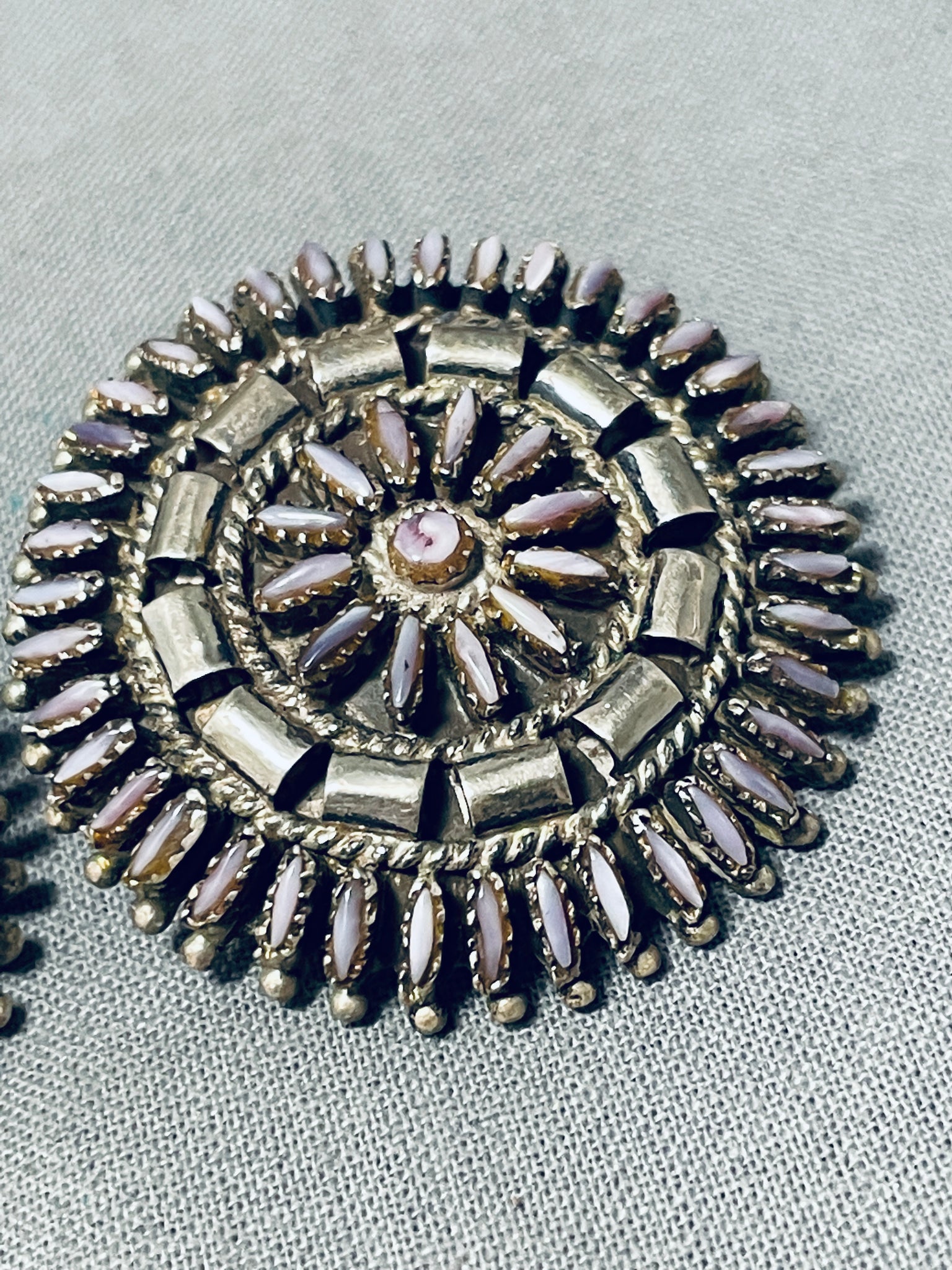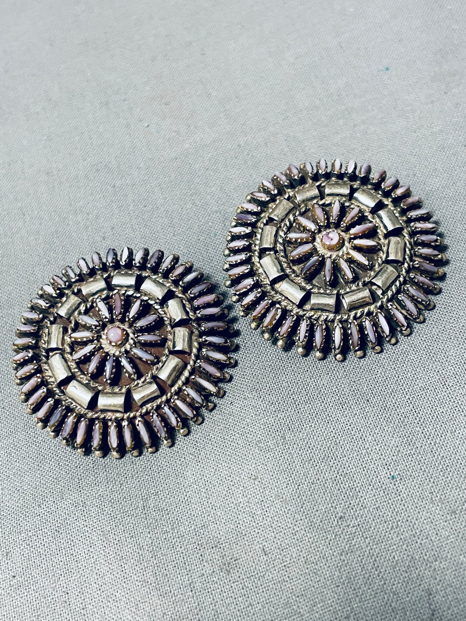 Awesome Vintage Native American Zuni Purple Petit Point Cluster Sterling Silver Earrings