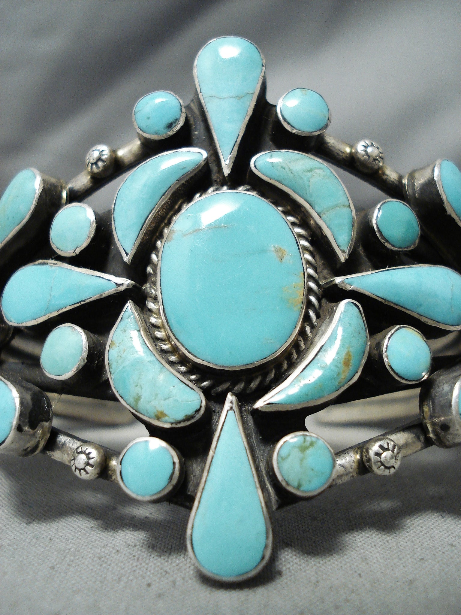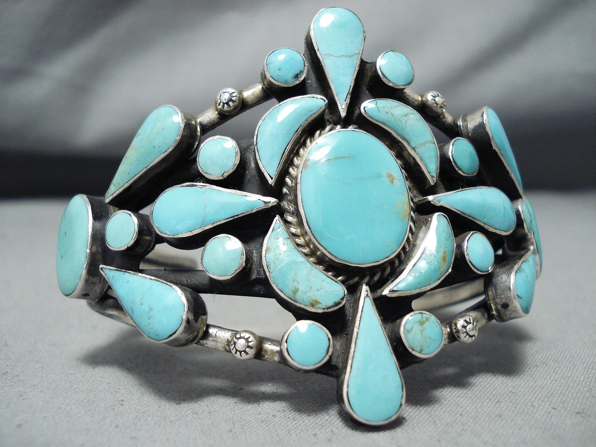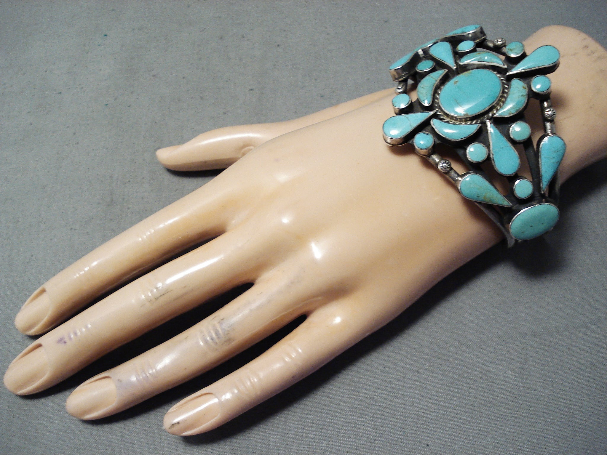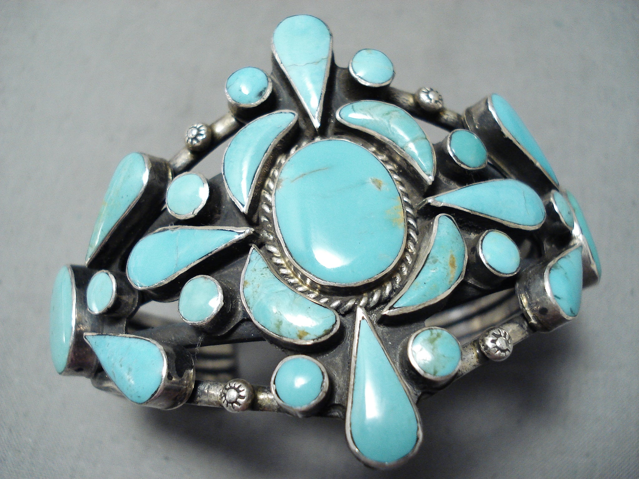 Awesome Vintage Navajo Native American Turquoise Sterling Silver Bracelet Old