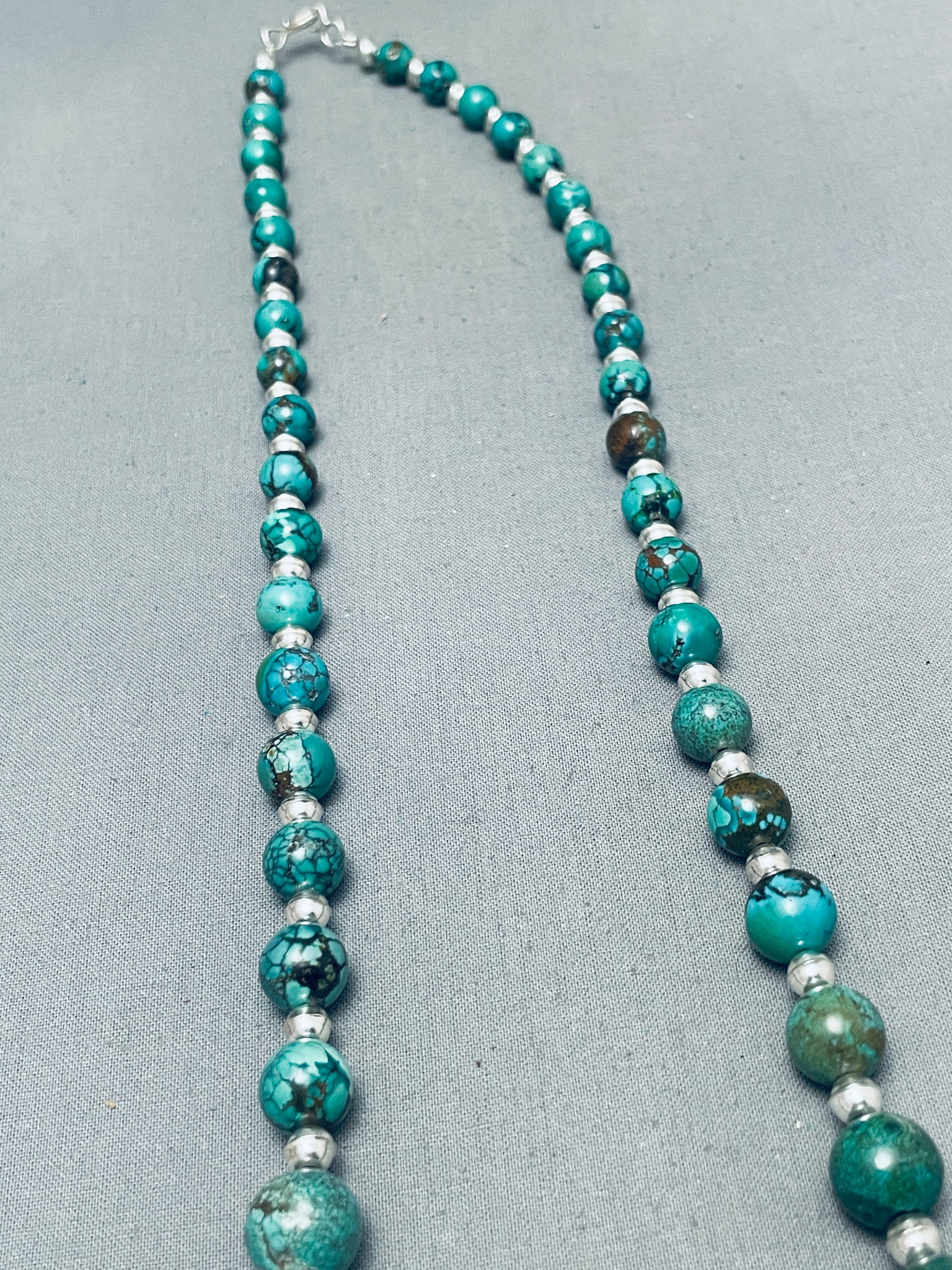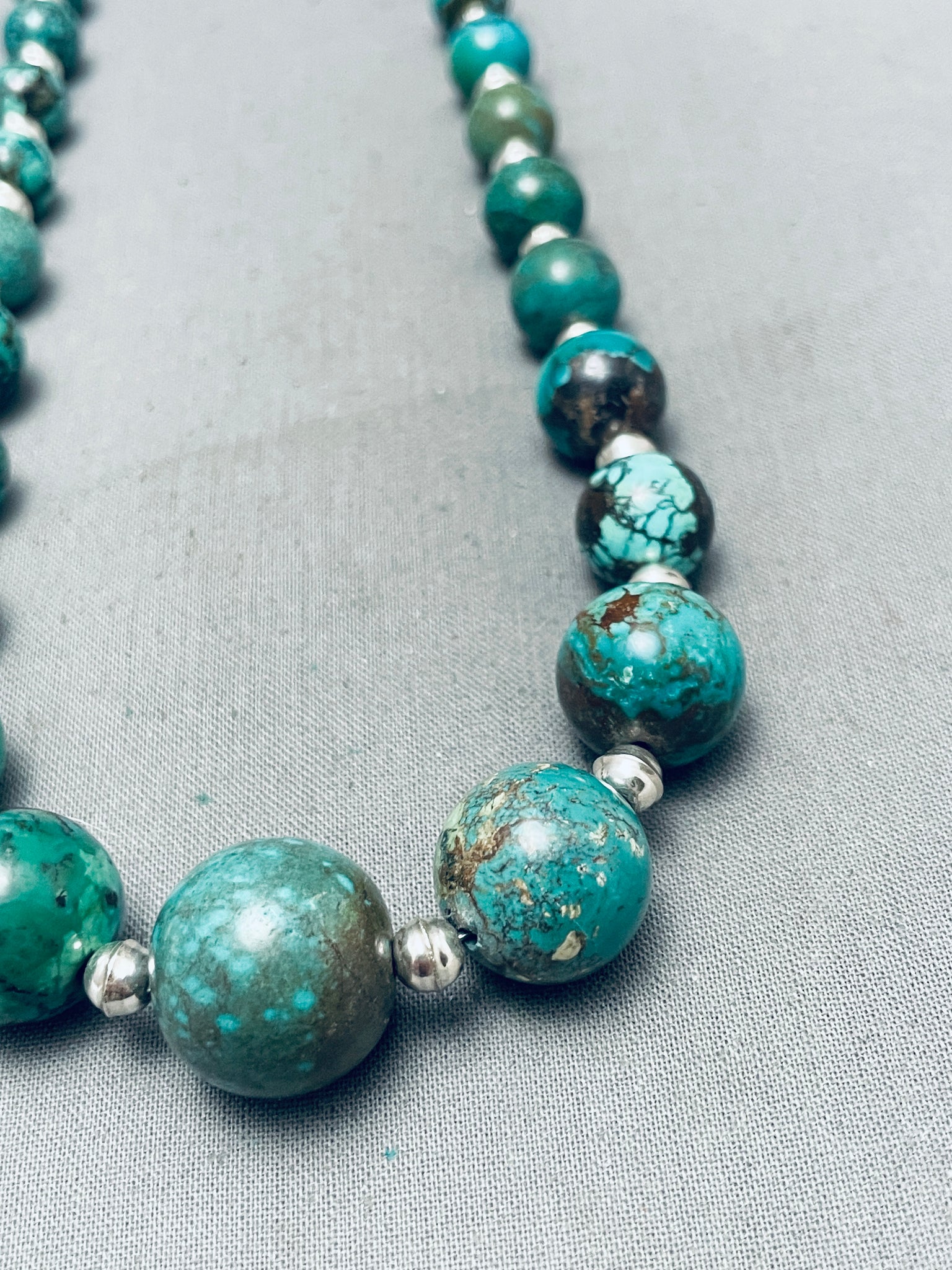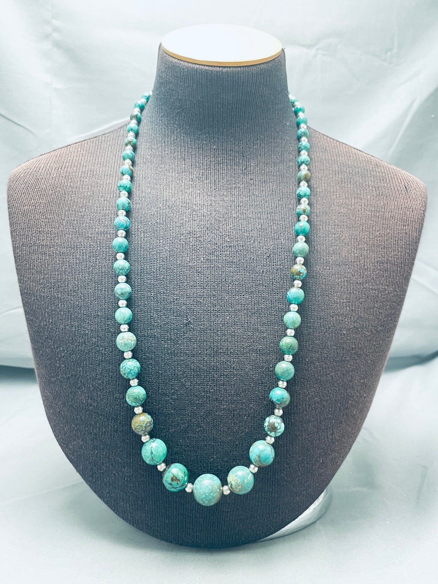 Balls Of Turquoise Vintage Native American Navajo Sterling Silver Necklace