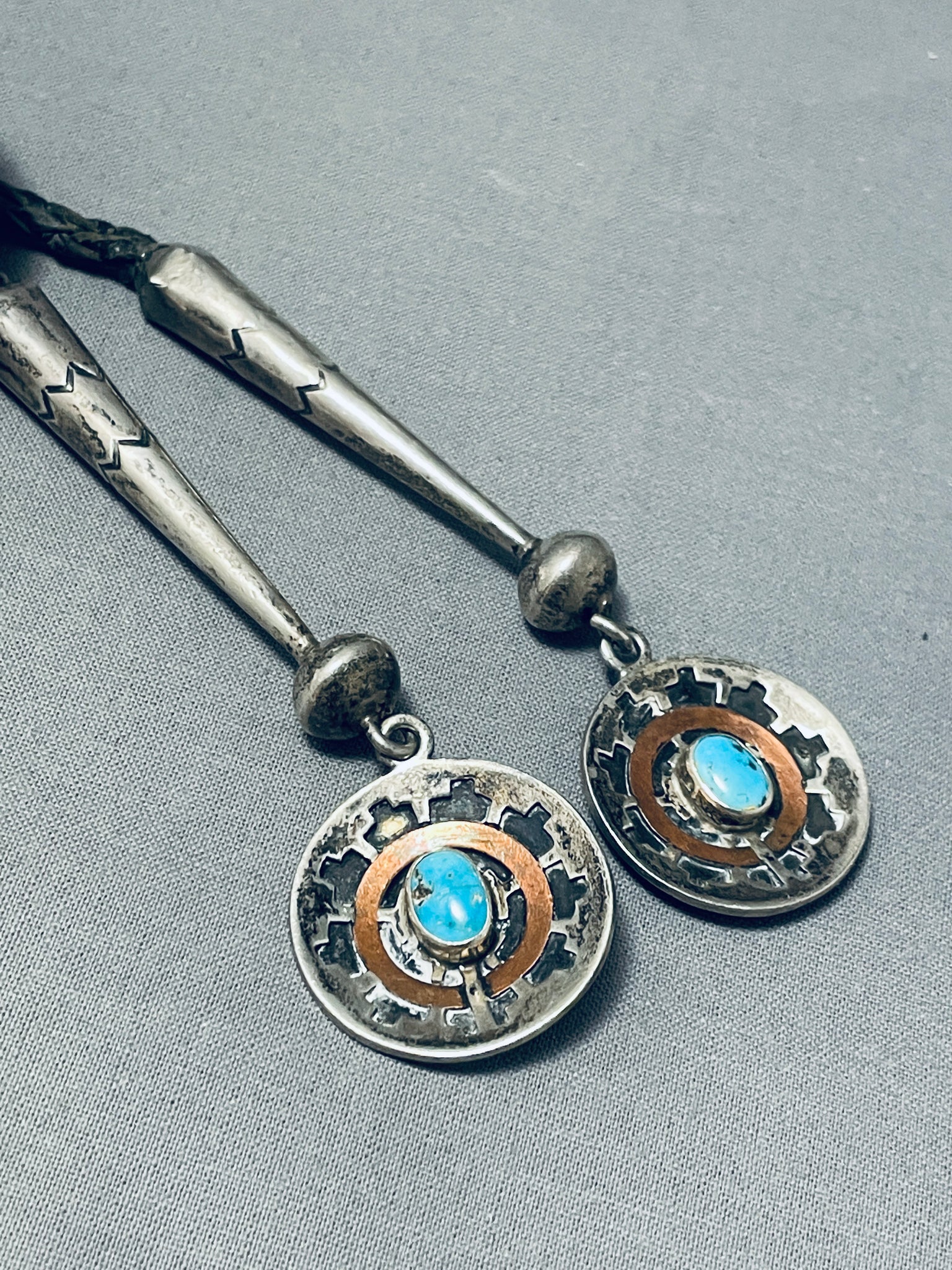Basket!! Vintage Native American Navajo Turquoise Sterling Silver Wedding Basket Bolo