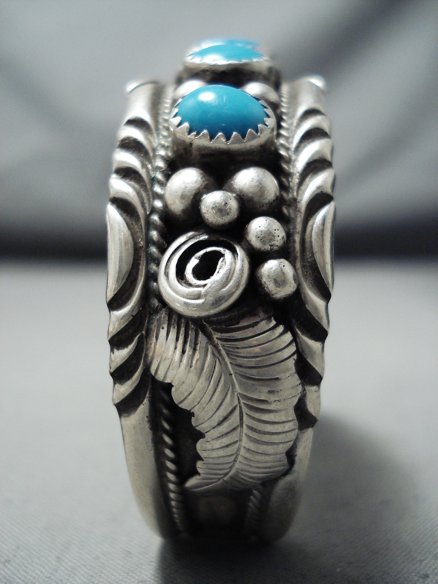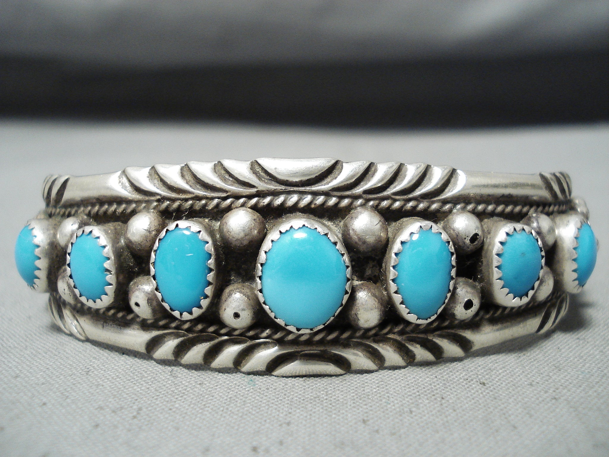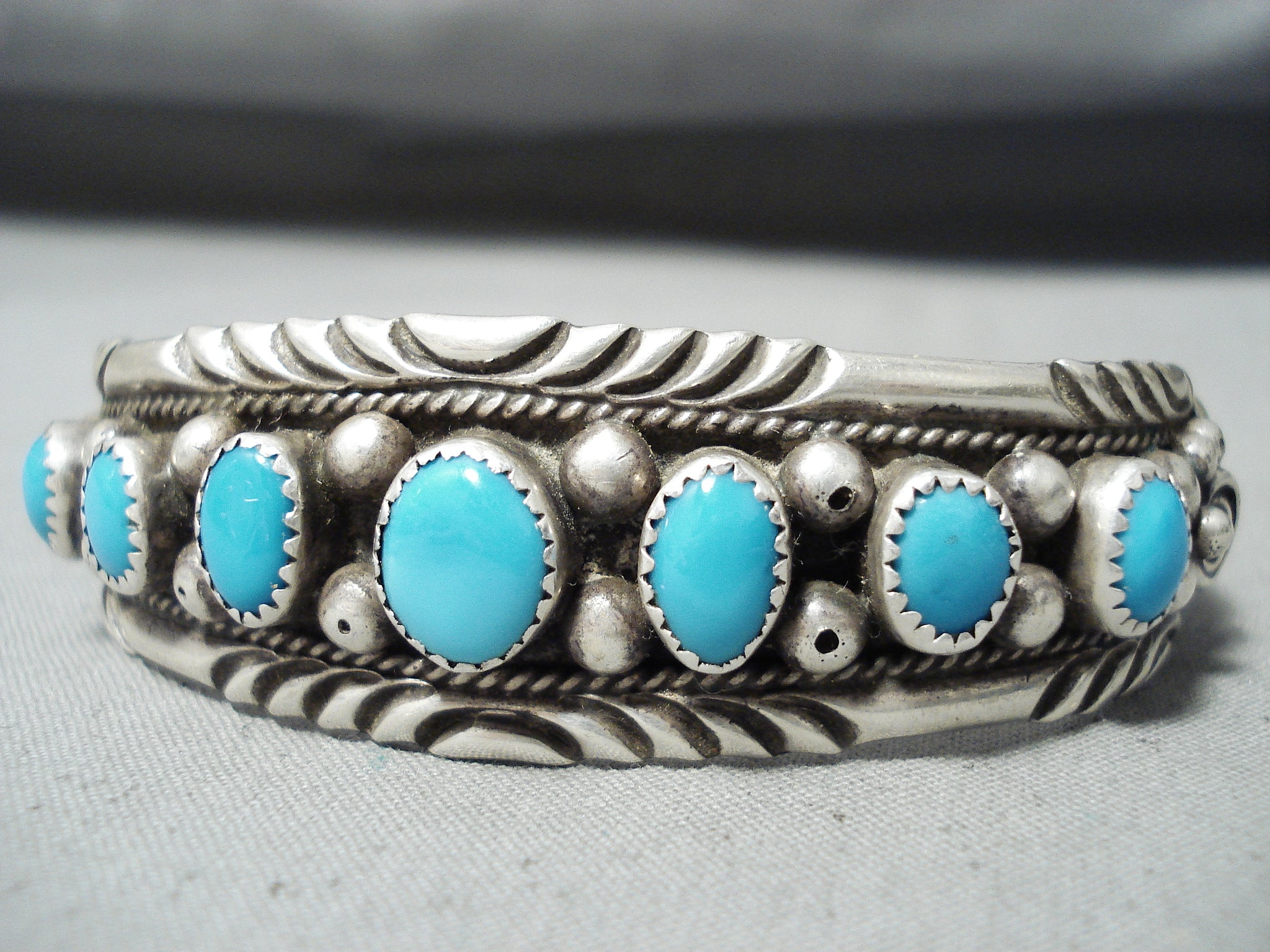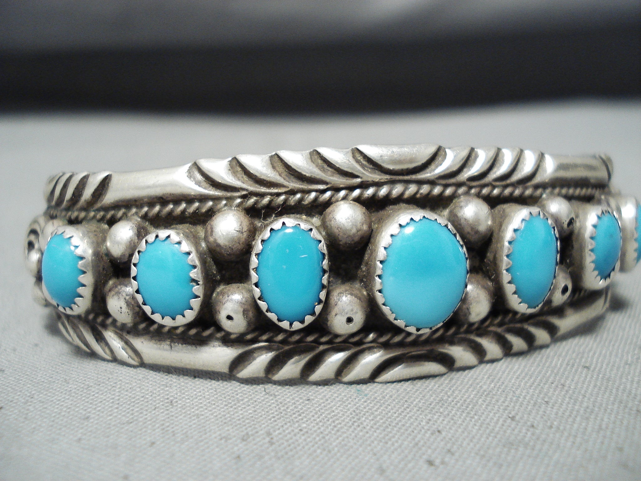 Bea Nez Vintage Native American Navajo Sleeping Beauty Turquoise Sterling Silver Bracelet Old