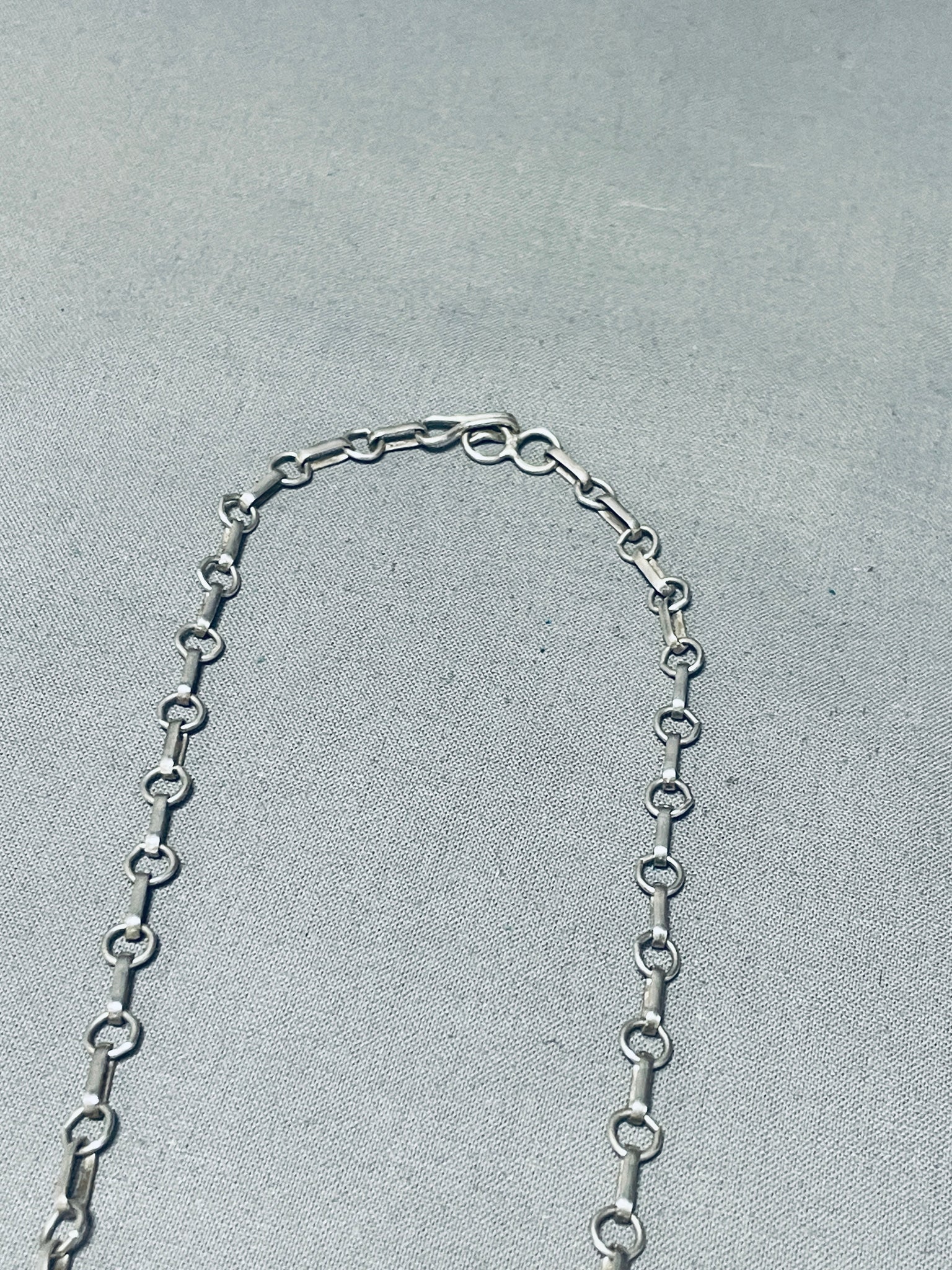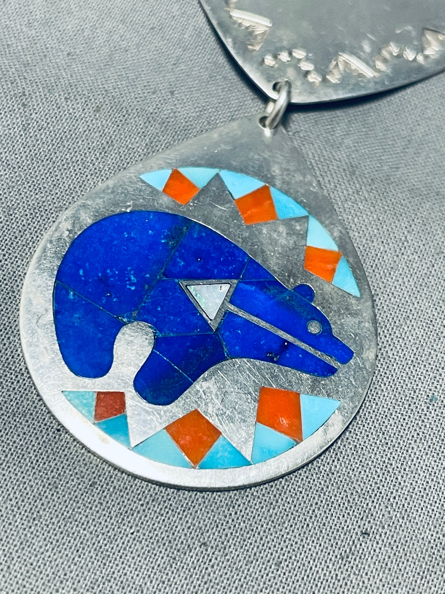 Bear Of Lapis Vintage Native American Zuni Turquoise Inlay Sterling Silver Necklace