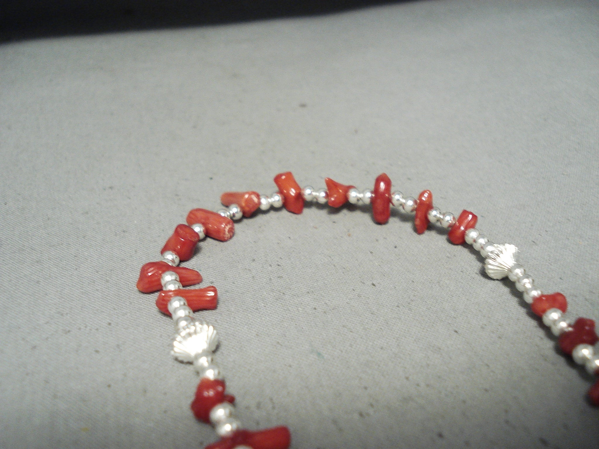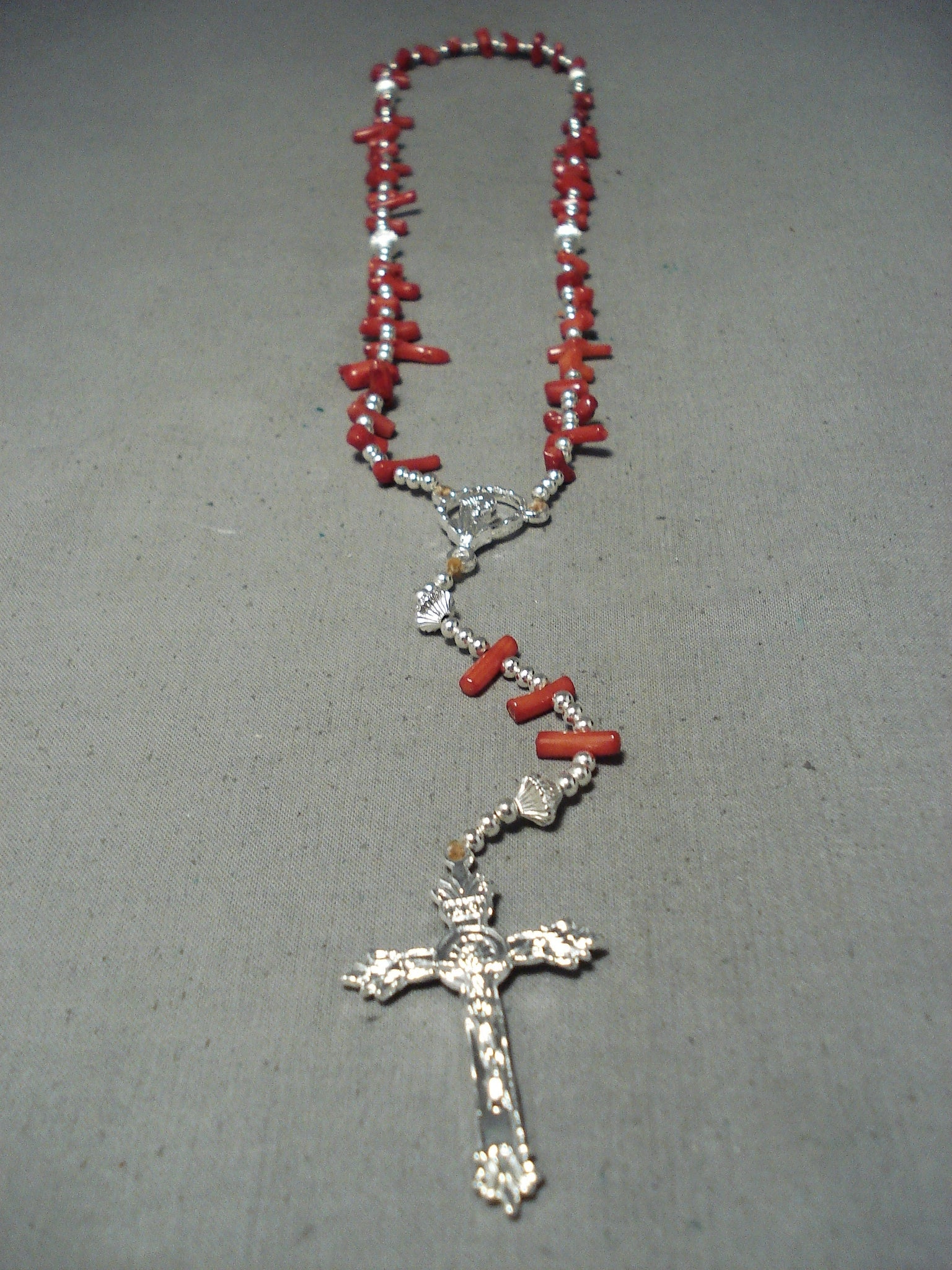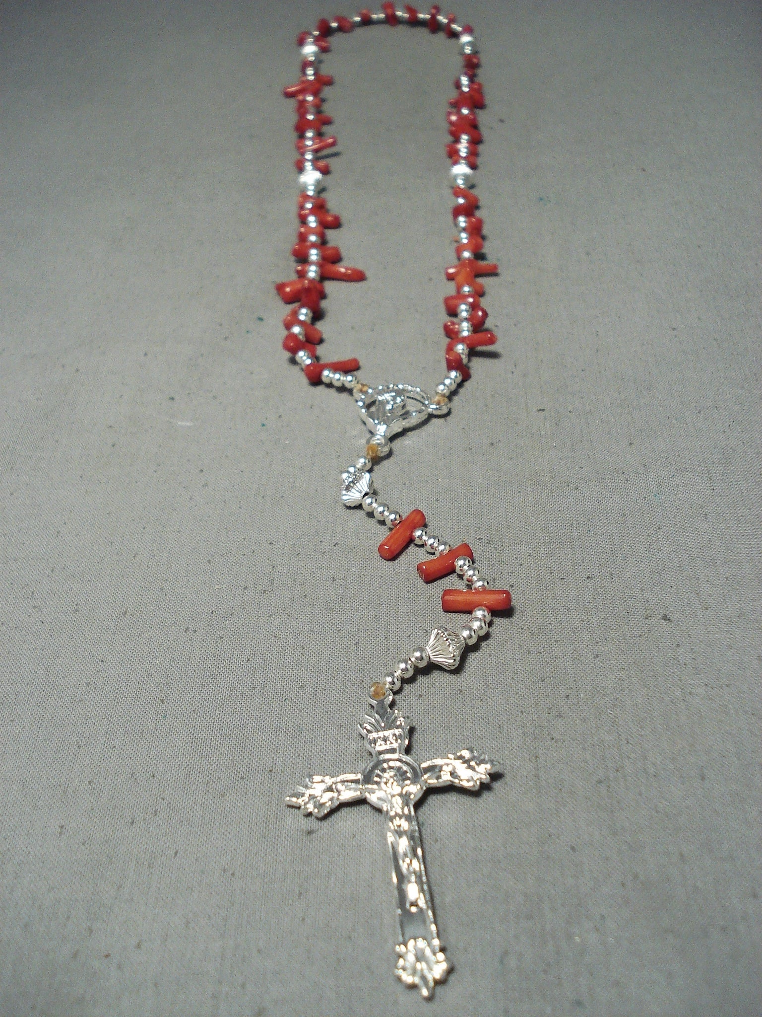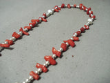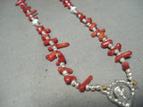 Beautiful Native American Navajo Coral Sterling Silver Rosary Necklace