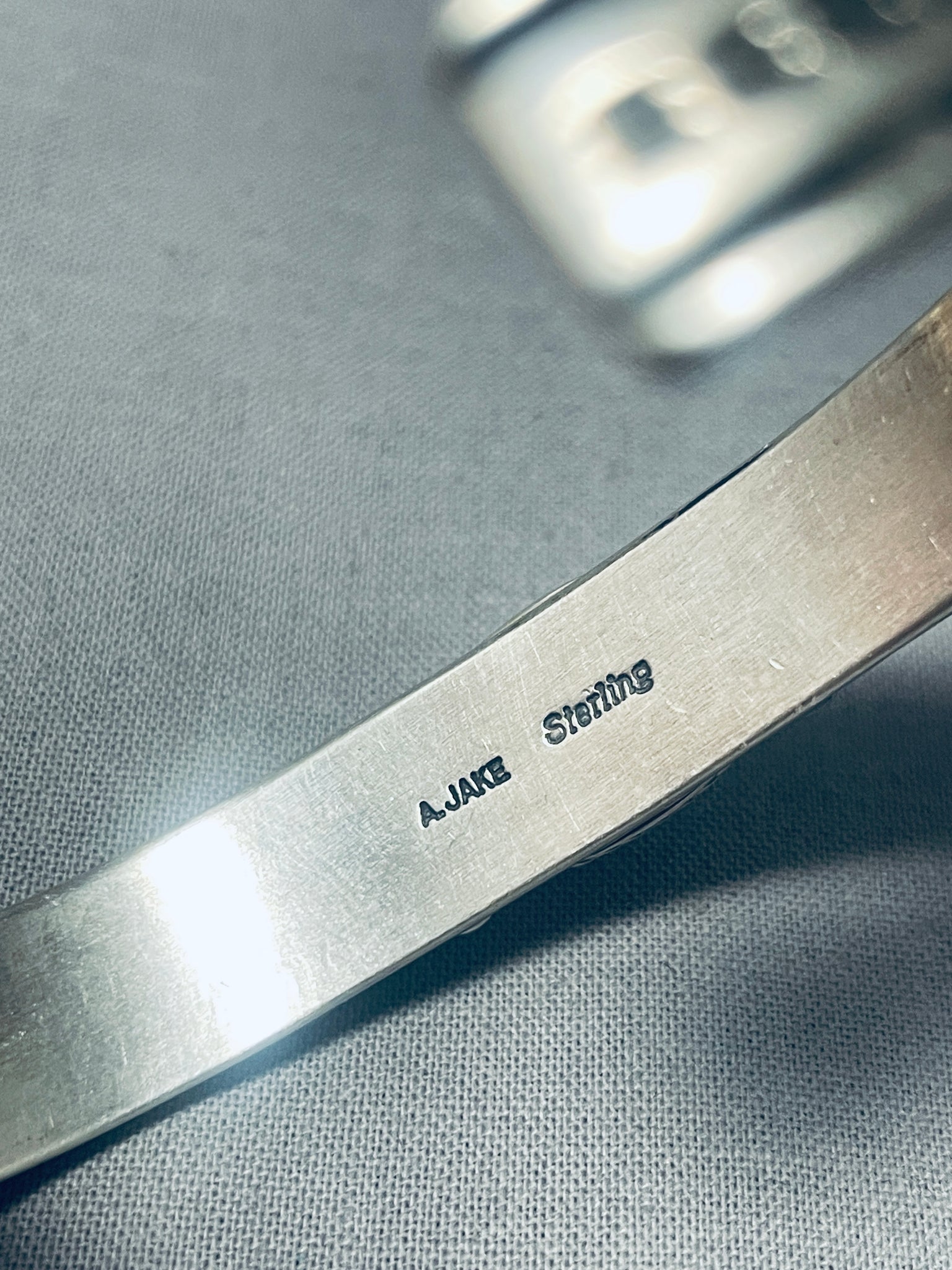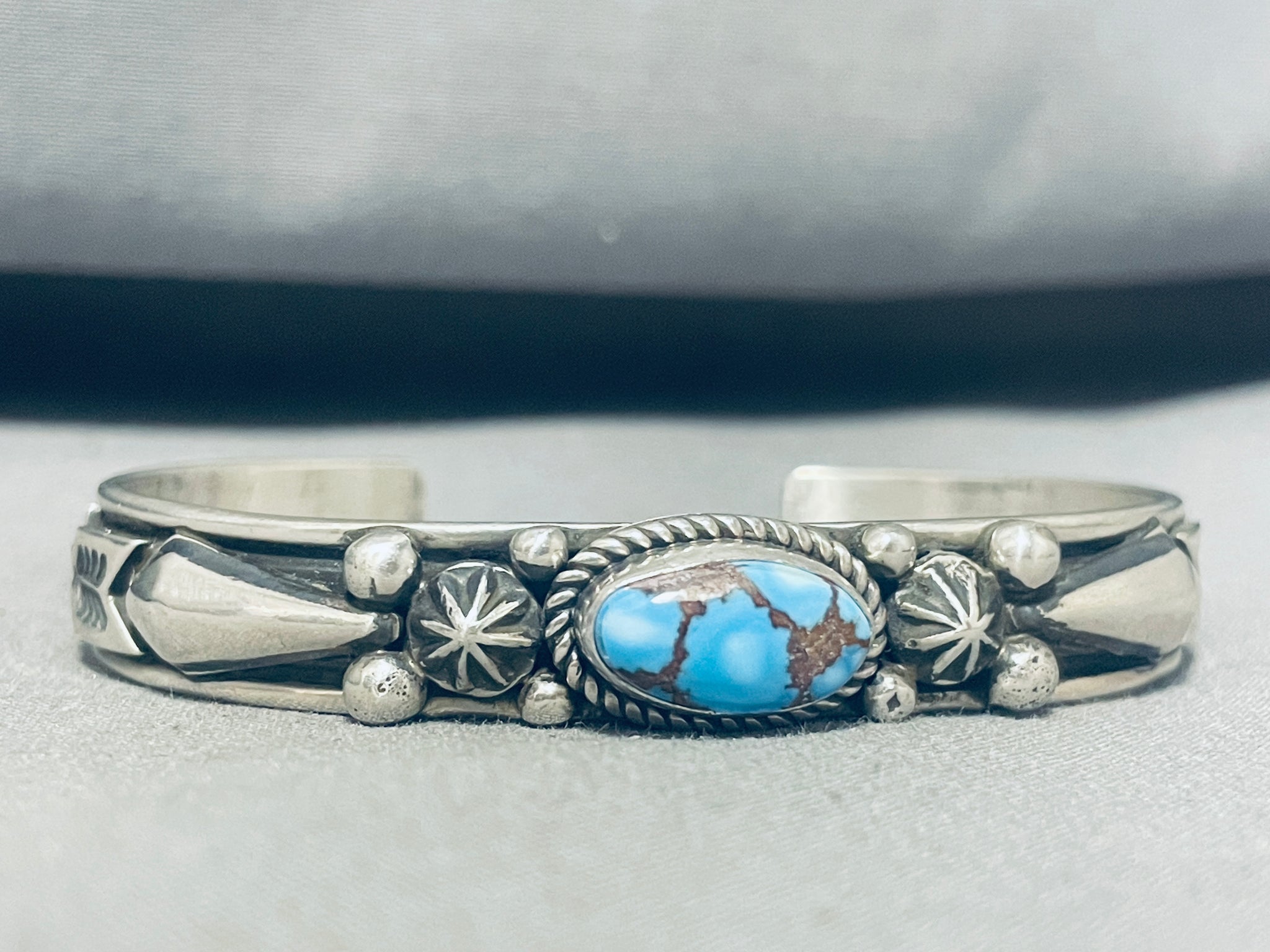 Beautiful Native American Navajo Golden Hill Turquoise Sterling Silver Signed Bracelet