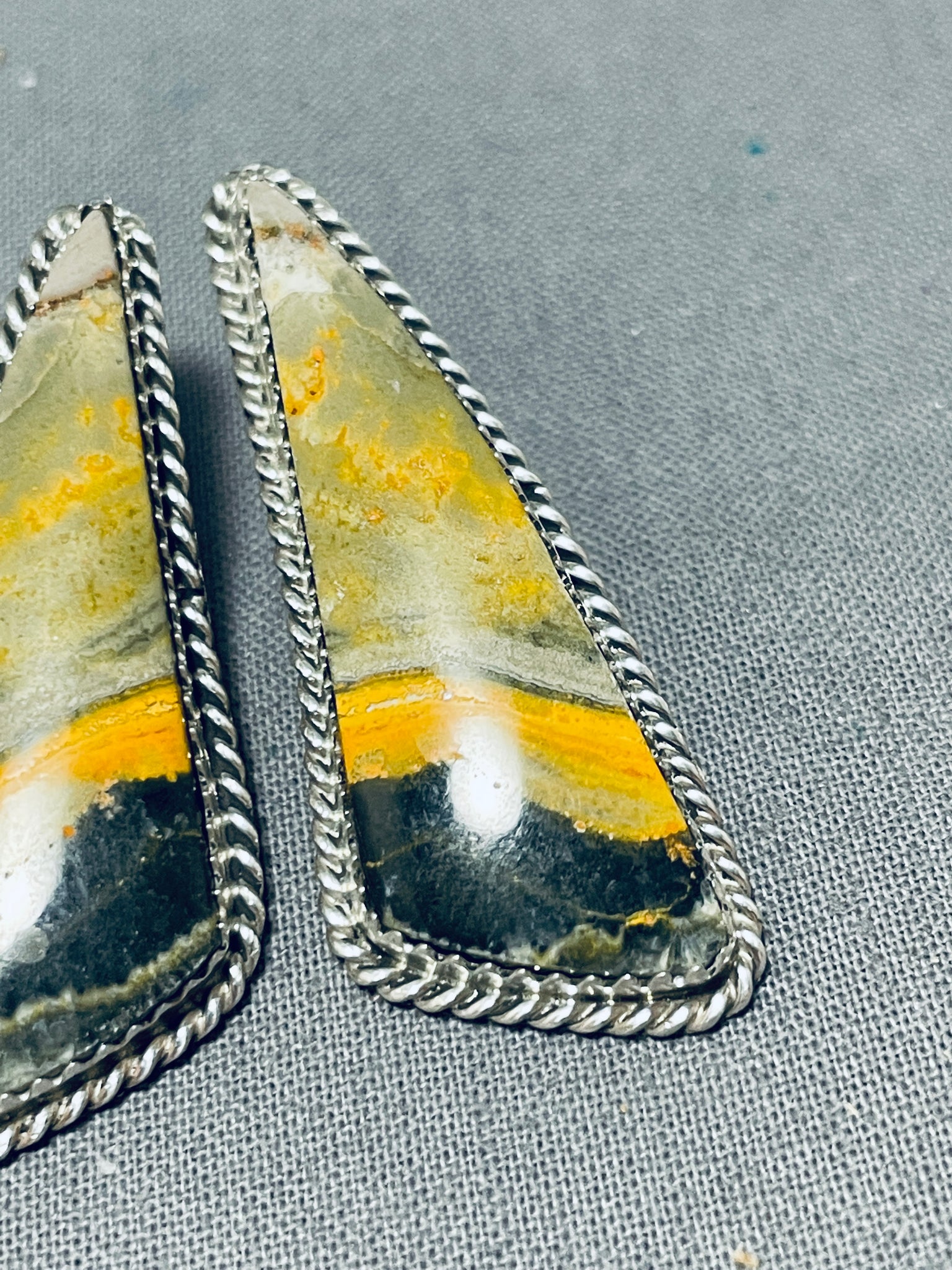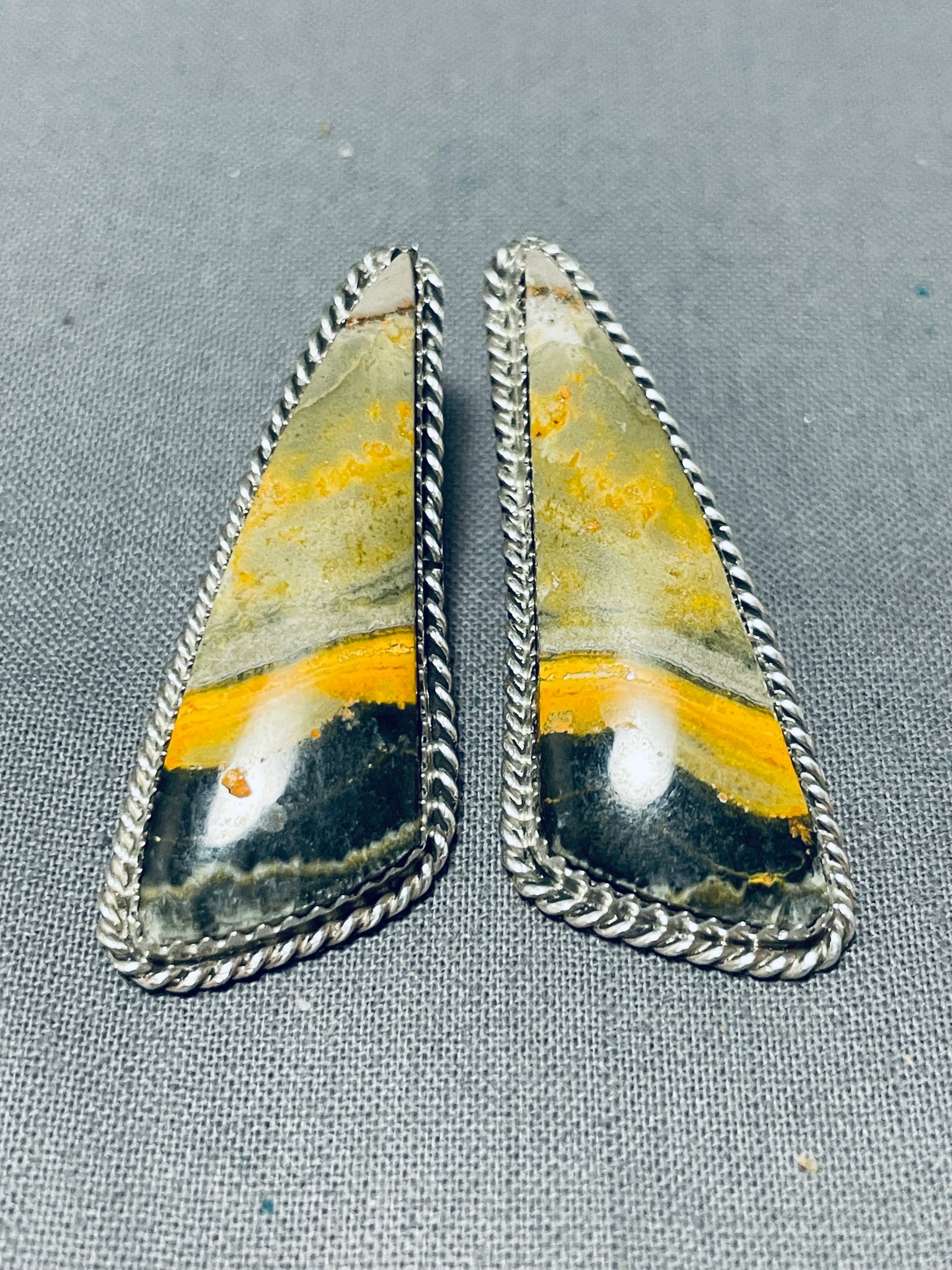 Beautiful Native American Navajo Honeybee Jasper Sterling Silver Earrings