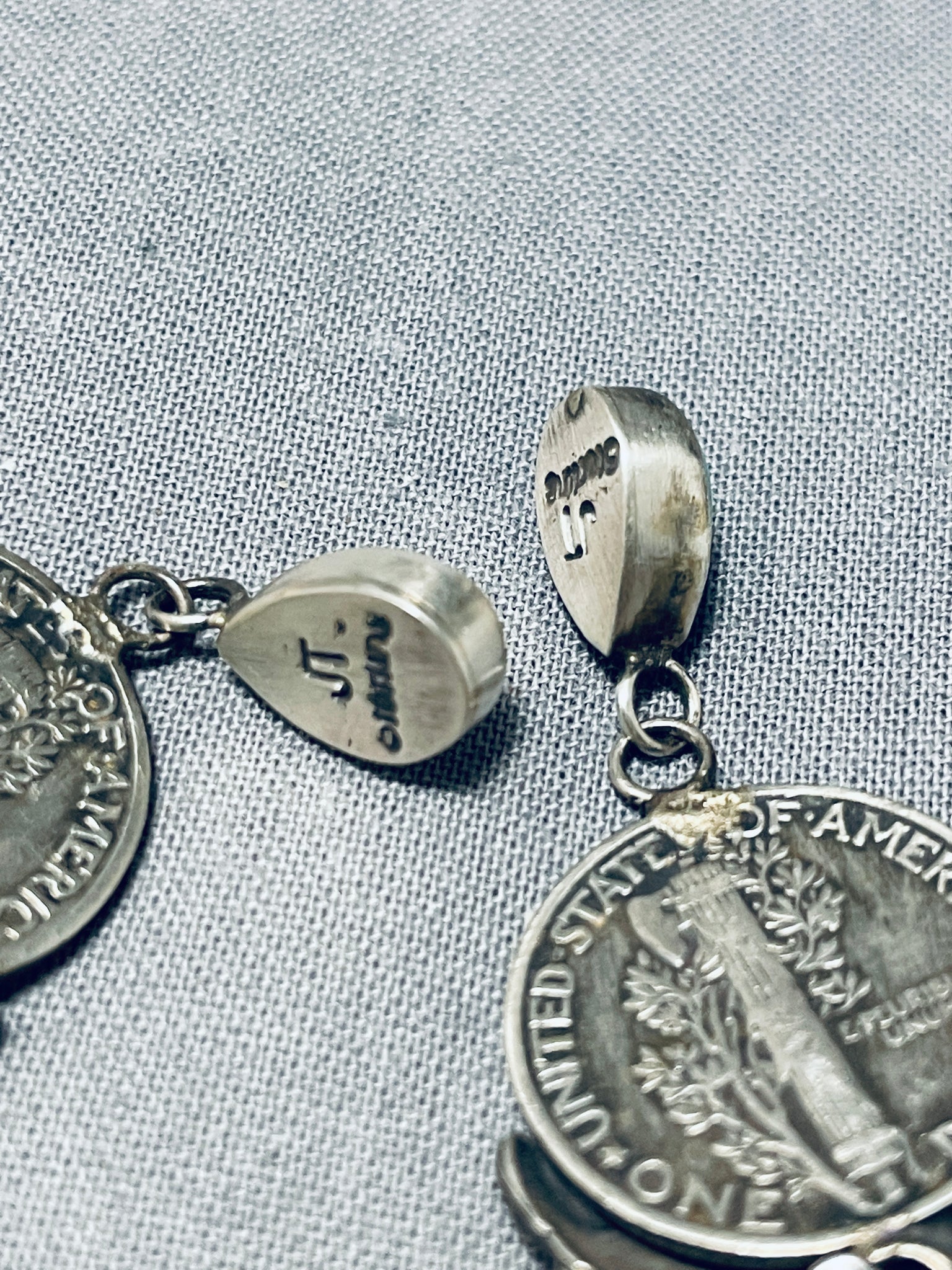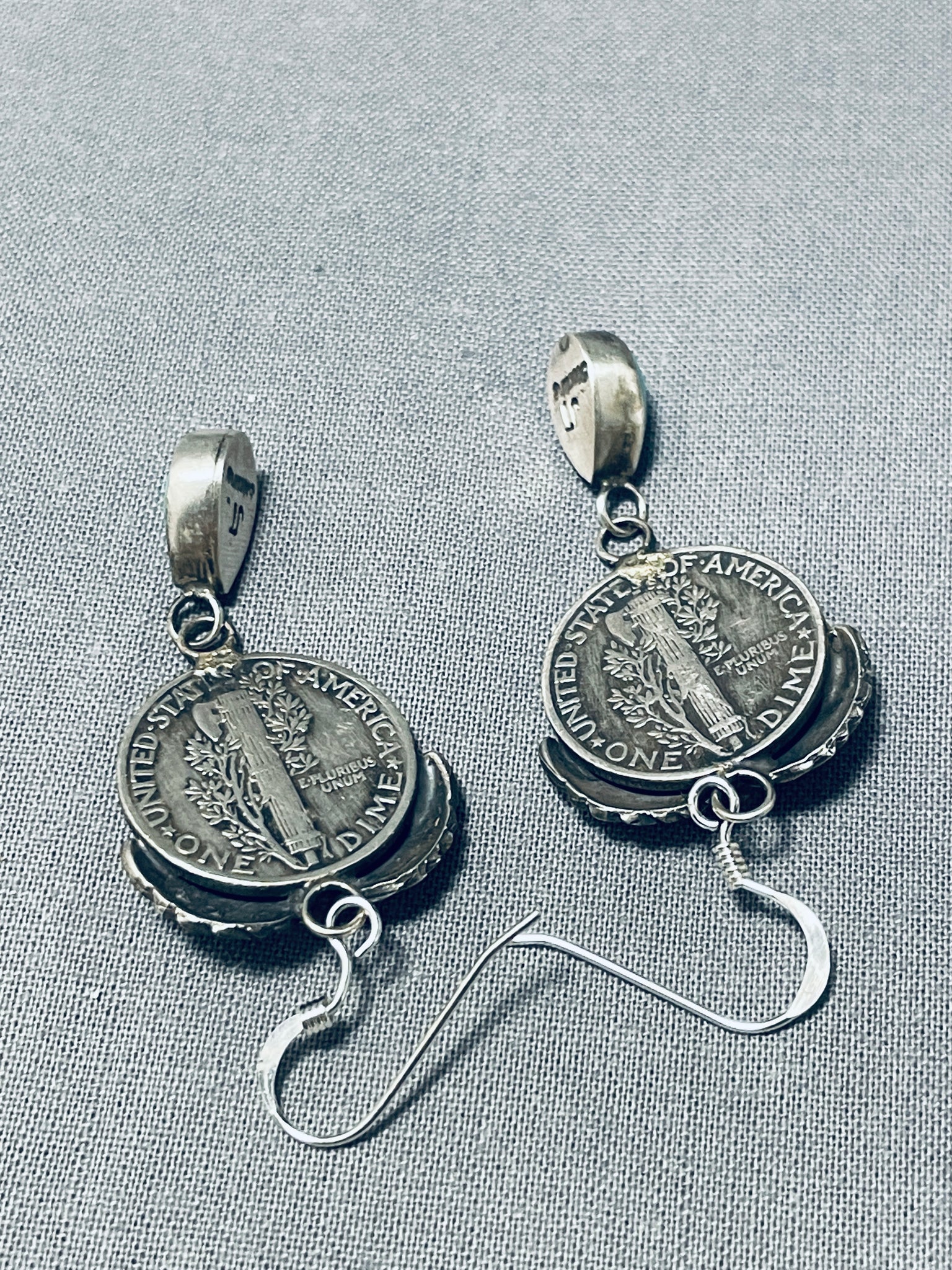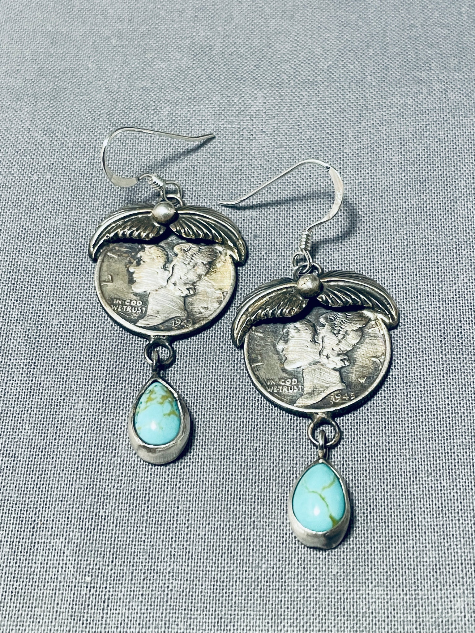 Beautiful Native American Navajo Kingman Turquoise Sterling Silver Dime Earrings