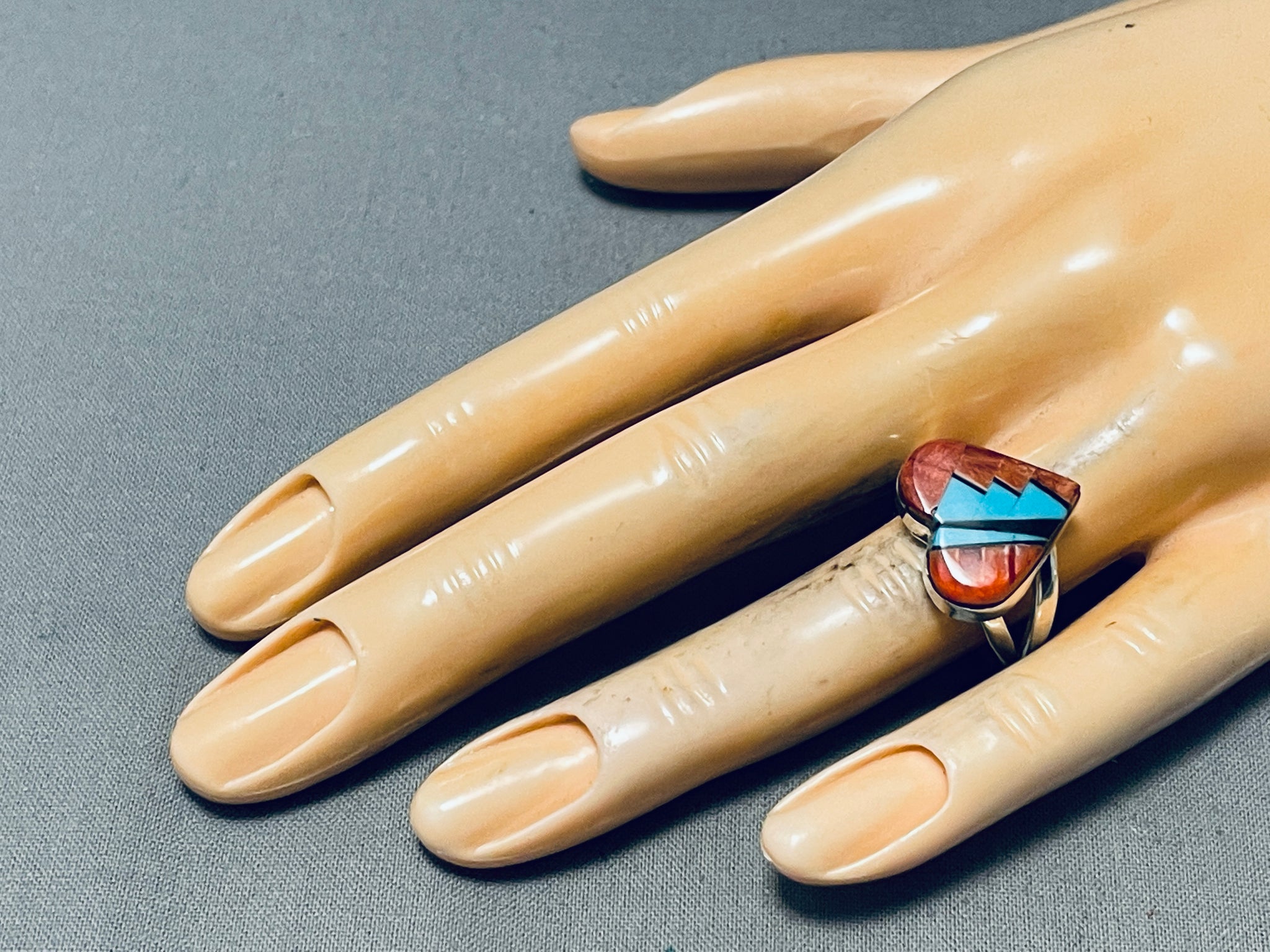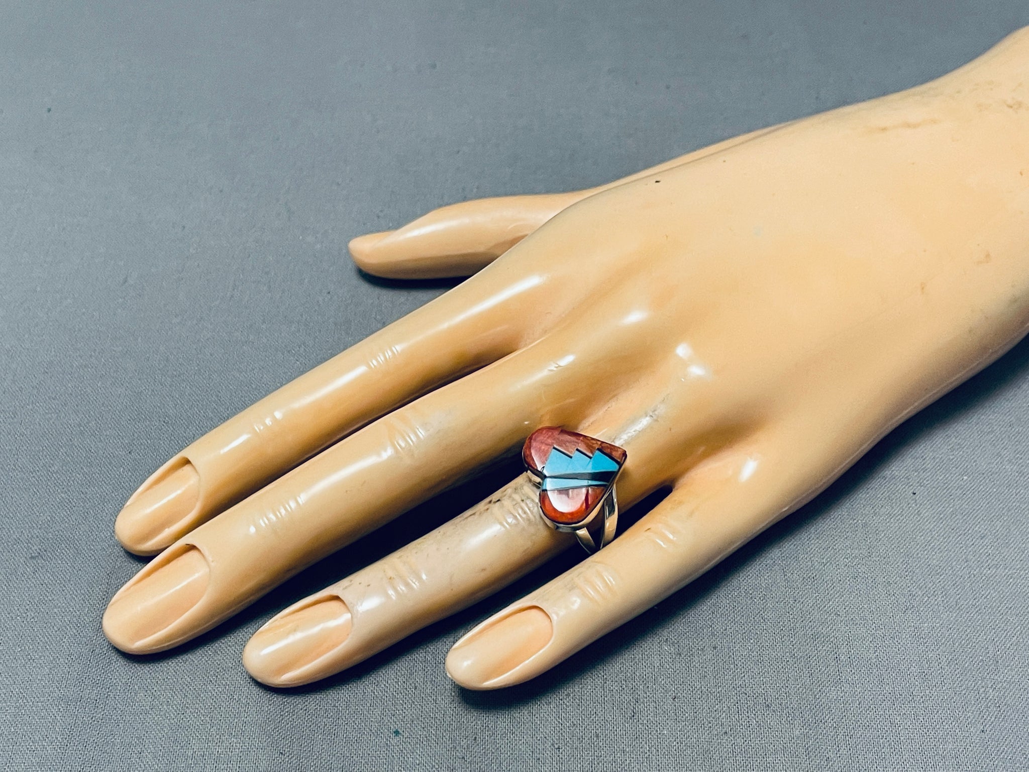Beautiful Native American Navajo Spiny Oyster Sterling Silver Ring Signed