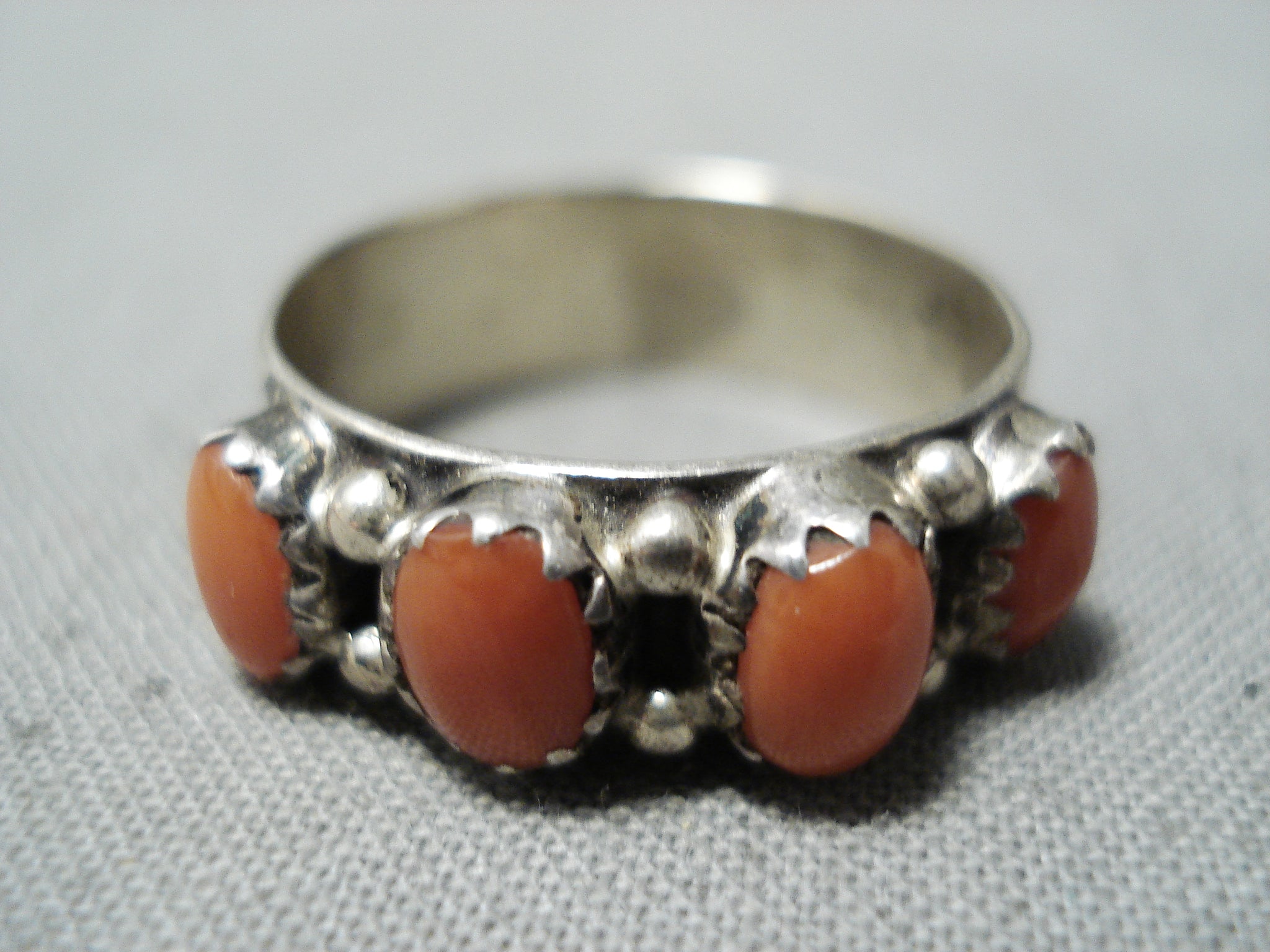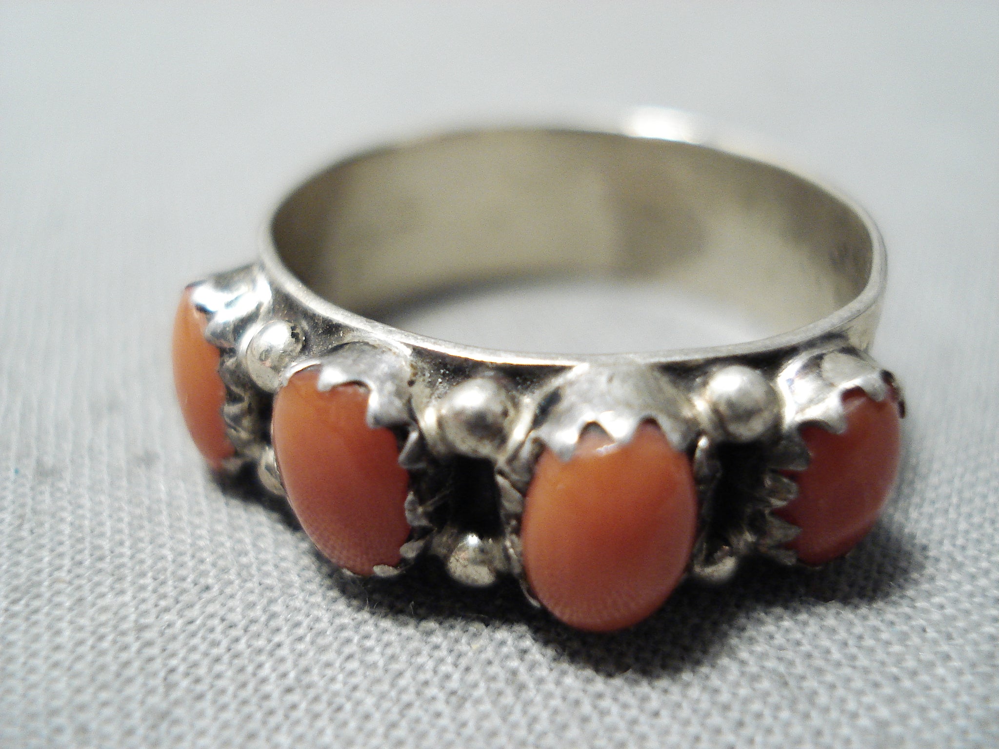 Beautiful Navajo Coral Sterling Silver Ring Native American