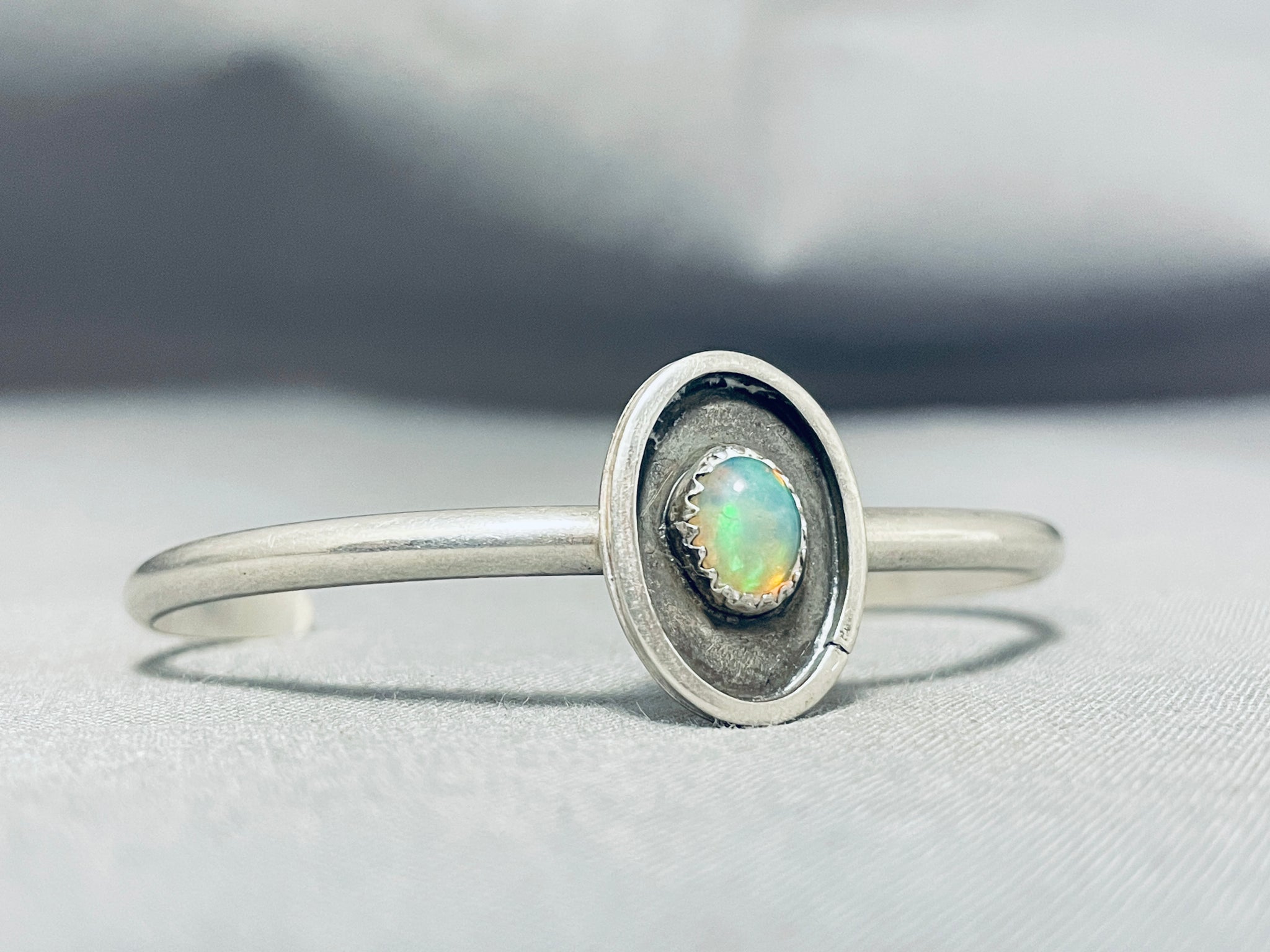 Beautiful Opal Vintage Native American Navajo Sterling Silver Bracelet