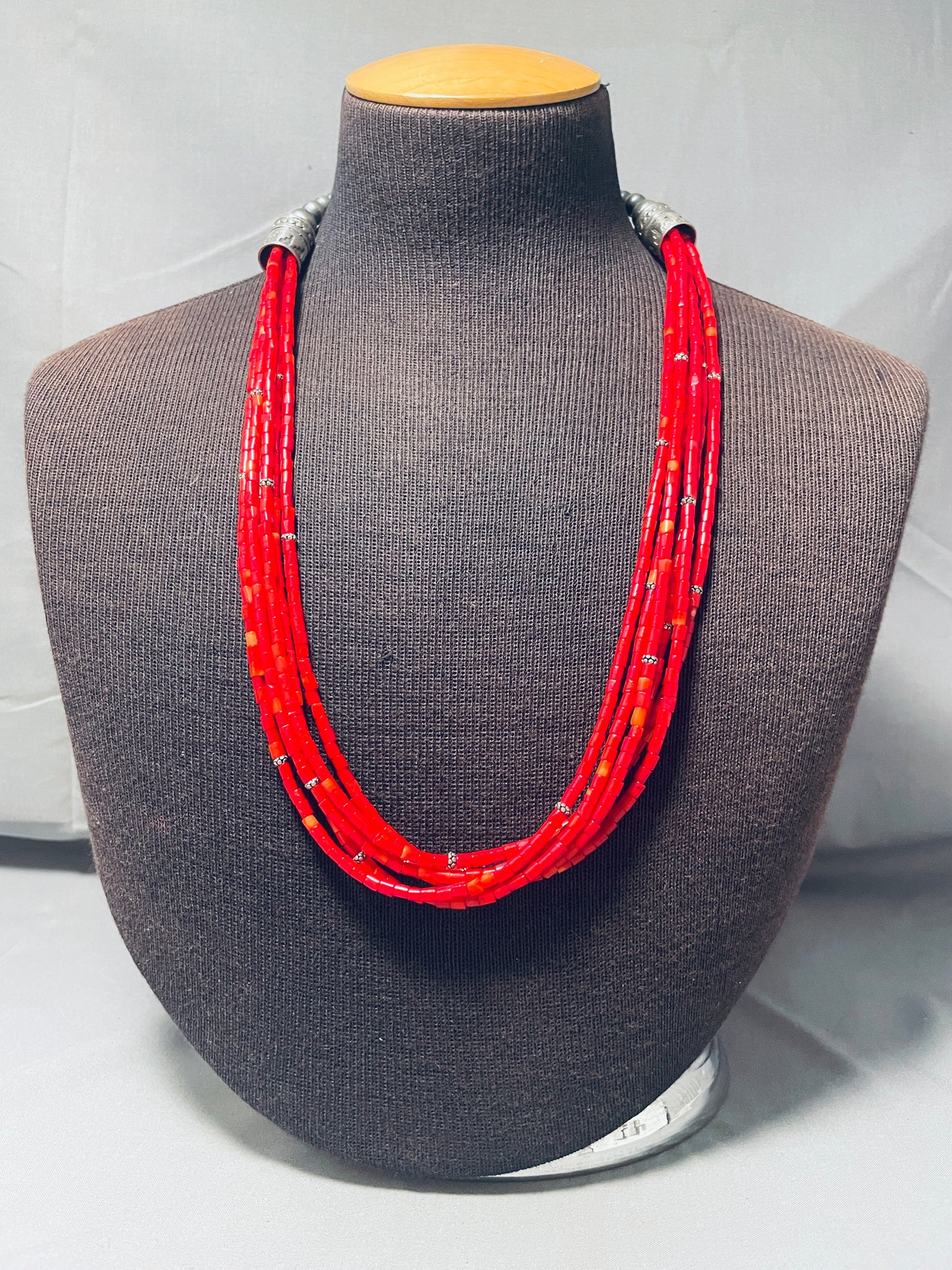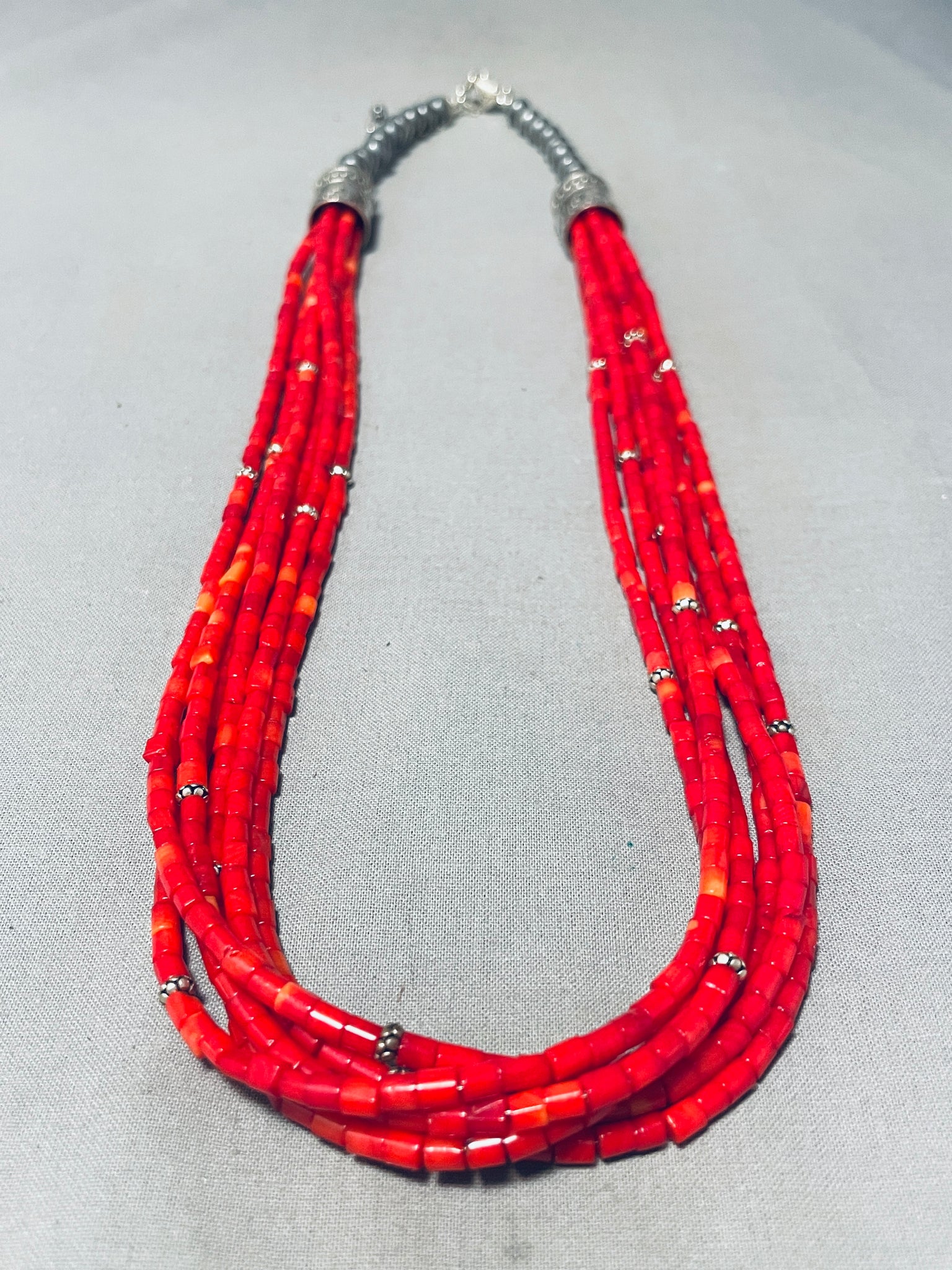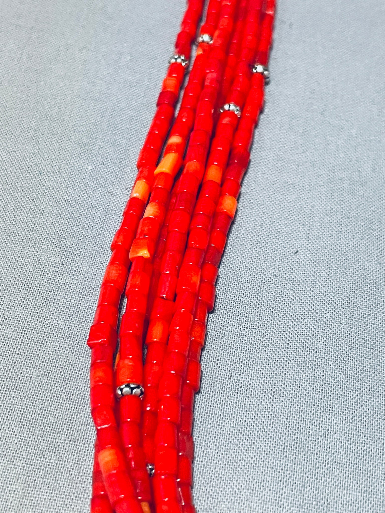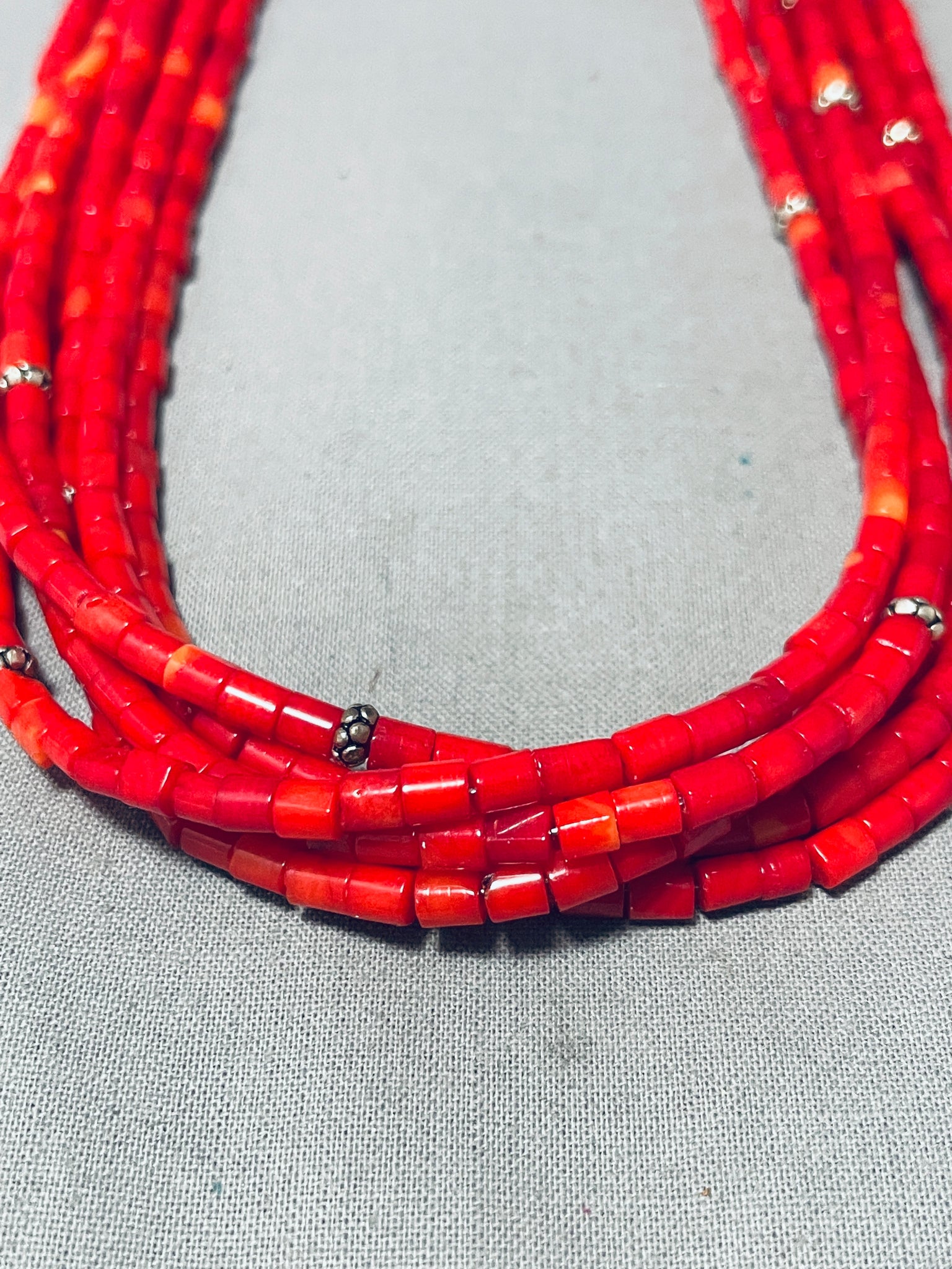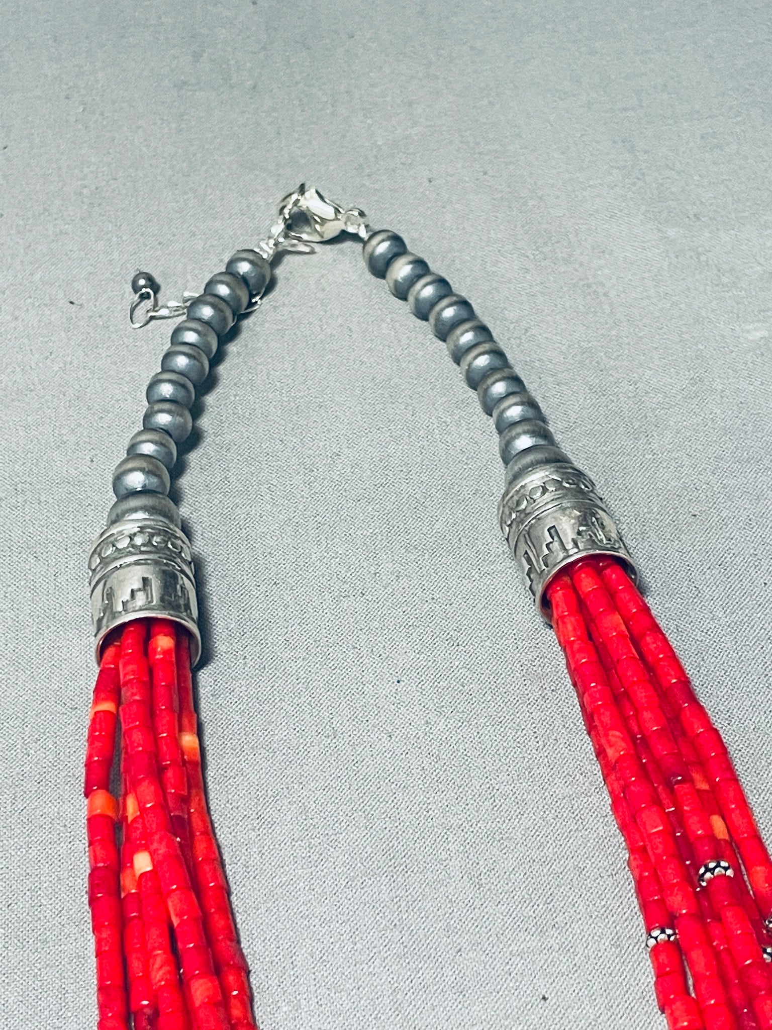 Beautiful Red Coral Native American Navajo Sterling Silver Drum Necklace
