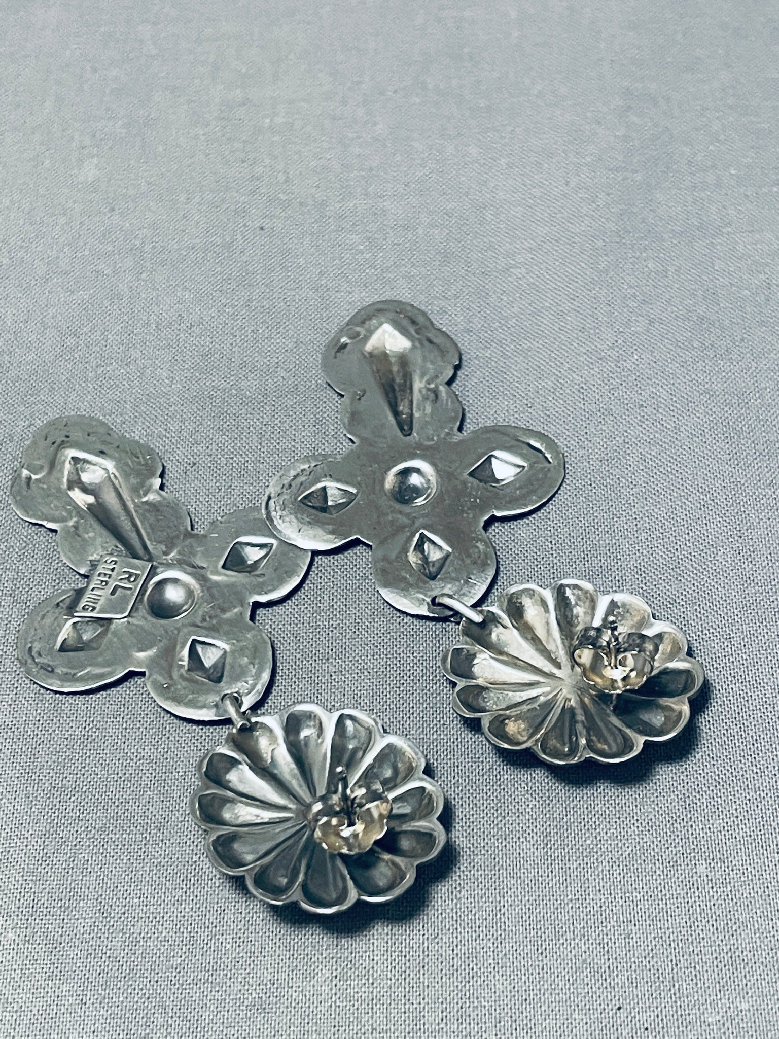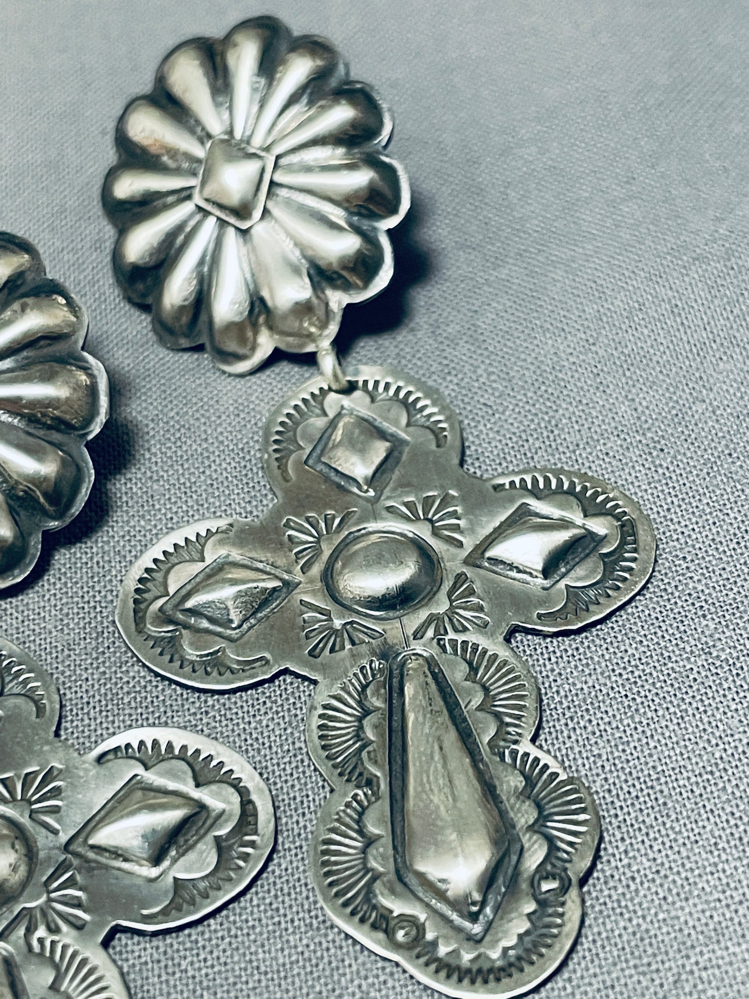 Beautiful Rita Lee Signed Native American Navajo Sterling Silver Cross Earrings