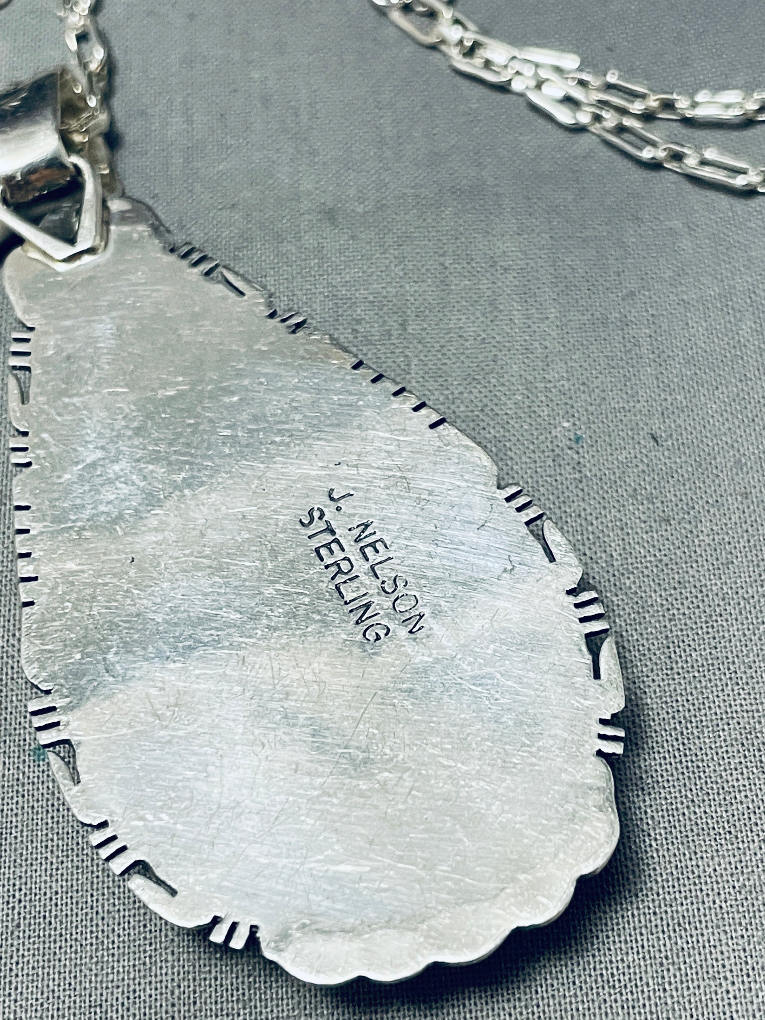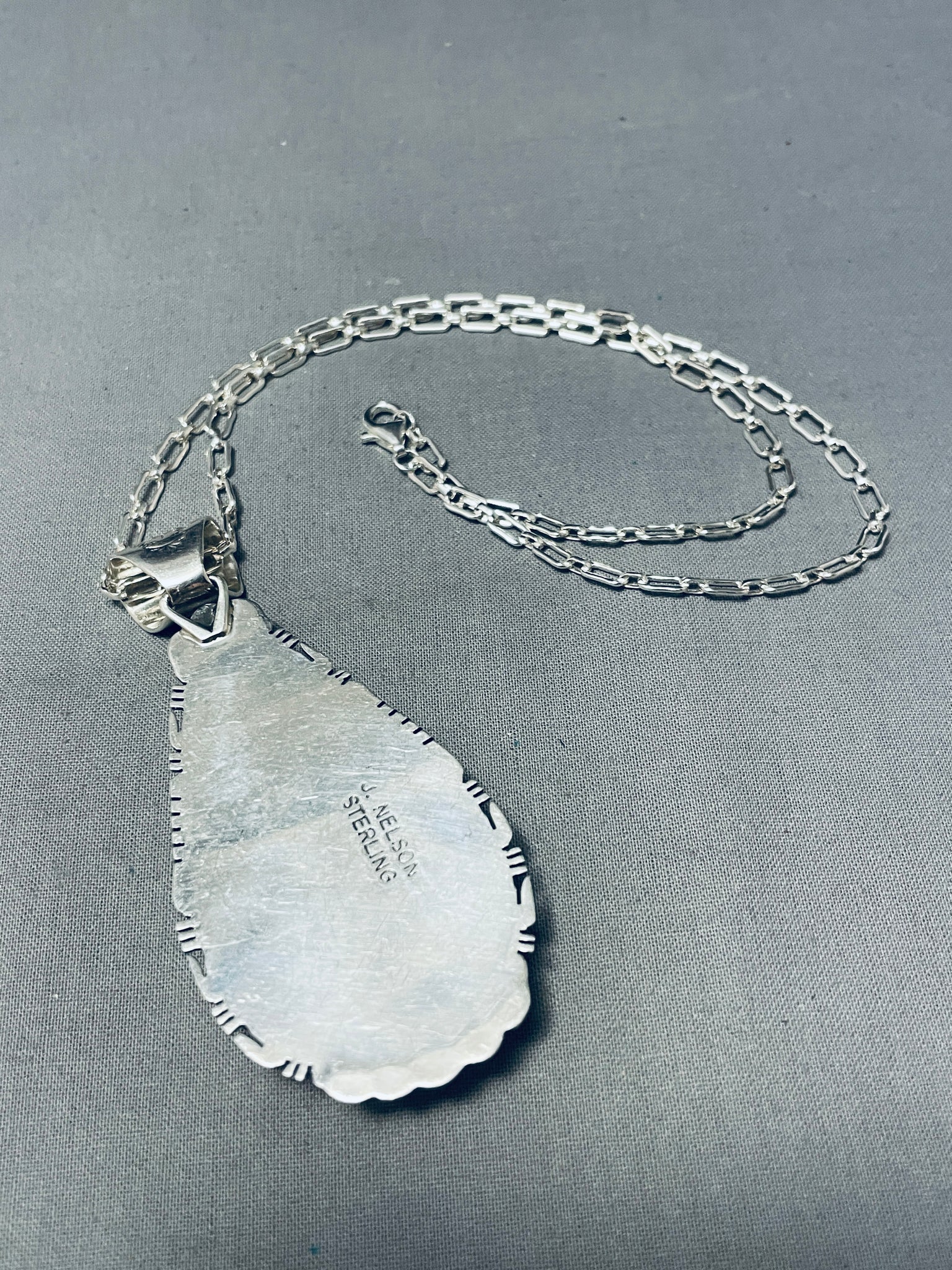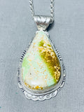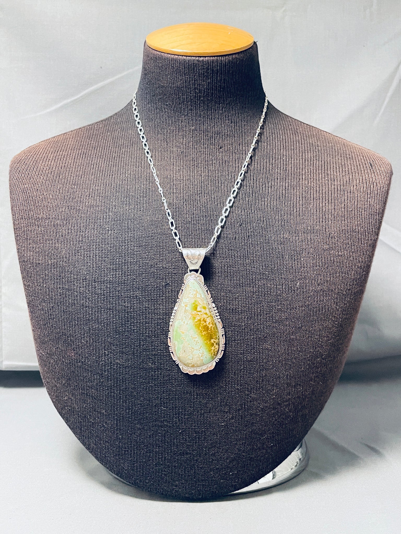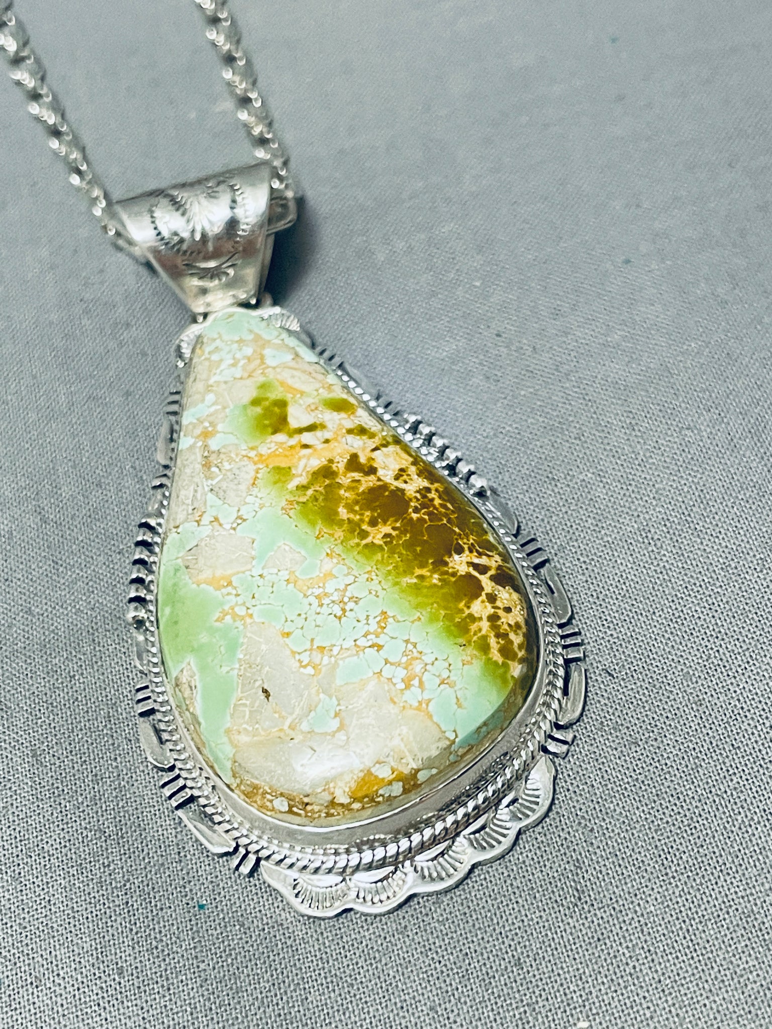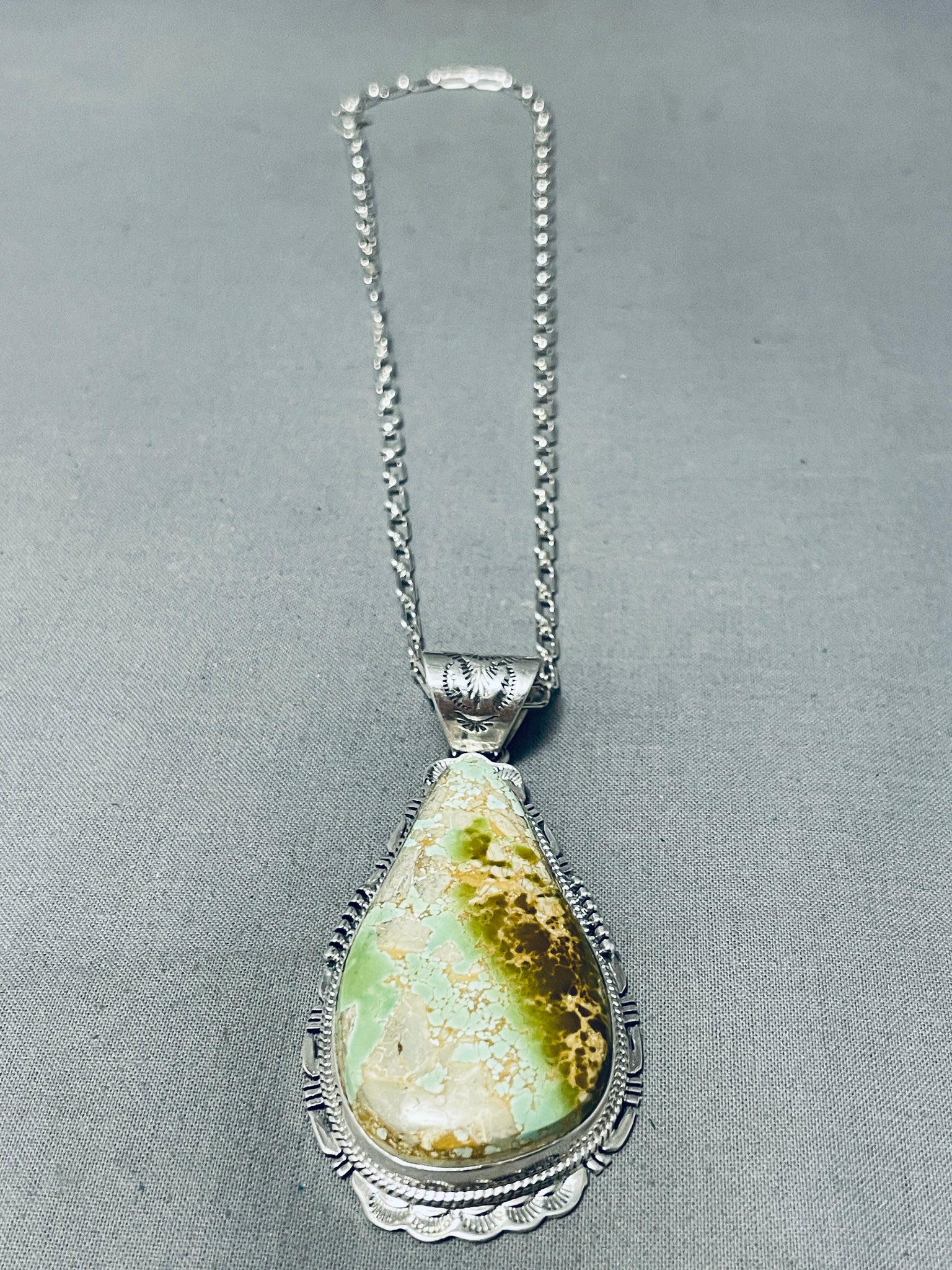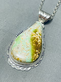 Beautiful Signed Native American Navajo Royston Turquoise Teardrop Sterling Silver Huge Necklace