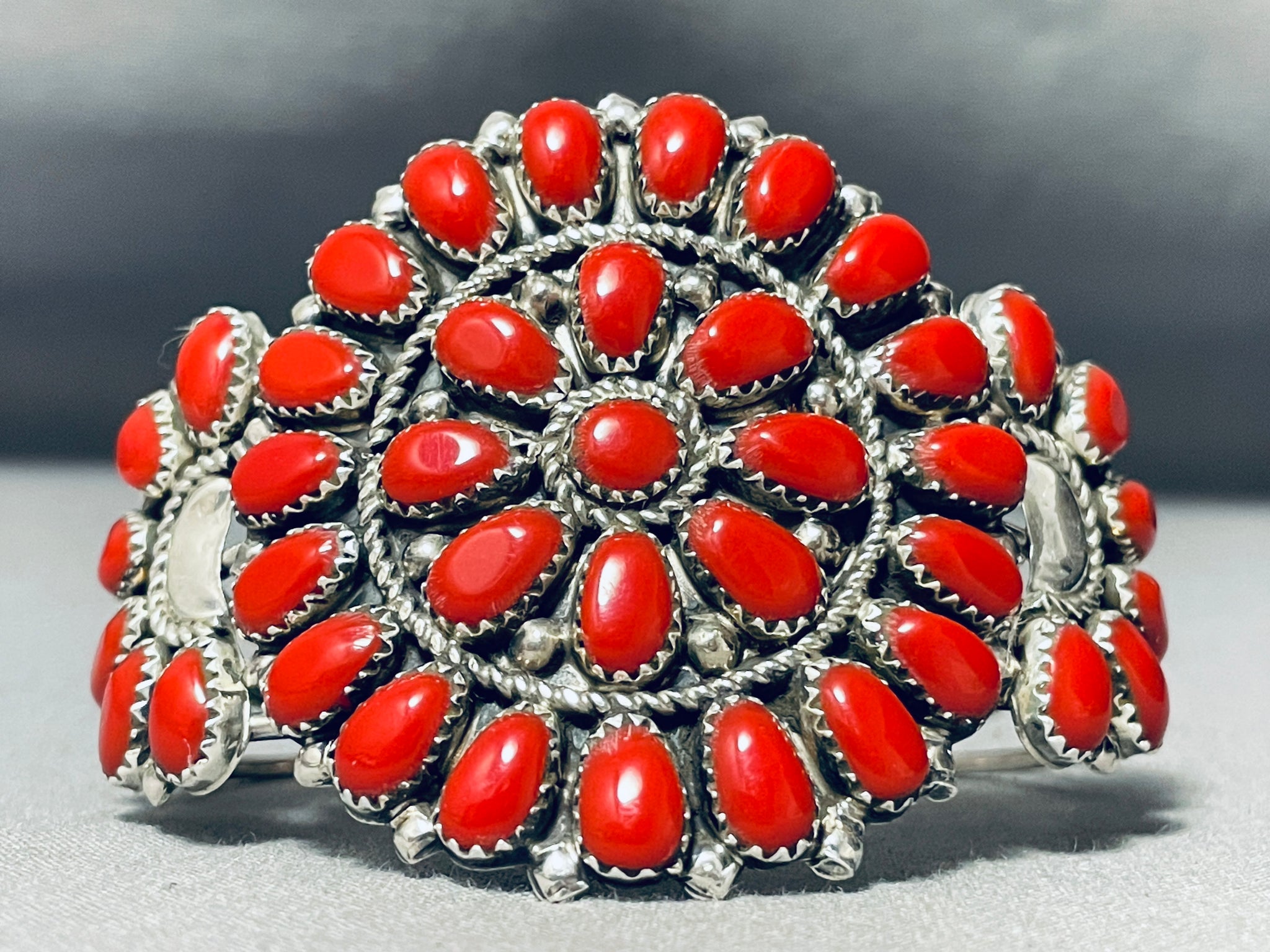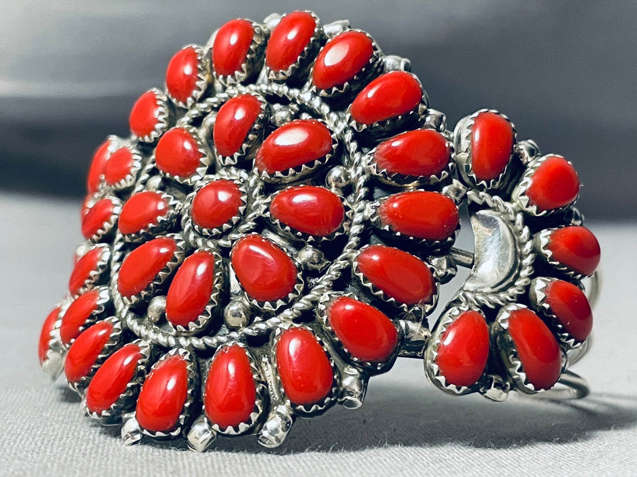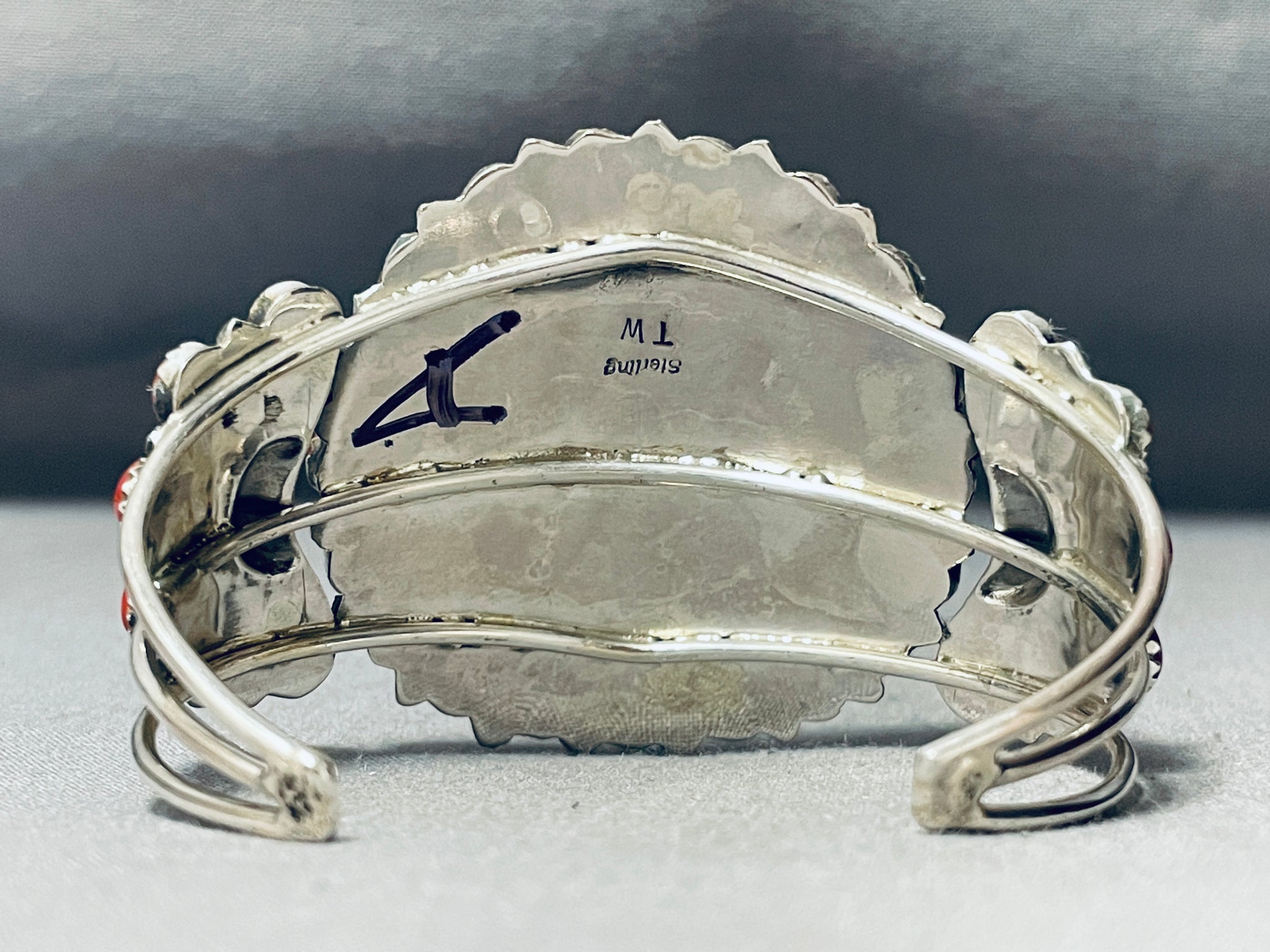 Beautiful Signed Vintage Native American Zuni Sterling Silver Cluster Bracelet