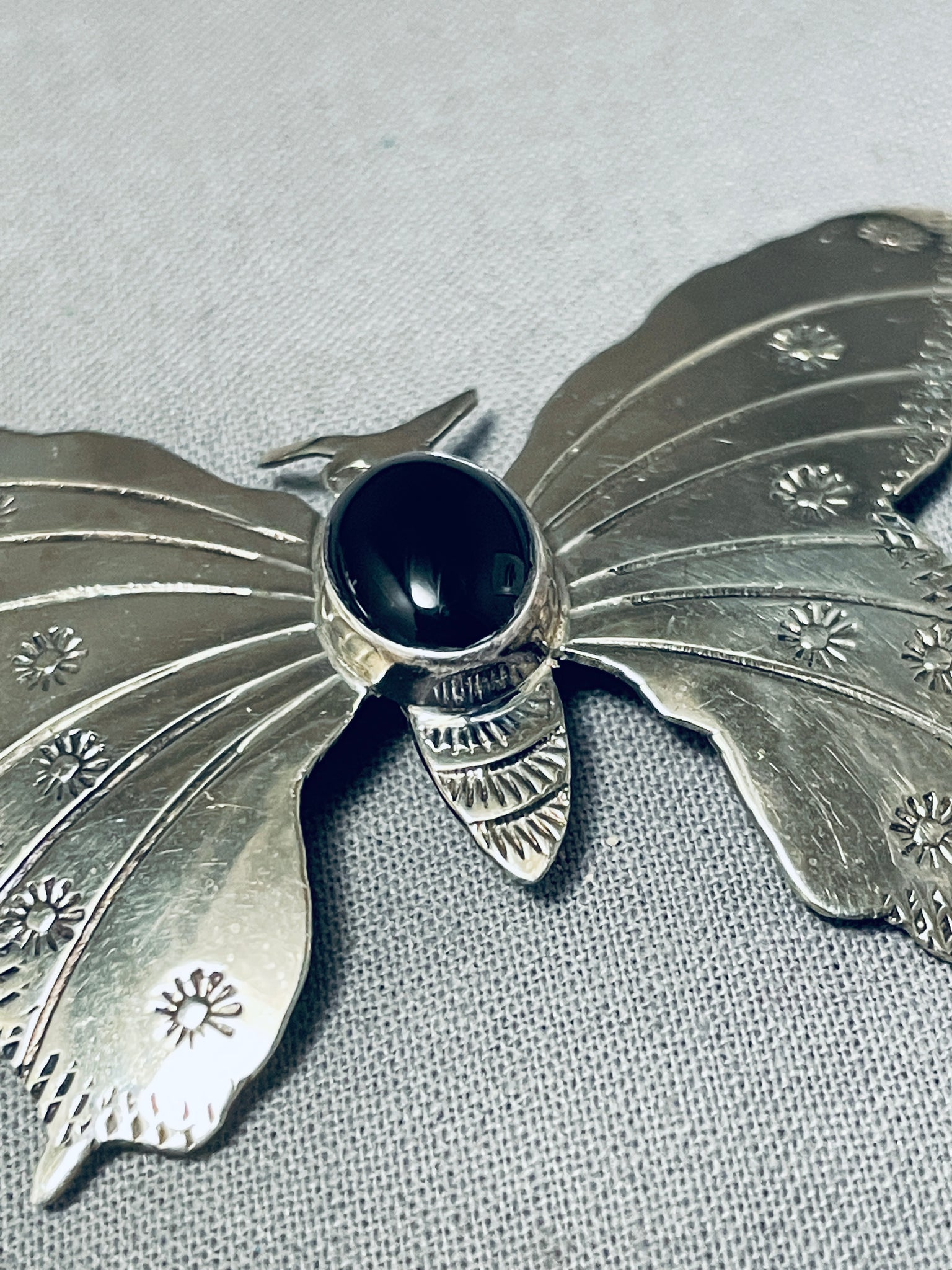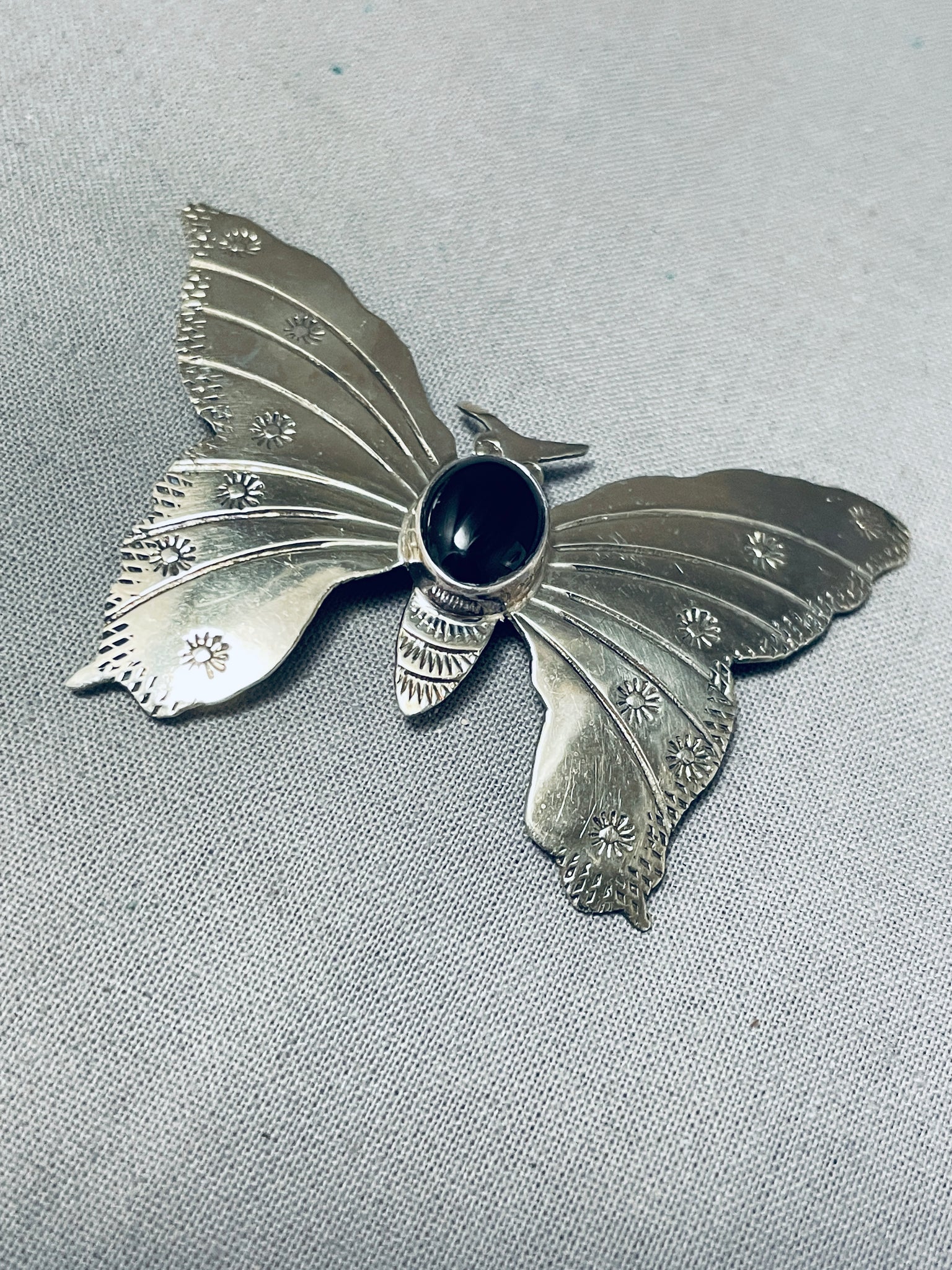 Beautiful Vintage Native American Navajo Black Onyx Sterling Silver Butterfly Pin