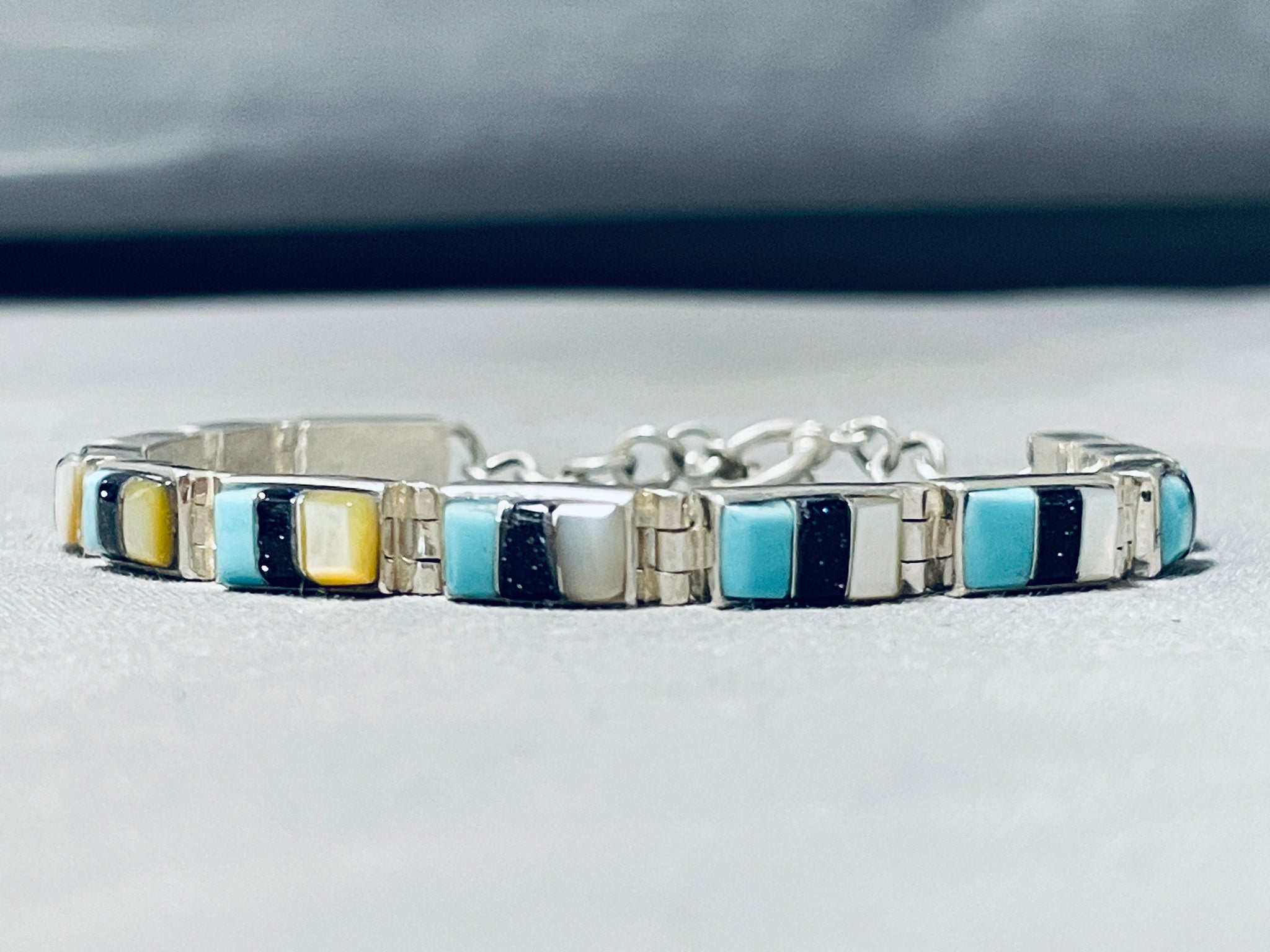 Beautiful Vintage Native American Navajo Blue Gem Turquoise Sterling Silver Bracelet
