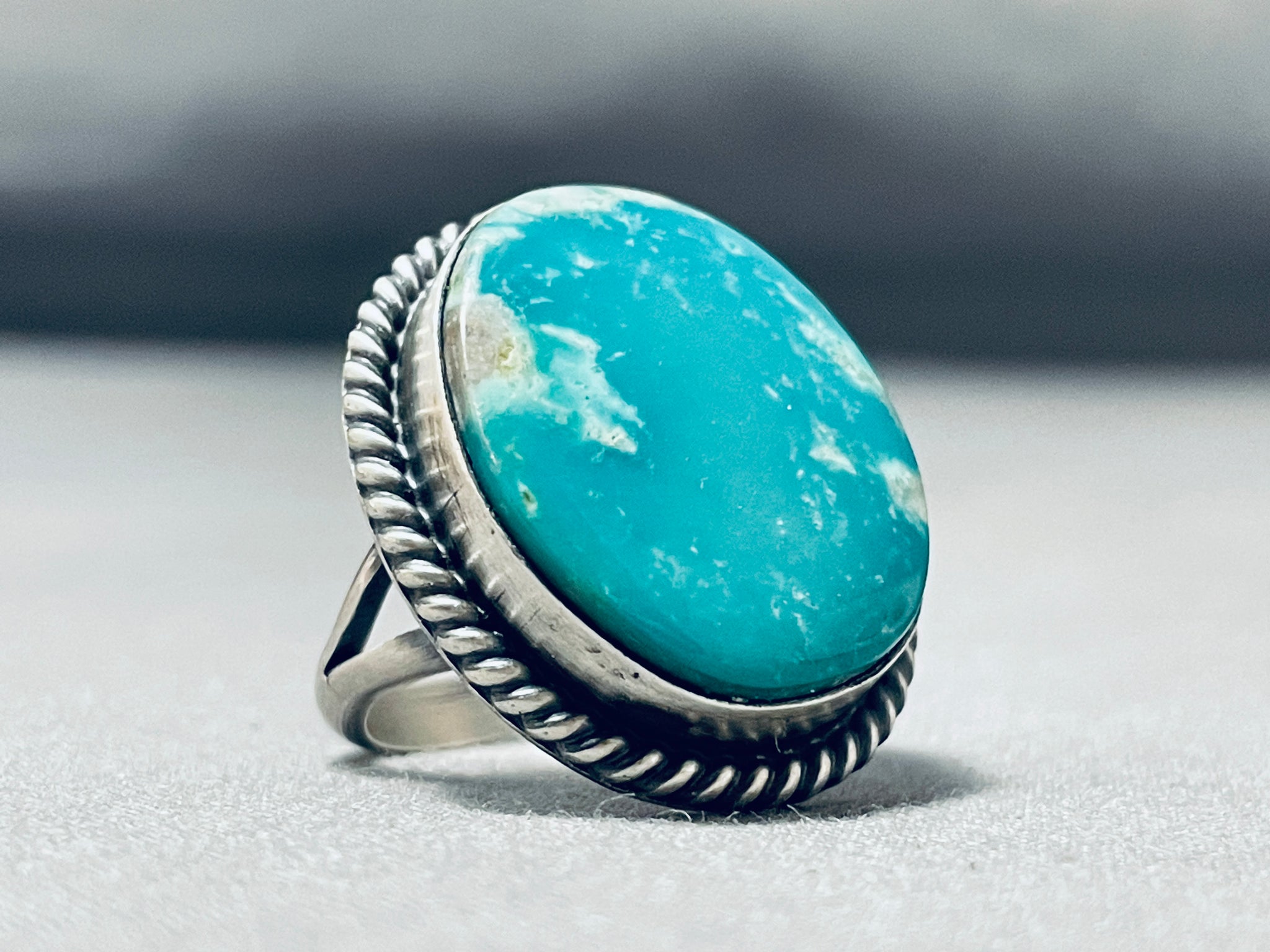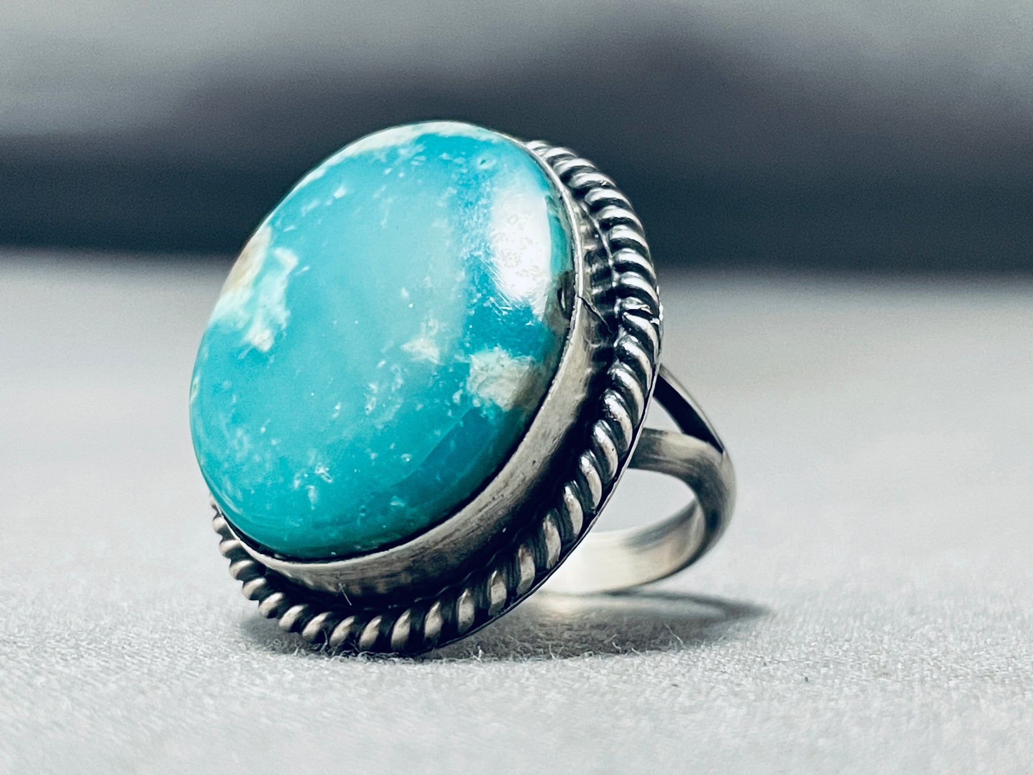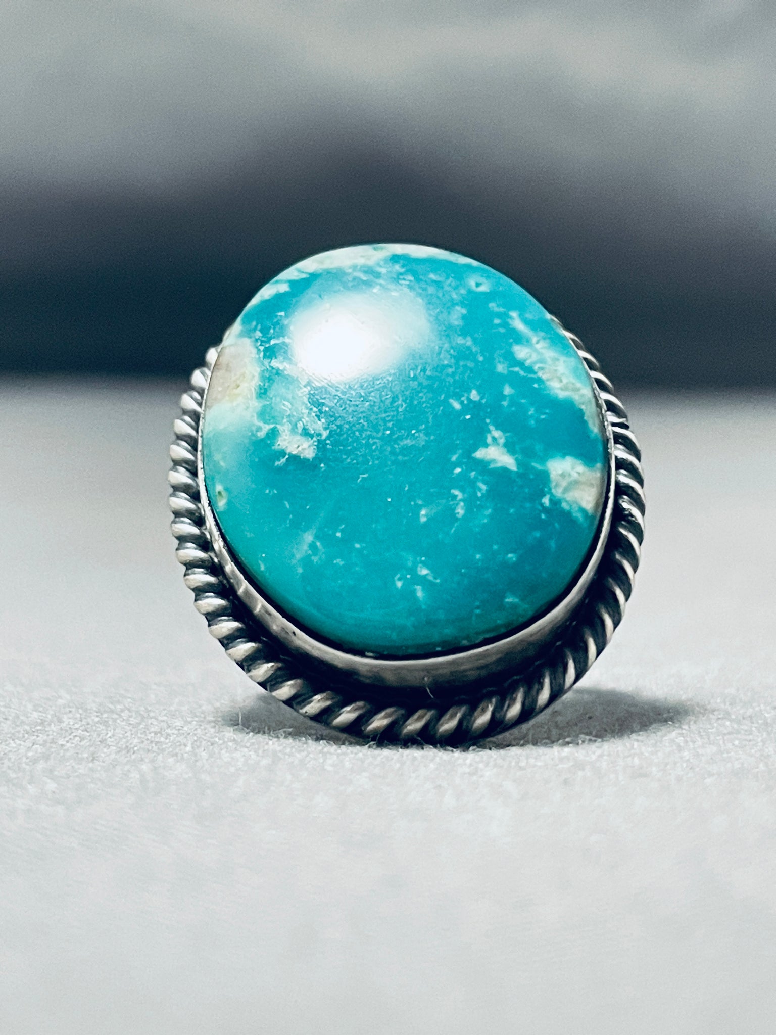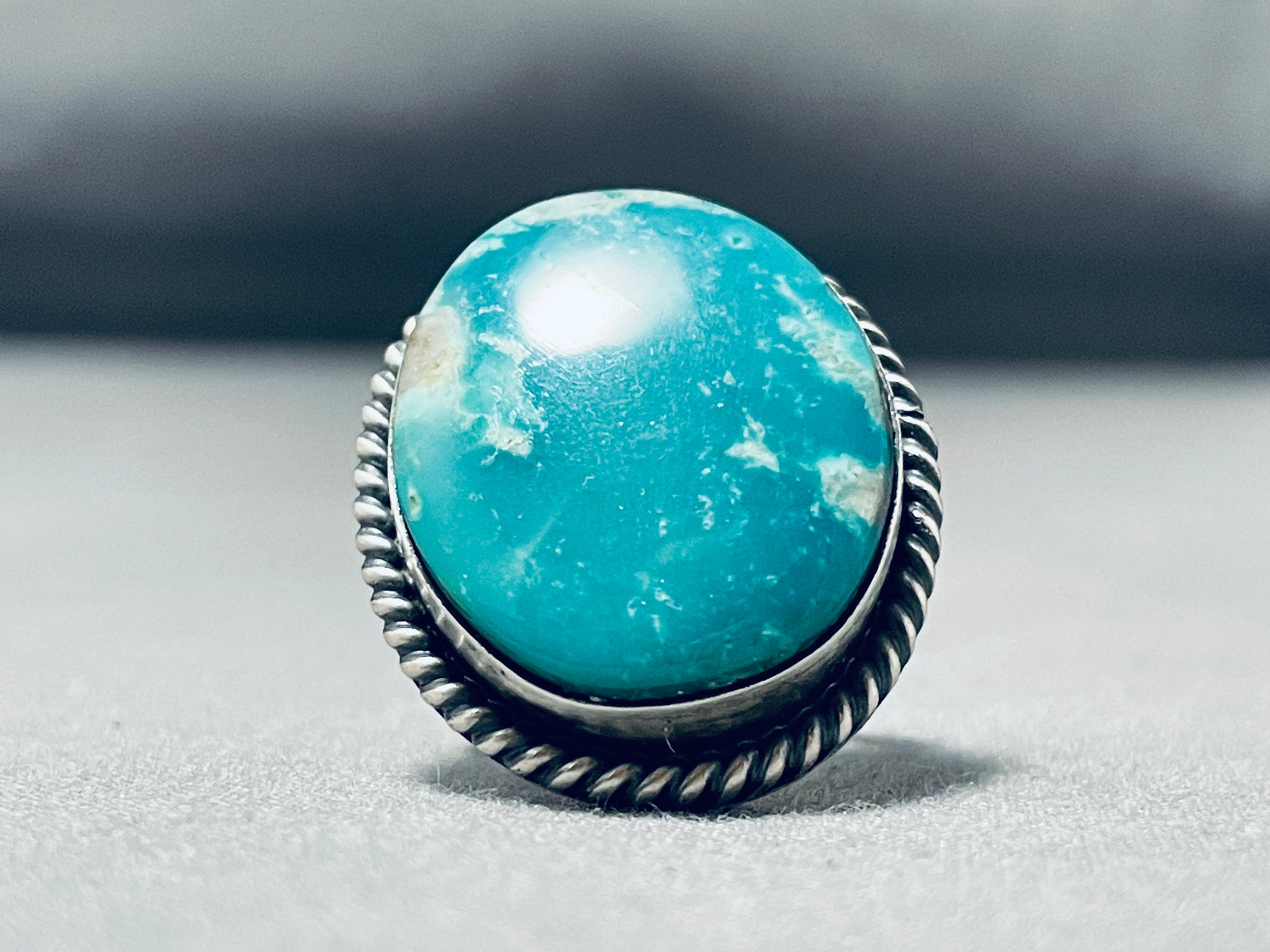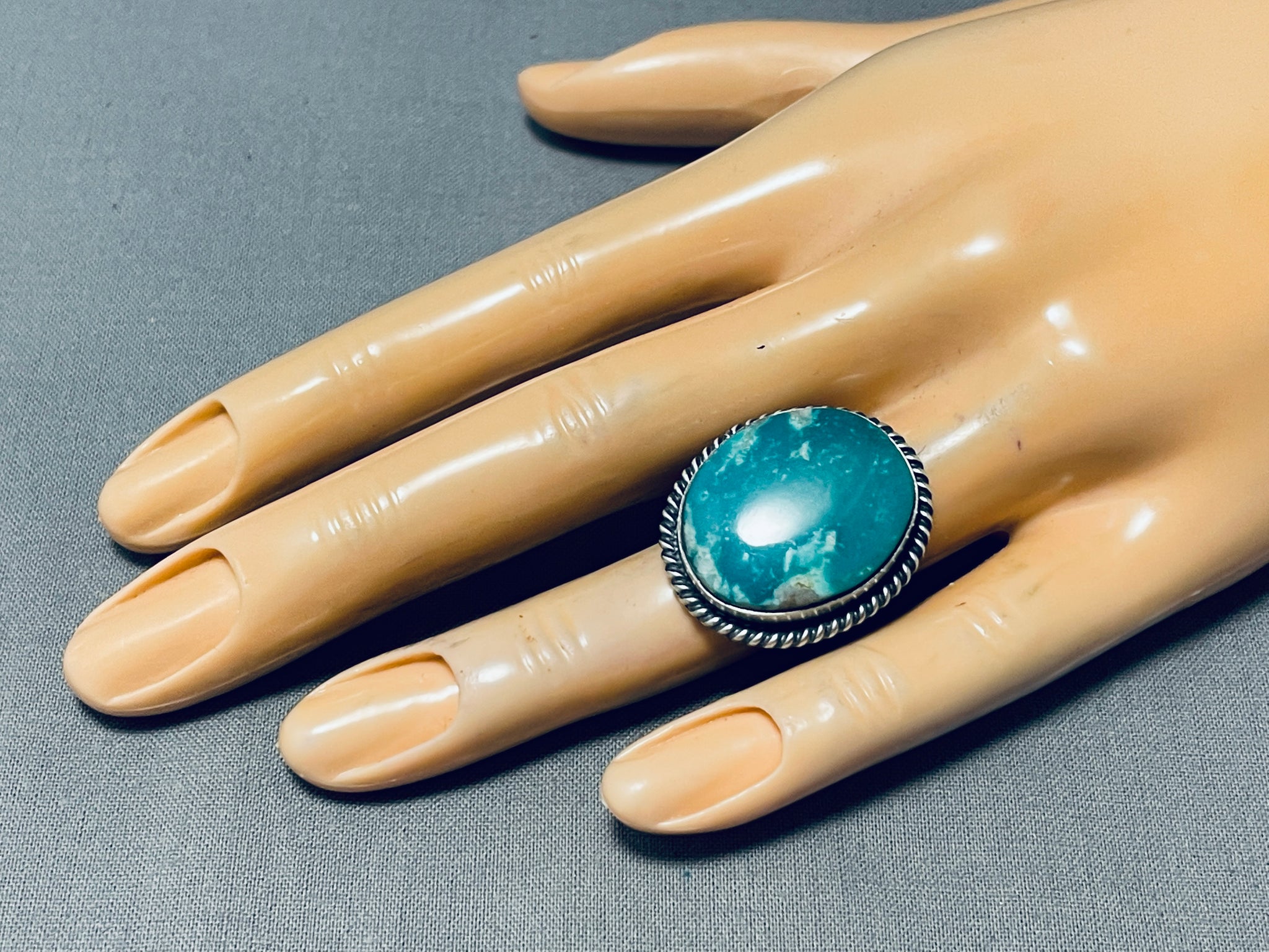 Beautiful Vintage Native American Navajo Blue Green Turquoise Sterling Silver Ring