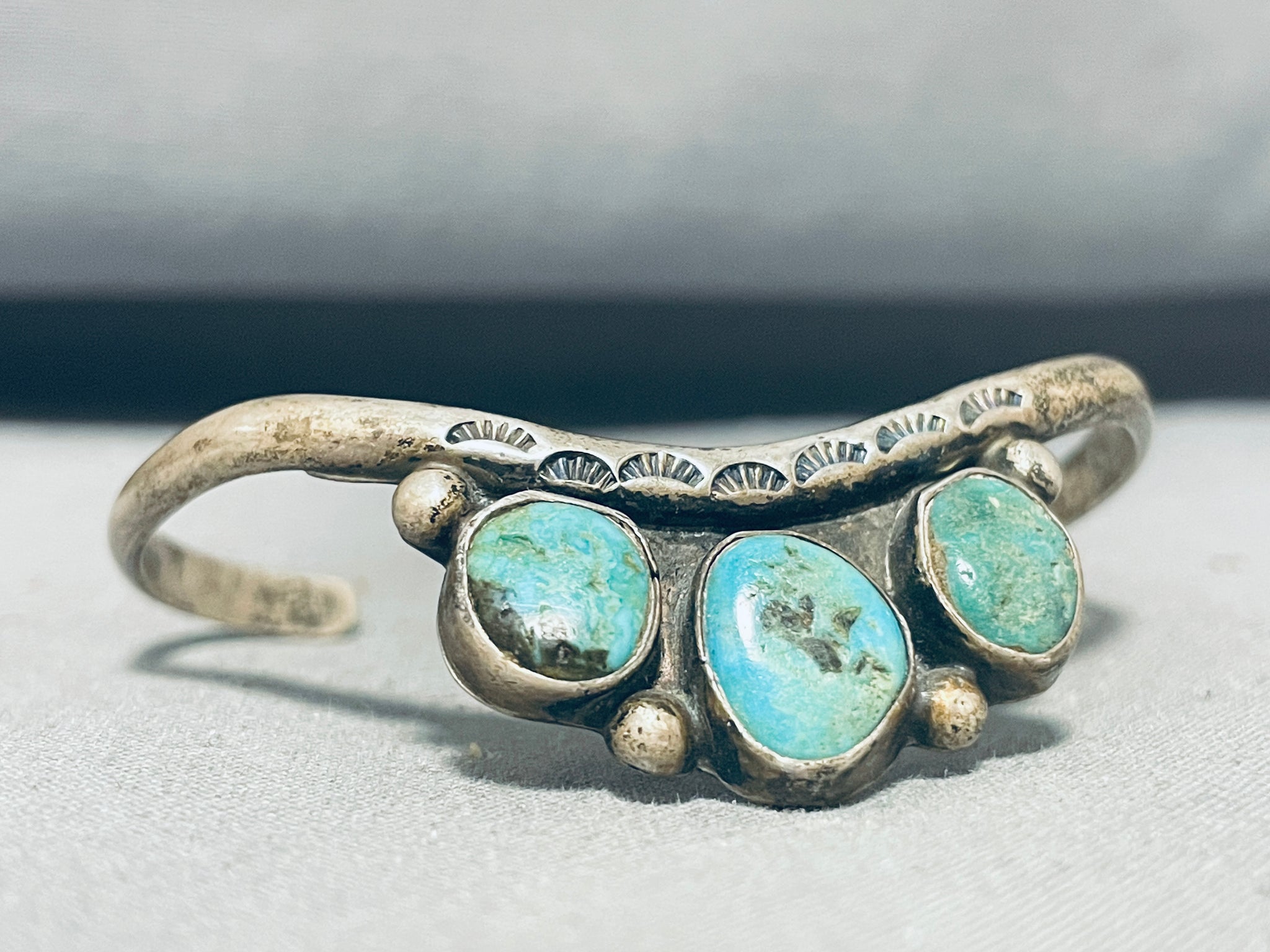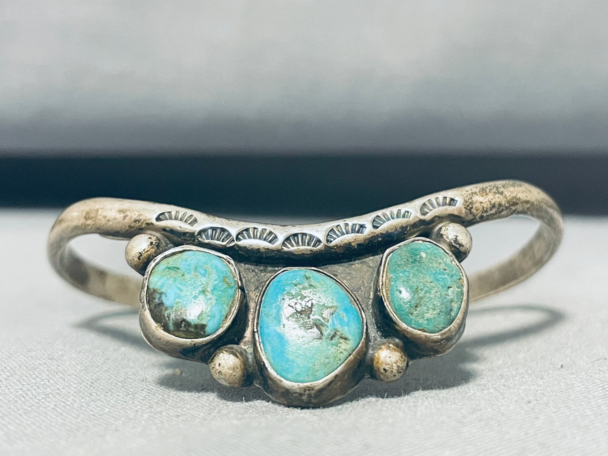 Beautiful Vintage Native American Navajo Cerrillos Blue Diamond Turquoise Silver Bracelet