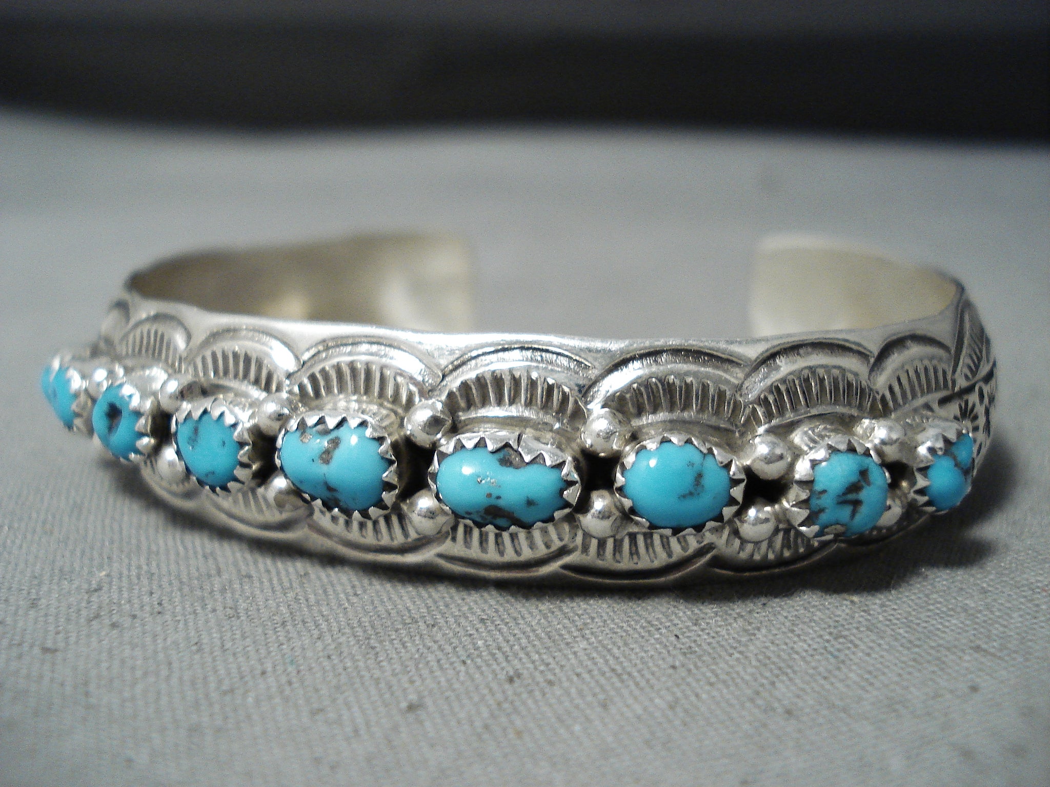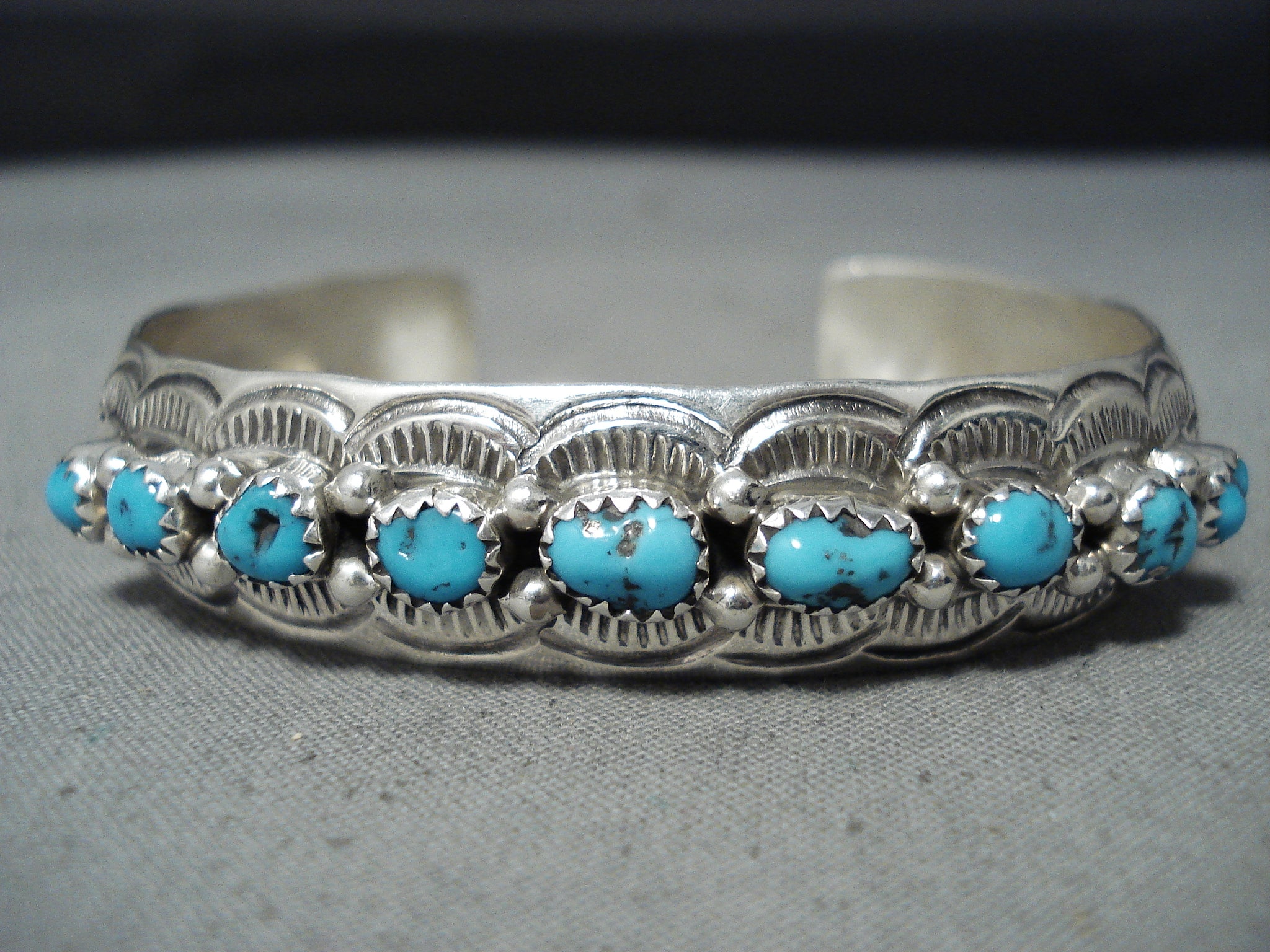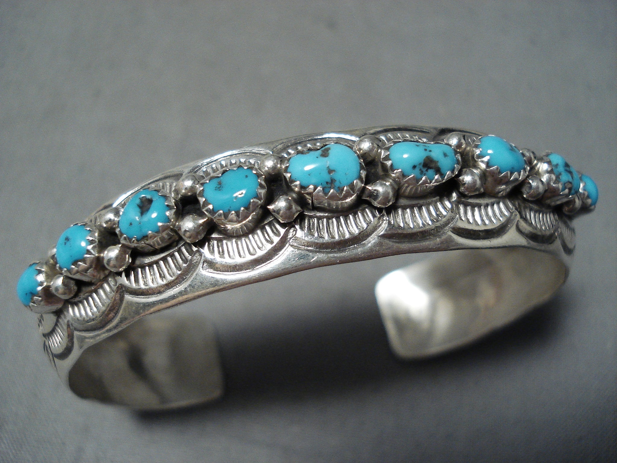 Beautiful Vintage Native American Navajo Concho Turquoise Sterling Silver Bracelet
